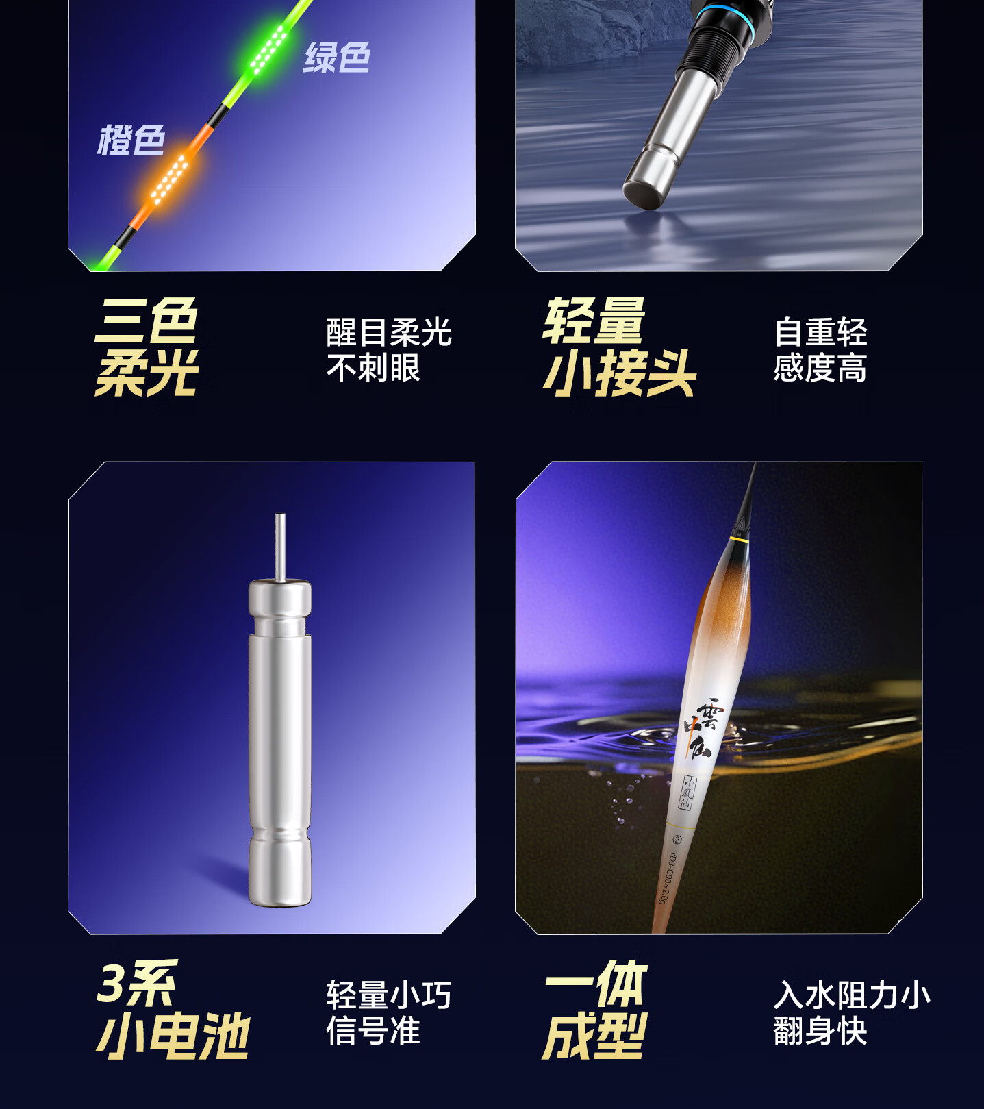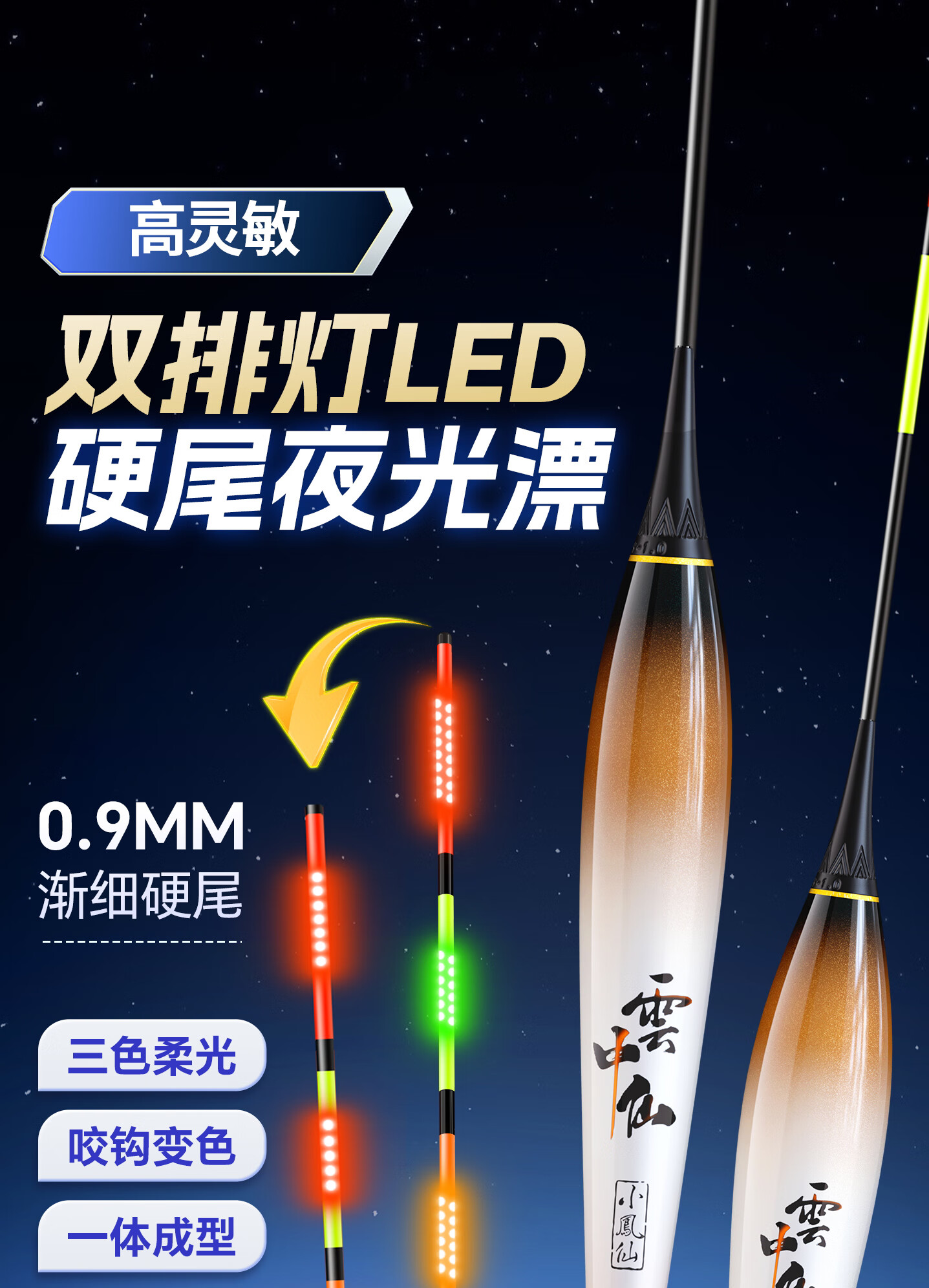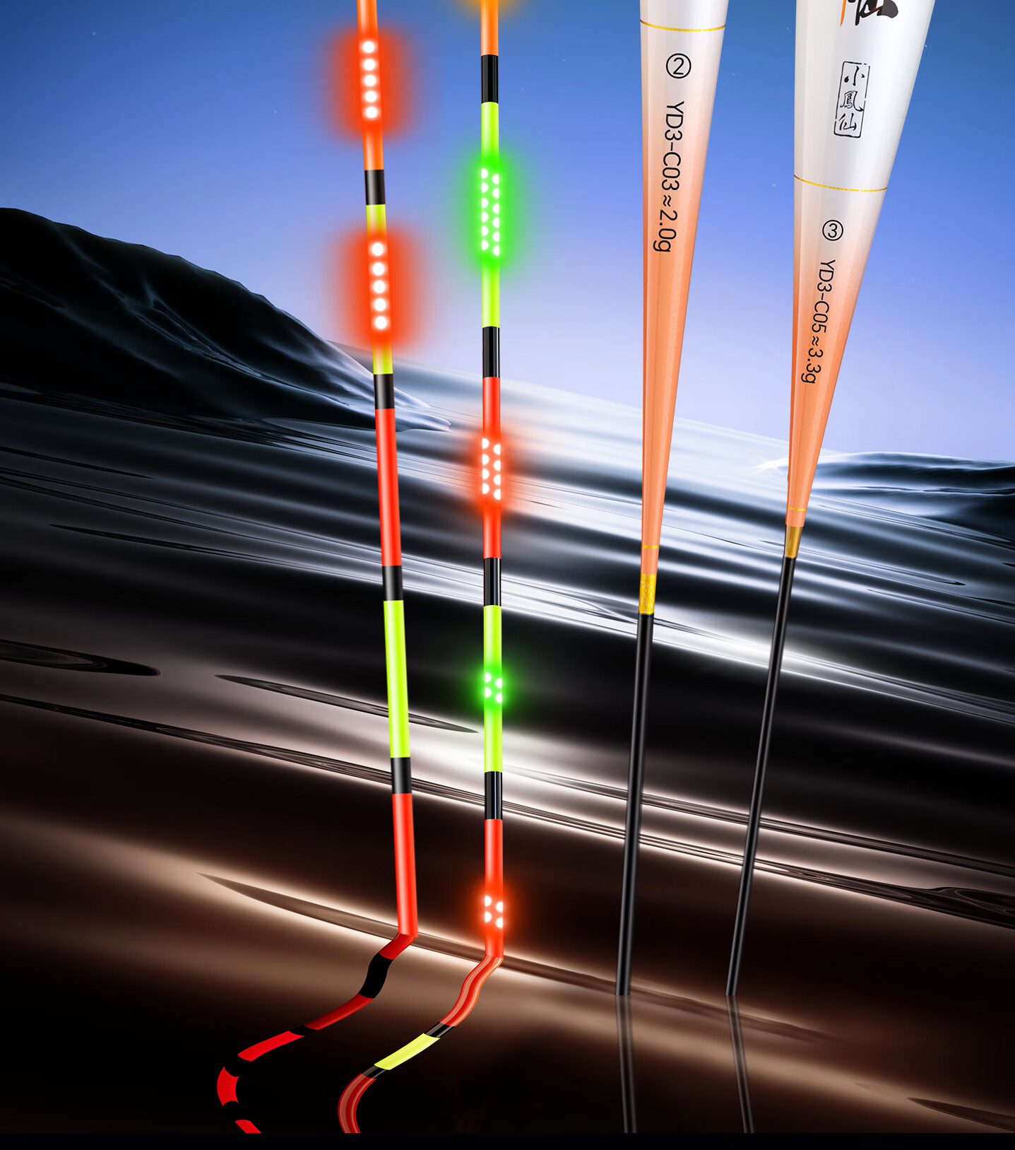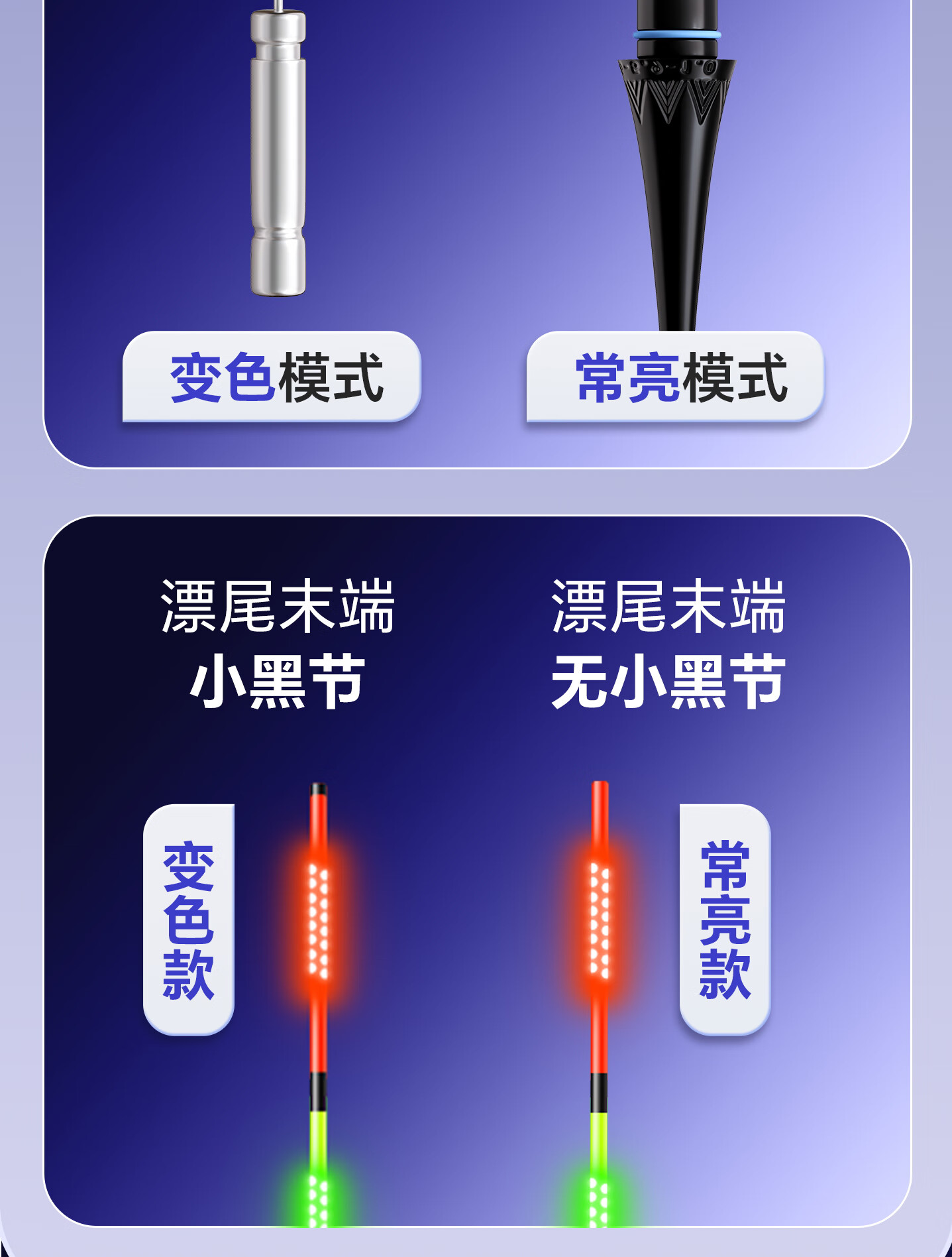 小凤仙双排led渐细硬尾夜光漂高亮醒目浮漂高灵敏四目咬钩变色野钓鱼漂 C05-3 鲫鲤草编综合 吃铅3.3g 变色 渐细硬尾单支