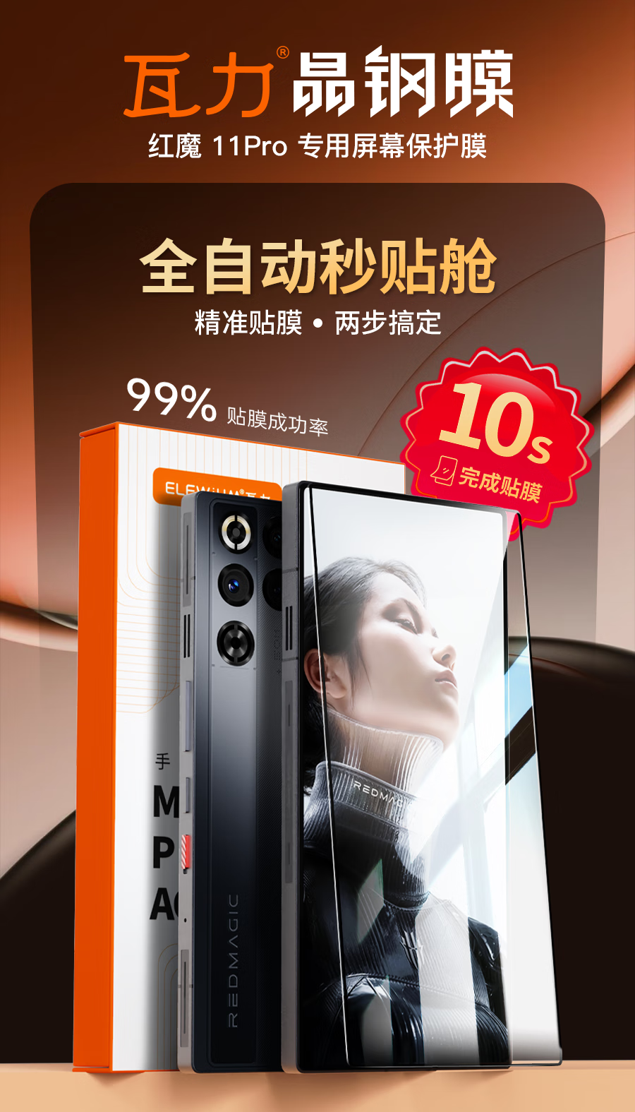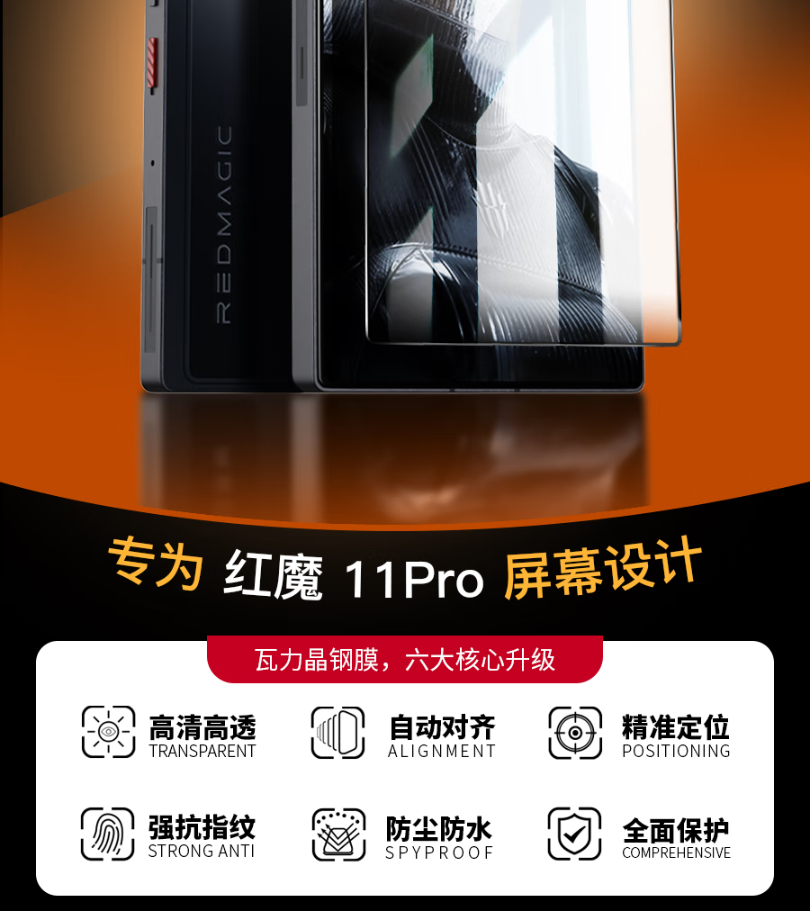 瓦力【电竞钢化膜】适用努比亚红魔11pro钢化膜高清全胶11pro+手机贴膜防摔刮抗指纹保护-带秒贴盒