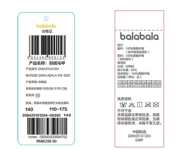 巴拉巴拉童装儿童马甲男童女童羽绒服外套2025新冬装上衣保暖208425101204