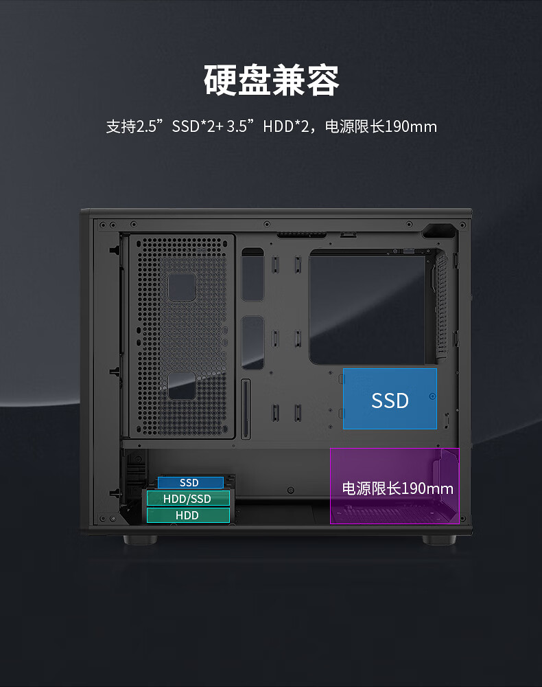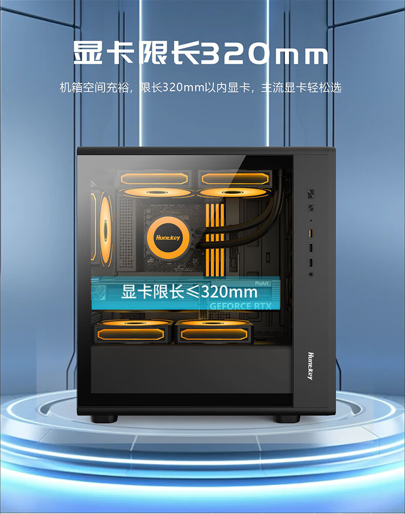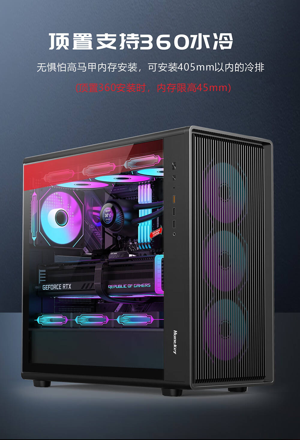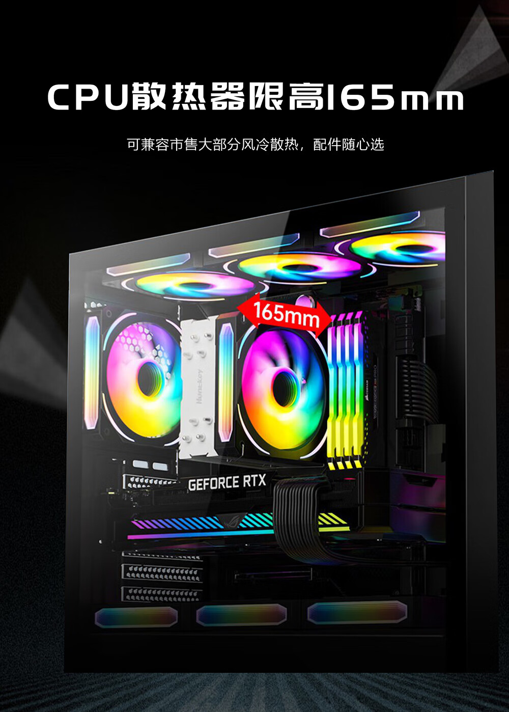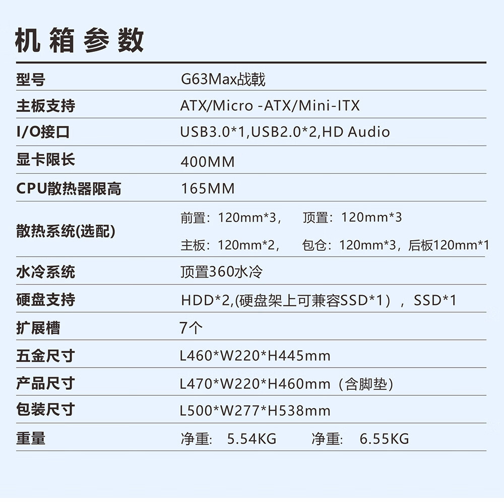 航嘉G63战戟 侧透玻璃机箱 M-ATX主板/长显卡/360水冷 G63mini台式机电脑主机机箱/卡扣式玻璃 G63mini黑色(显卡限长32厘米/240水冷)