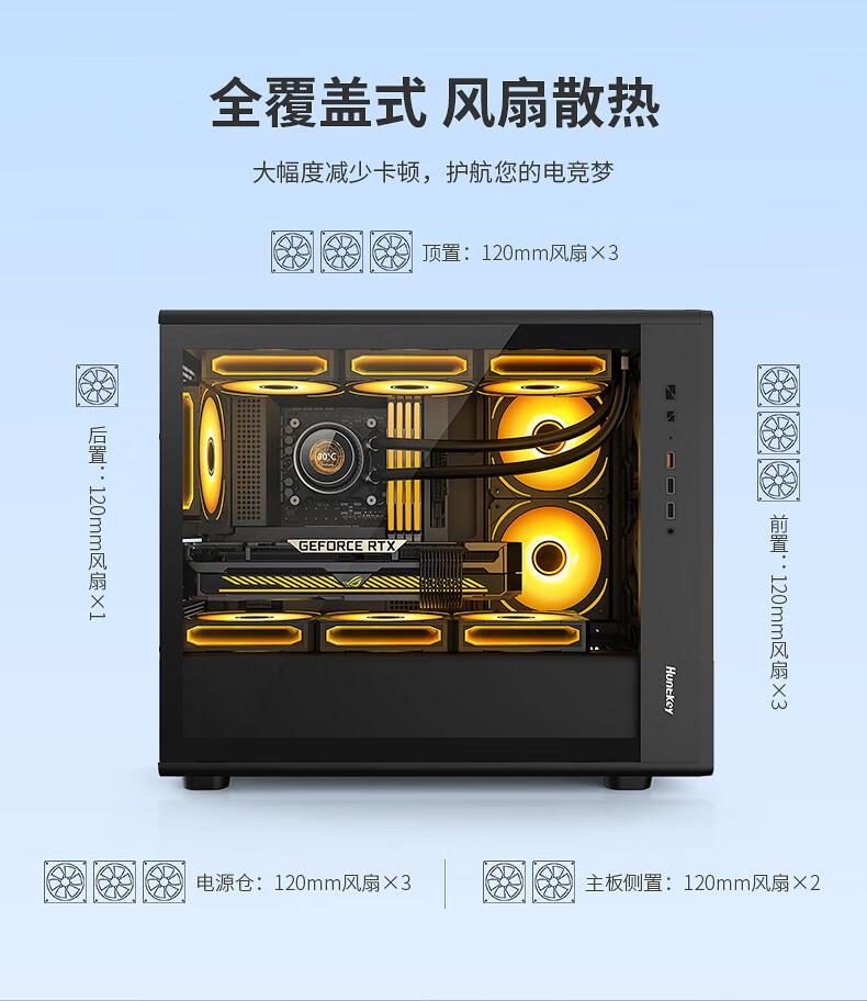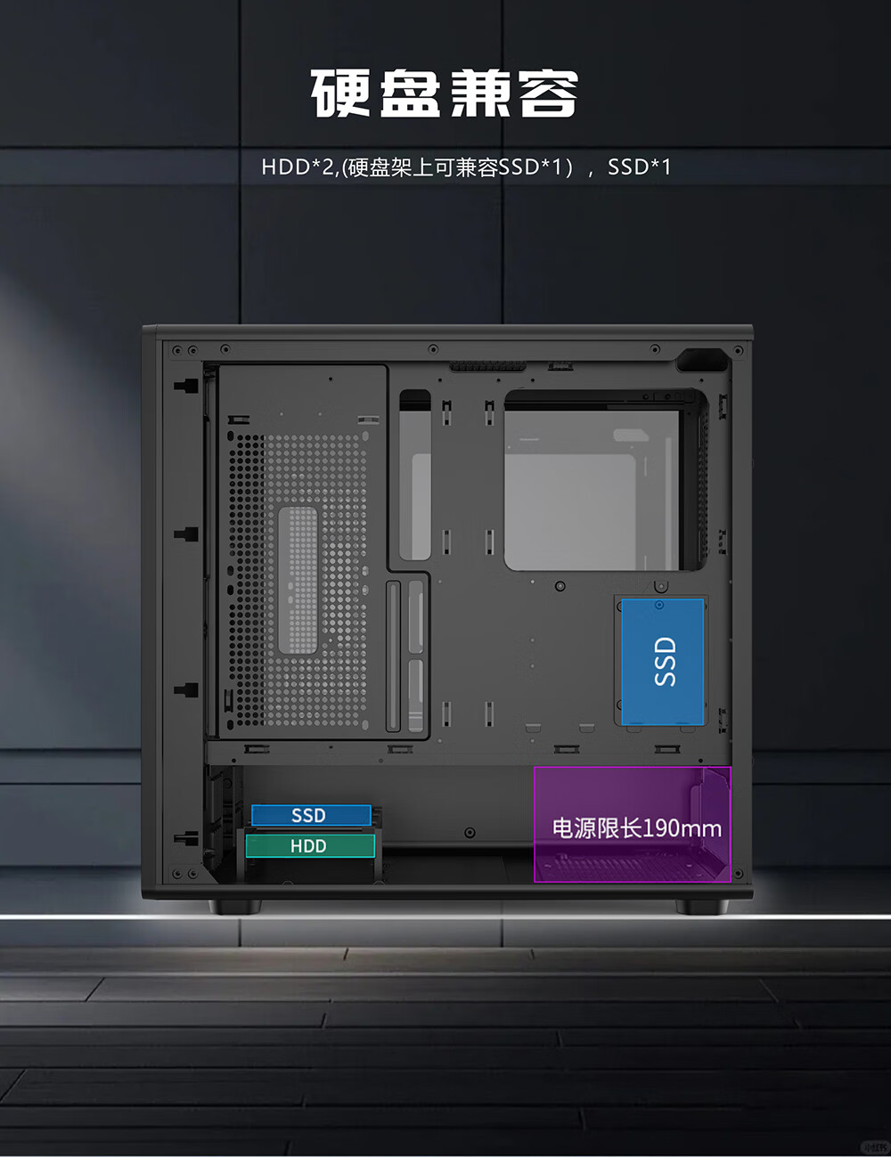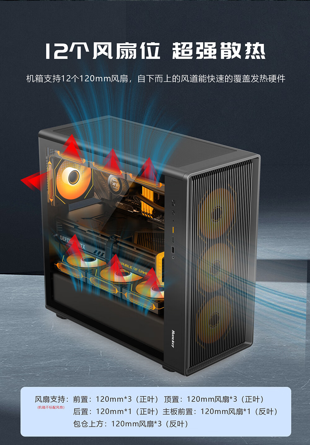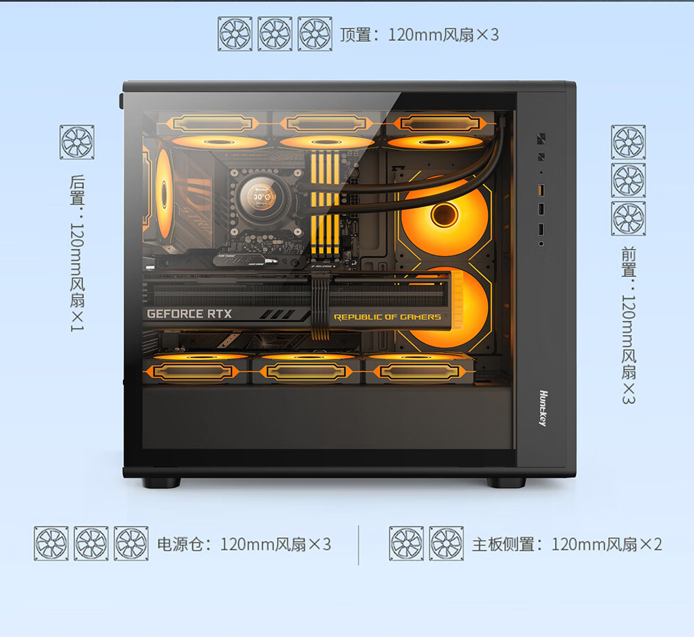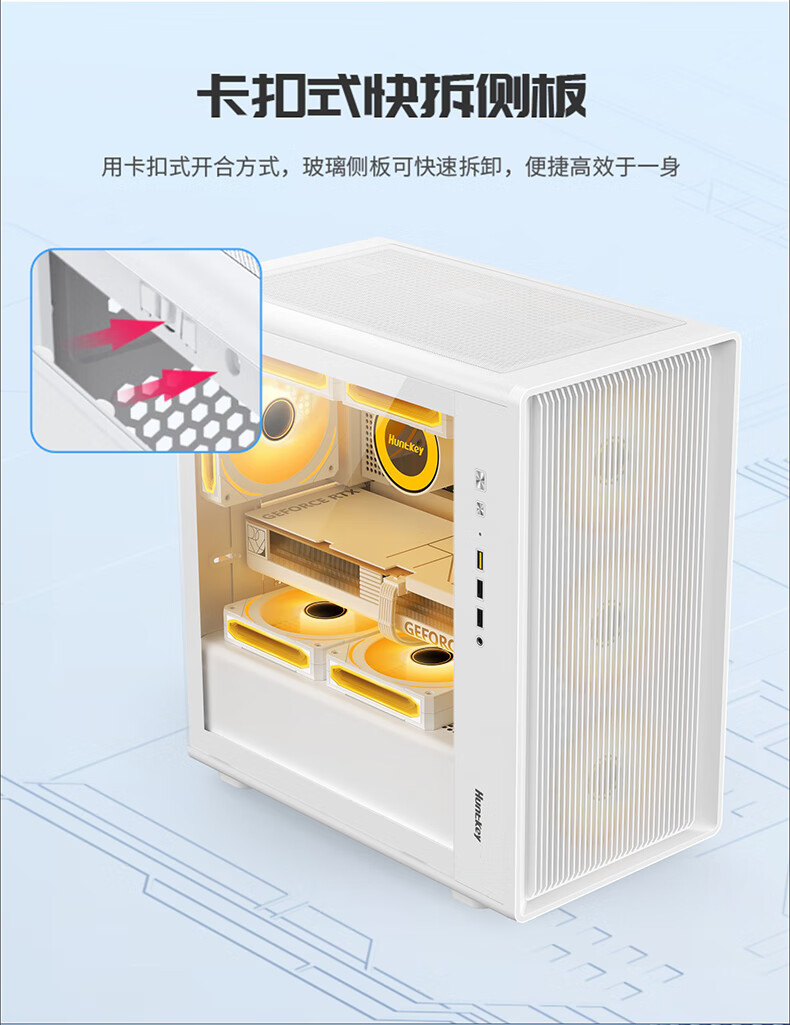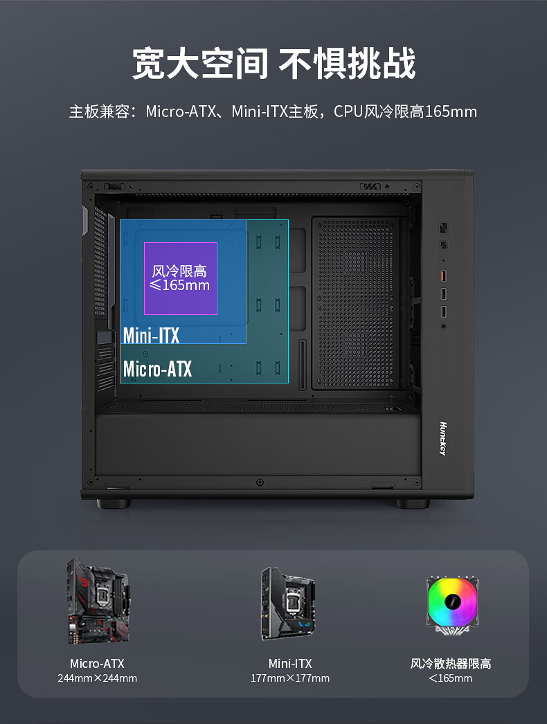 航嘉G63战戟 侧透玻璃机箱 M-ATX主板/长显卡/360水冷 G63mini台式机电脑主机机箱/卡扣式玻璃 G63mini黑色(显卡限长32厘米/240水冷)