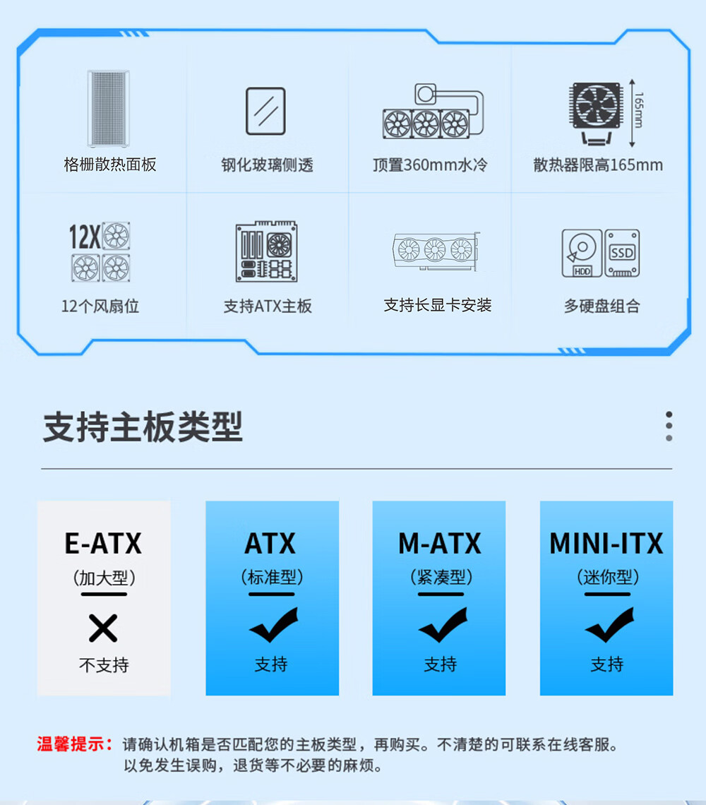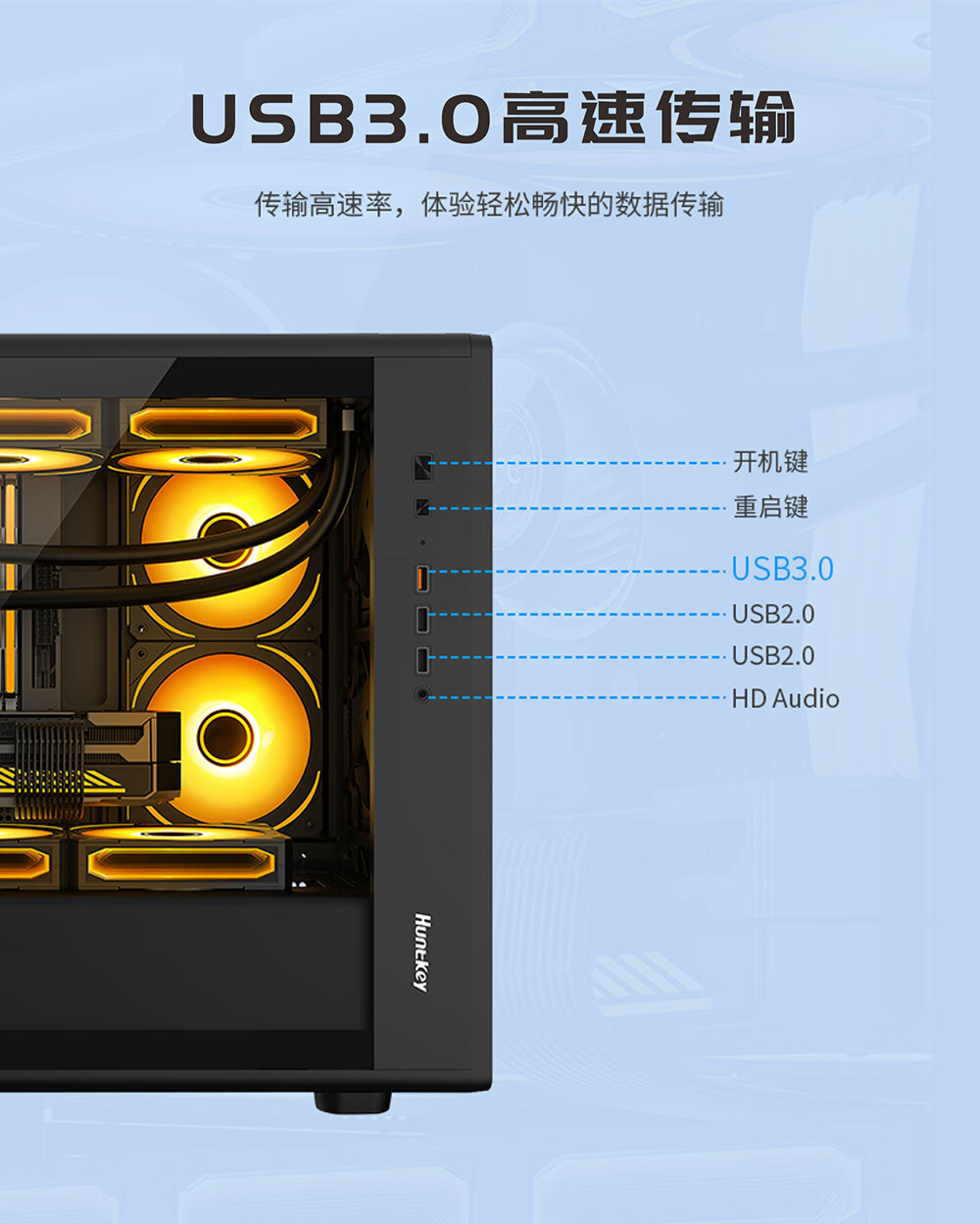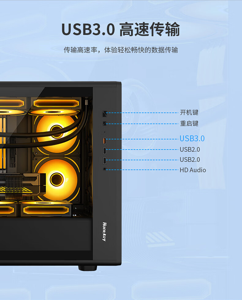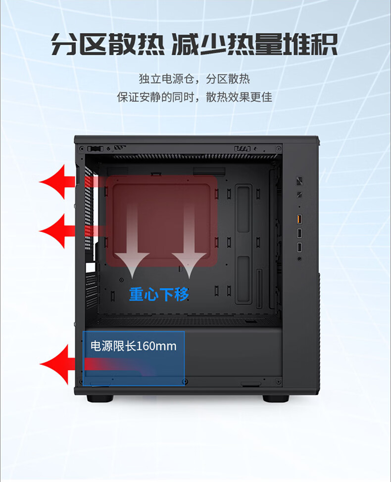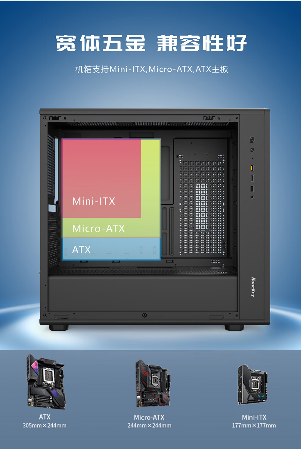 航嘉G63战戟 侧透玻璃机箱 M-ATX主板/长显卡/360水冷 G63mini台式机电脑主机机箱/卡扣式玻璃 G63mini黑色(显卡限长32厘米/240水冷)