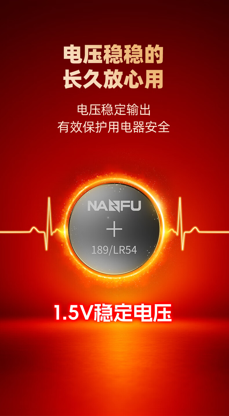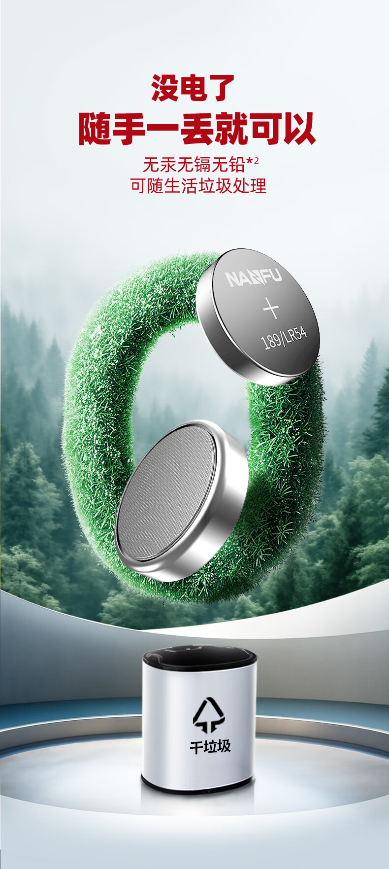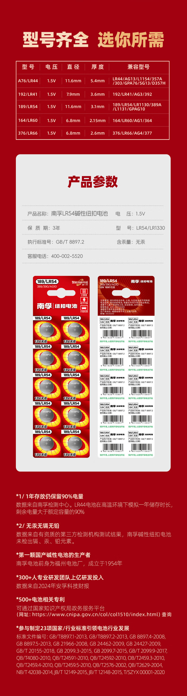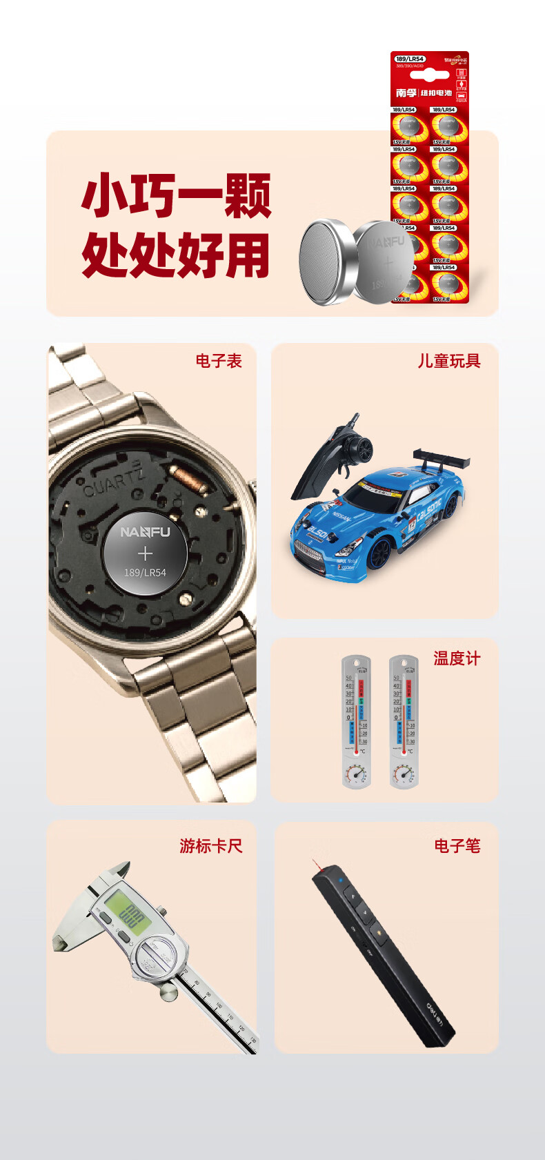南孚LR54/189/AG10/LR1130/389/390纽扣电池10粒装 适用于手表电池计算器电池电子玩具电池等