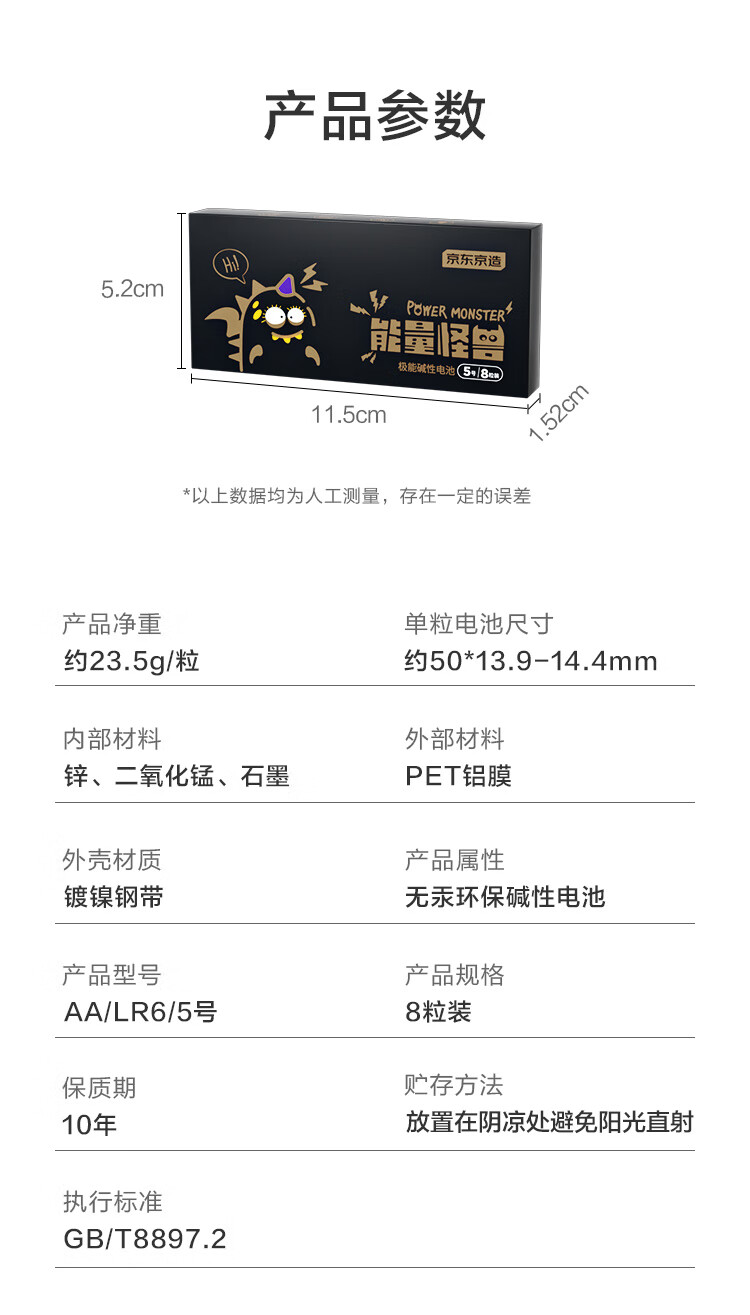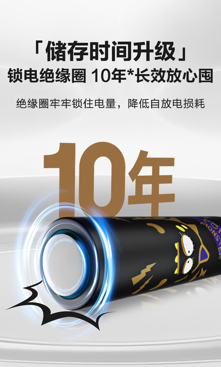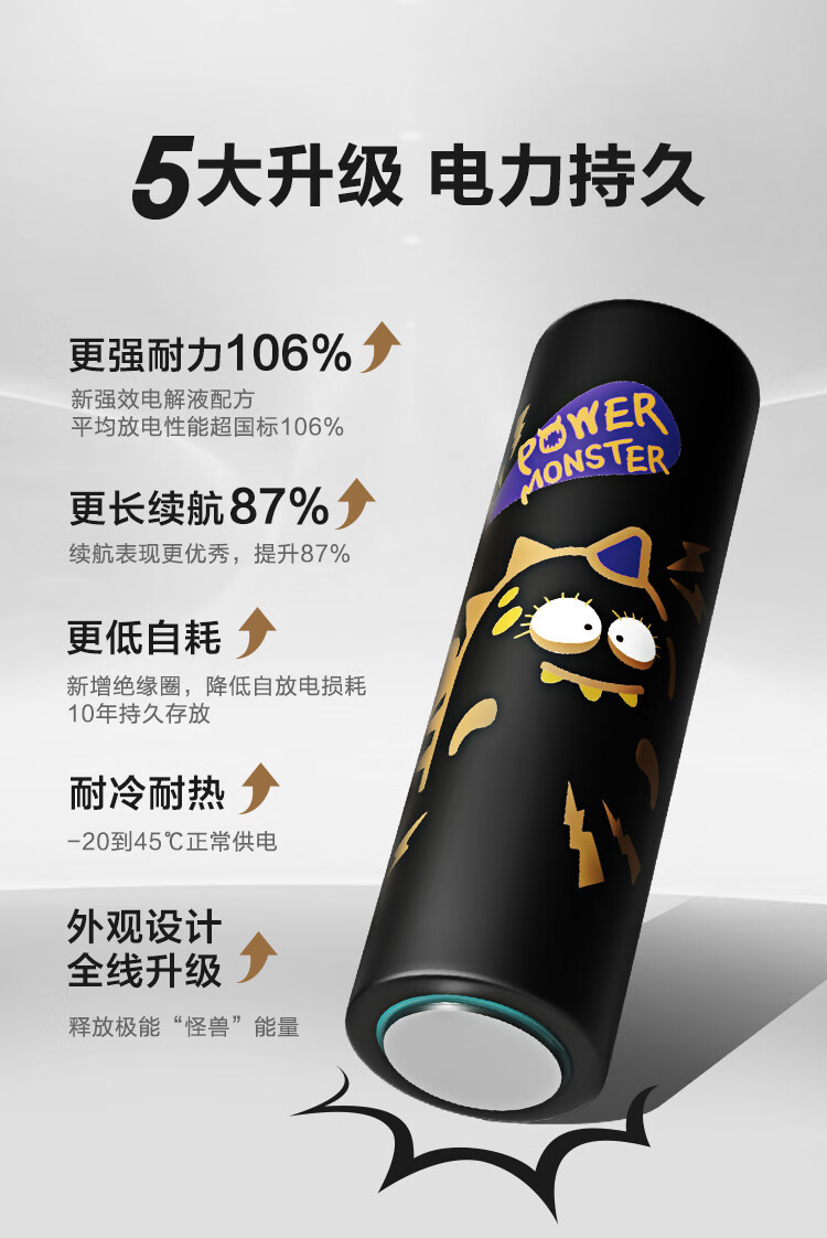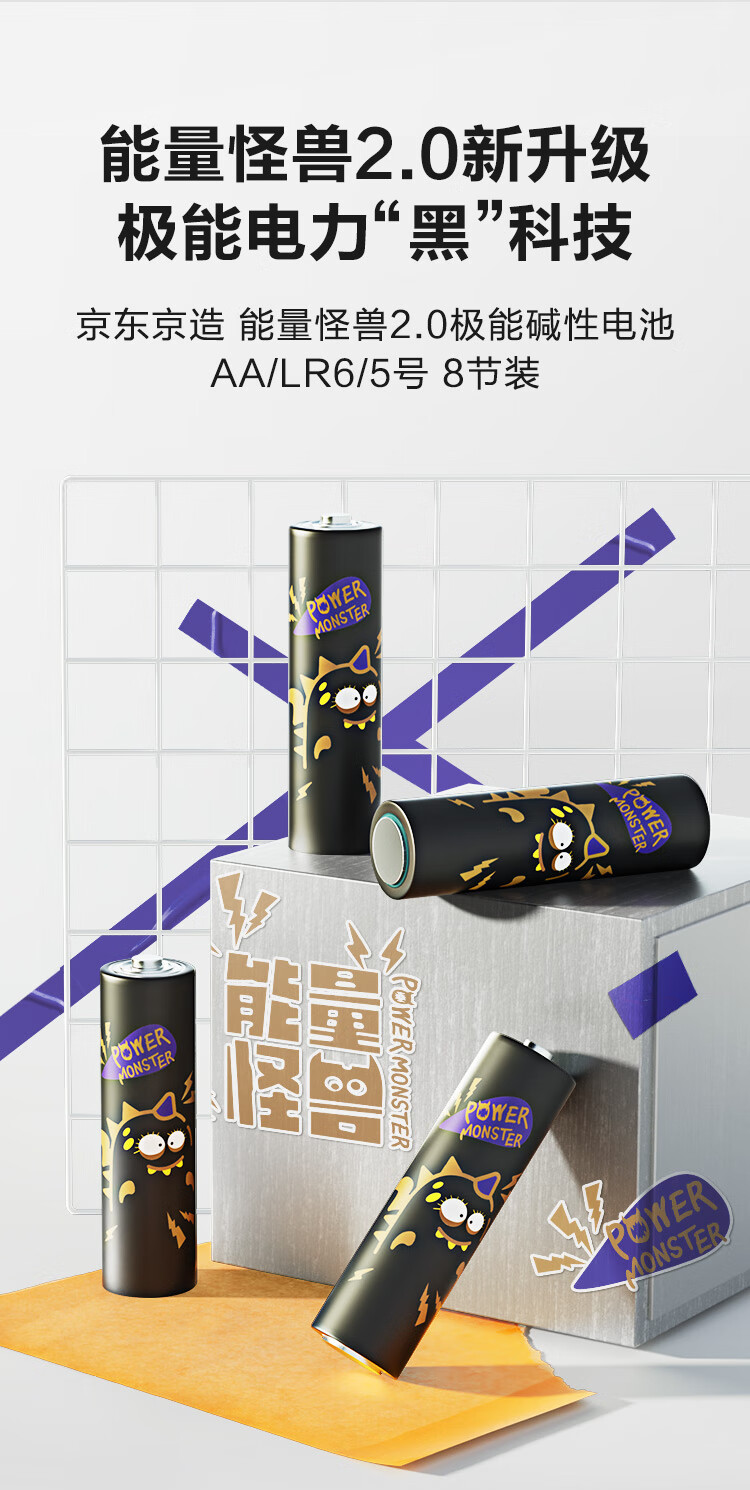 京东京造能量怪兽 极能碱性电池5号 无汞环保 玩具/血压仪/血糖仪/智能门锁/电子秤/鼠标【5号8节】