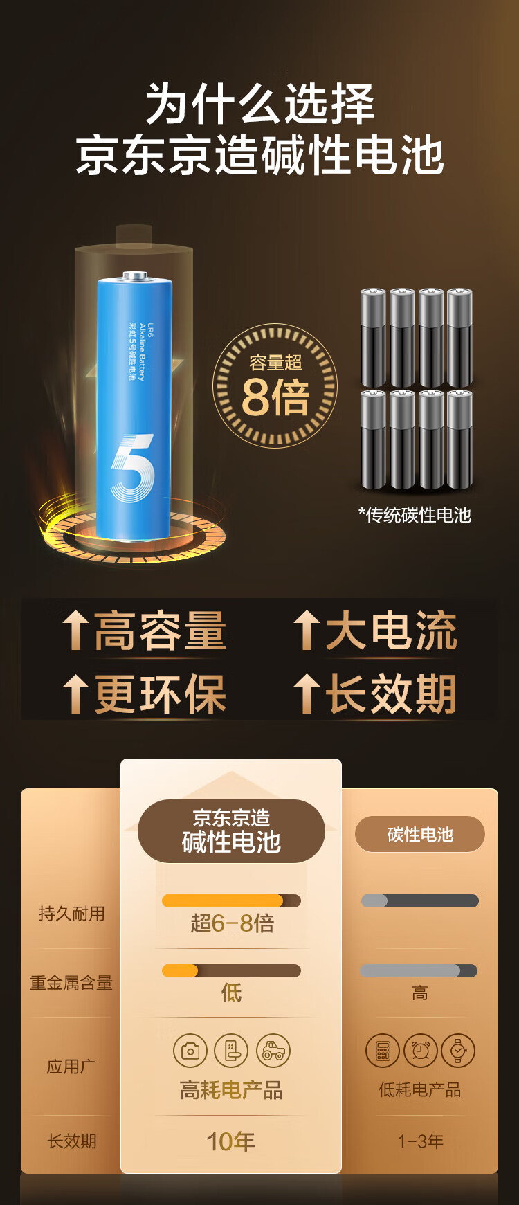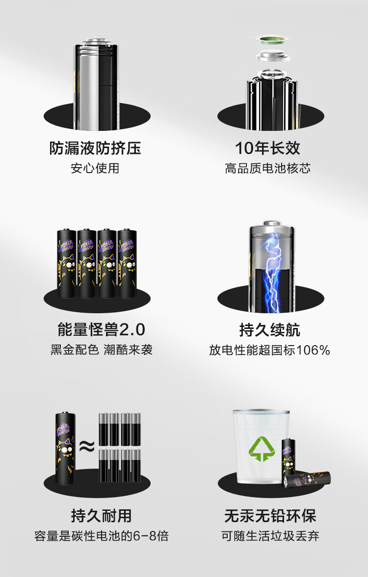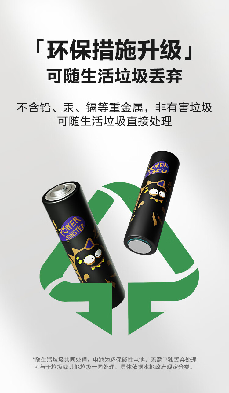 京东京造能量怪兽 极能碱性电池5号 无汞环保 玩具/血压仪/血糖仪/智能门锁/电子秤/鼠标【5号8节】