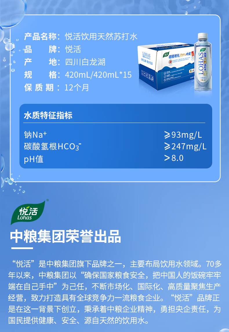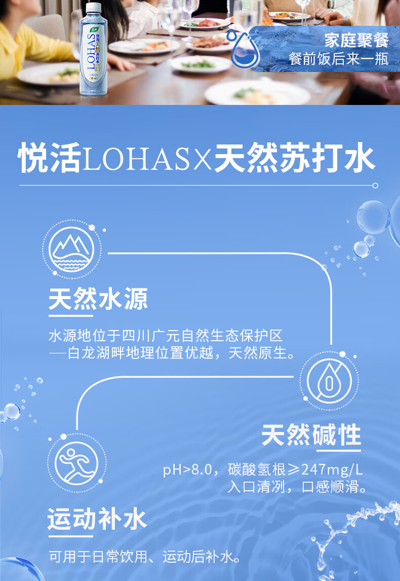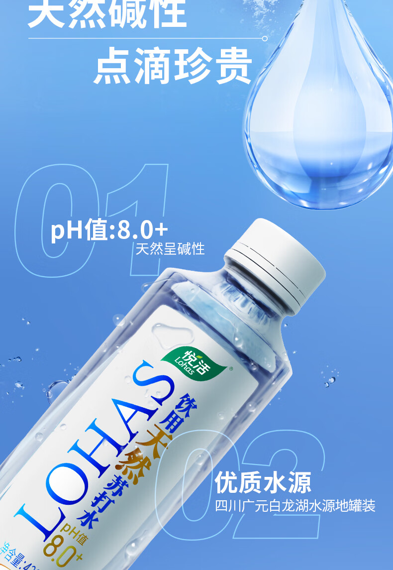 悦活天然苏打水420ML*15瓶 京东自营高端弱碱性苏打水会议水热门商品
