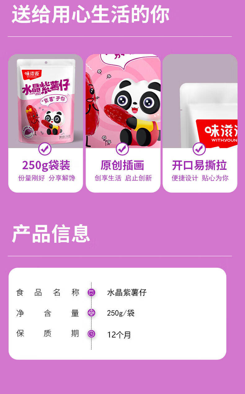 味滋源水晶紫薯仔 浓浓薯香 红薯干地瓜干 休闲零食特产小吃 水晶紫薯仔 250g*1袋 2袋装
