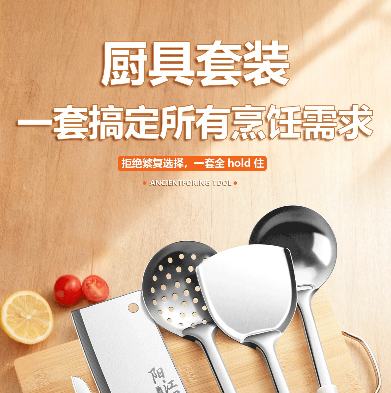 十八子作 刀具套装 阳江不锈钢厨房家用菜刀套装厨刀组合切菜切肉切片刀斩骨刀三件套 纯盈生熟食分开切三件套+砧板+磨刀棒+四刀座