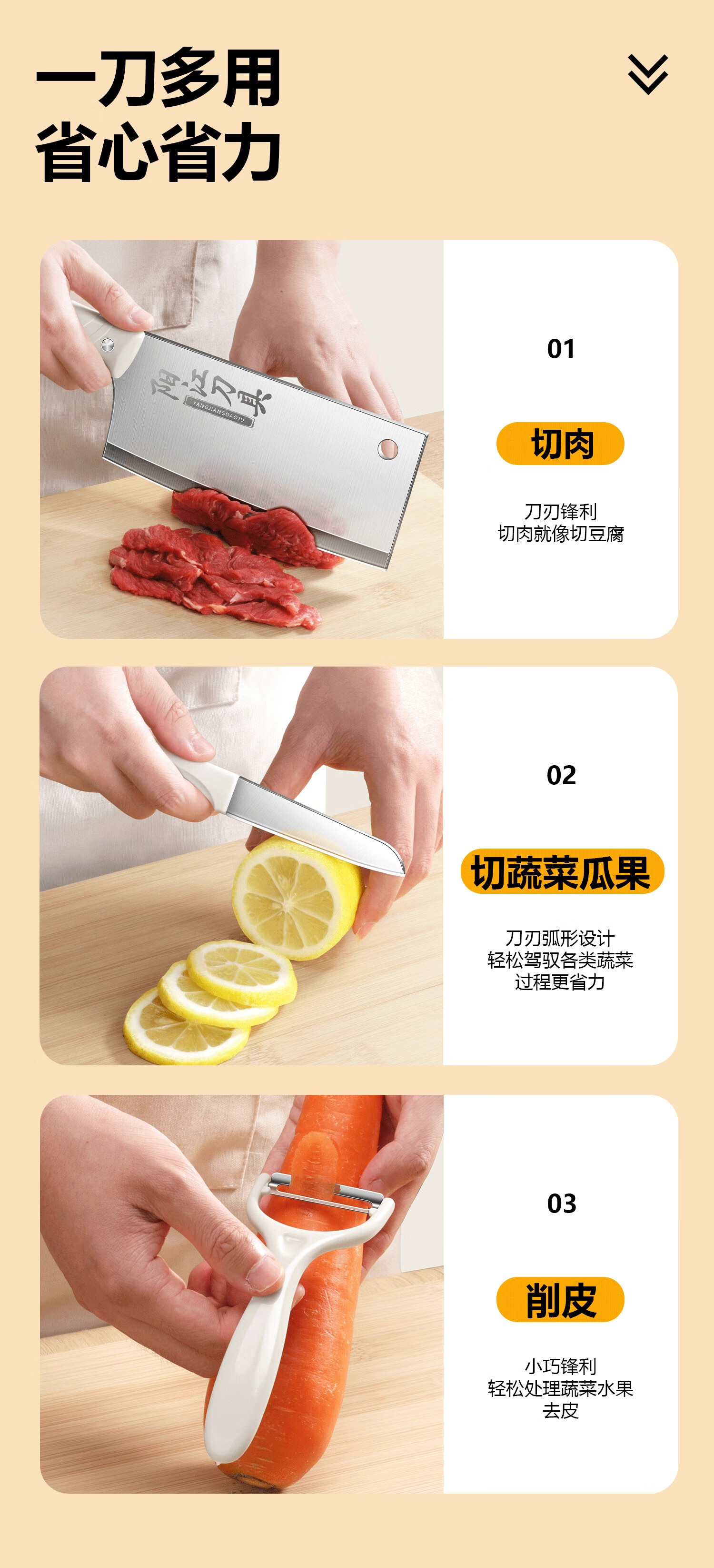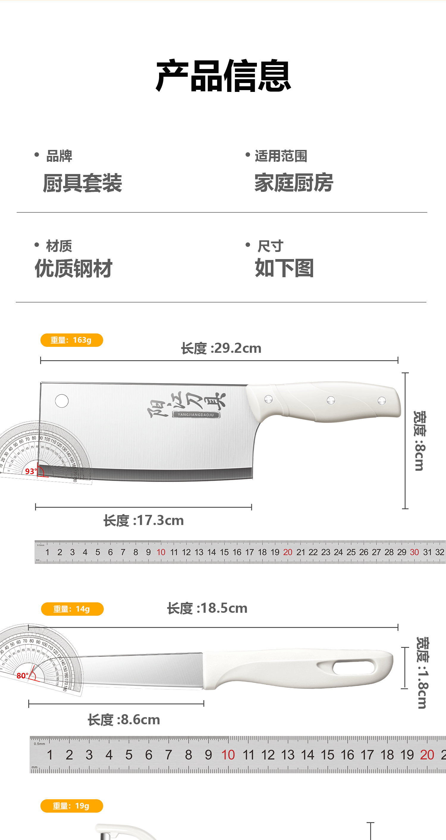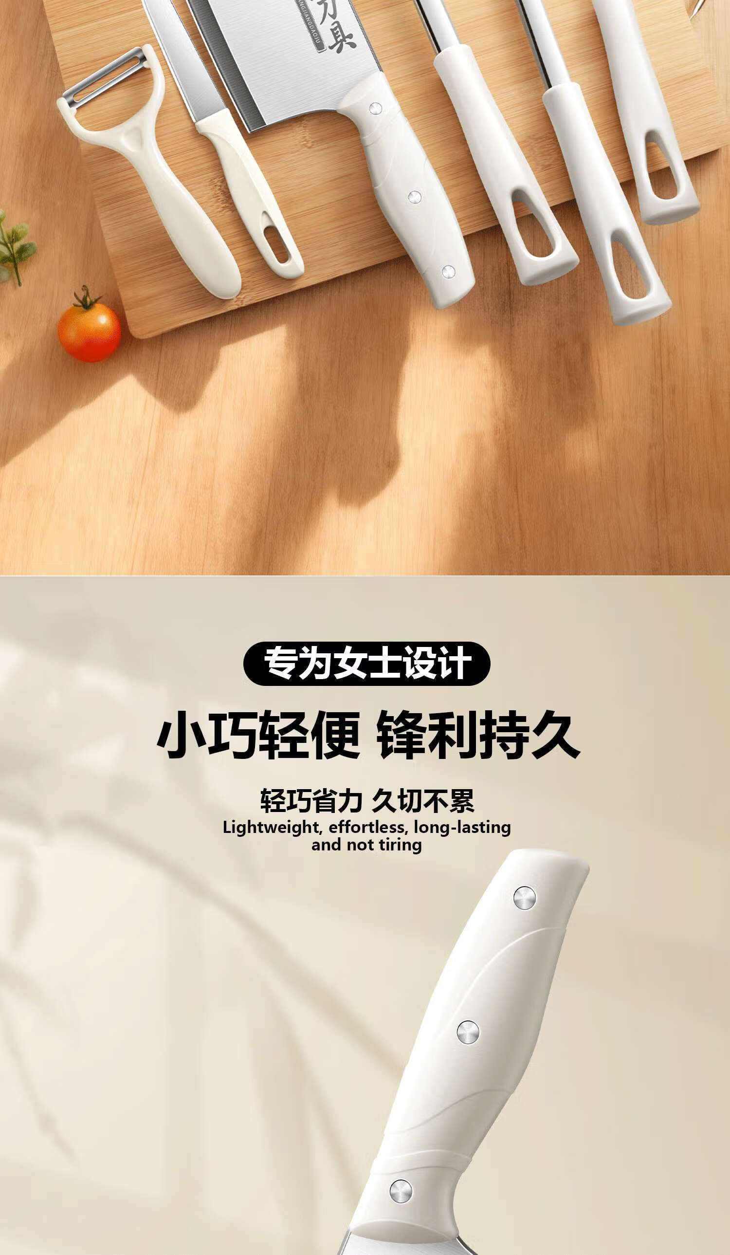 时尚新款厨房刀具套装菜刀水果刀削皮刀菜板组合装家用儿童辅食刀 日式小菜板+小白刀+日式白色水果