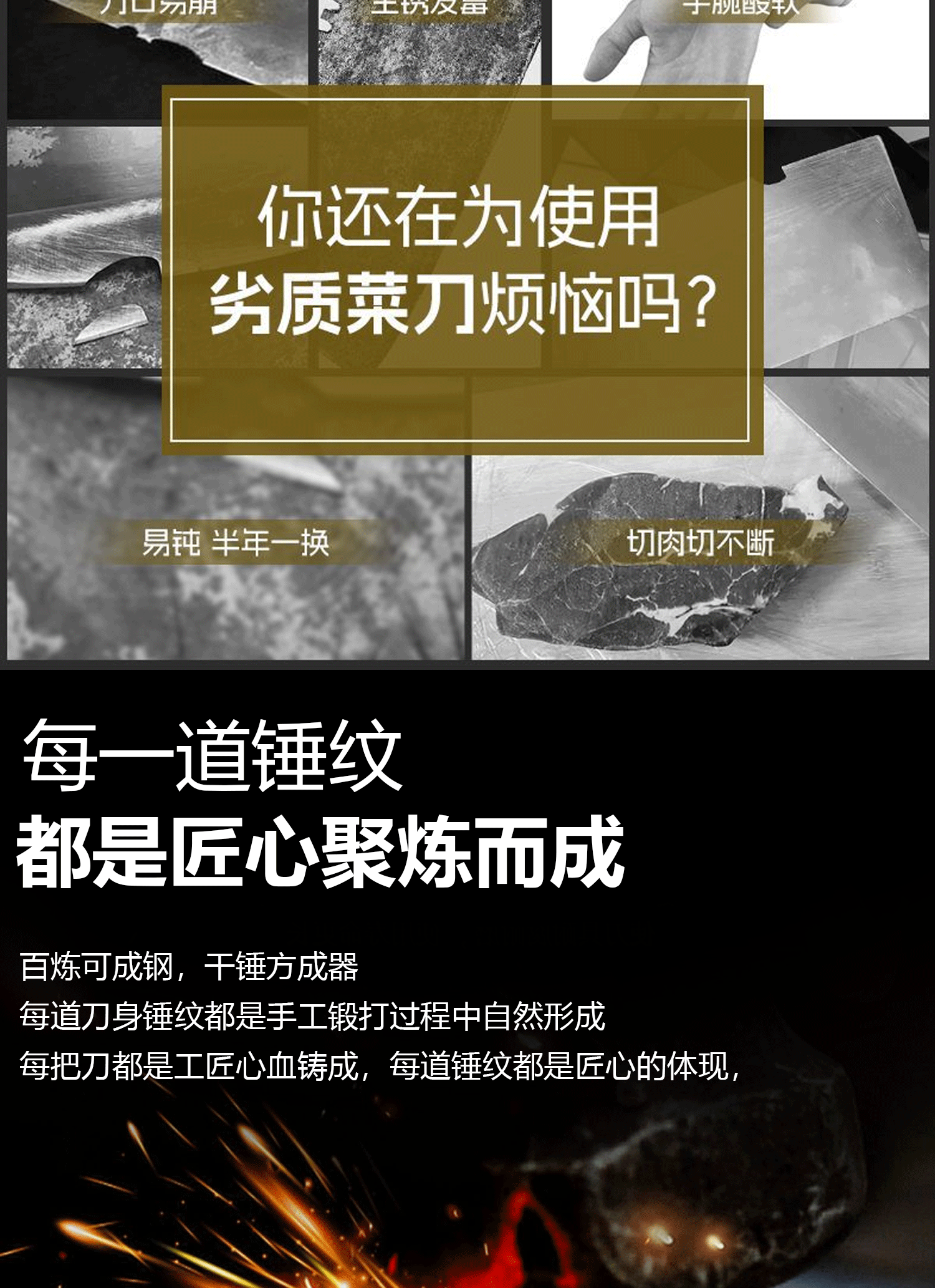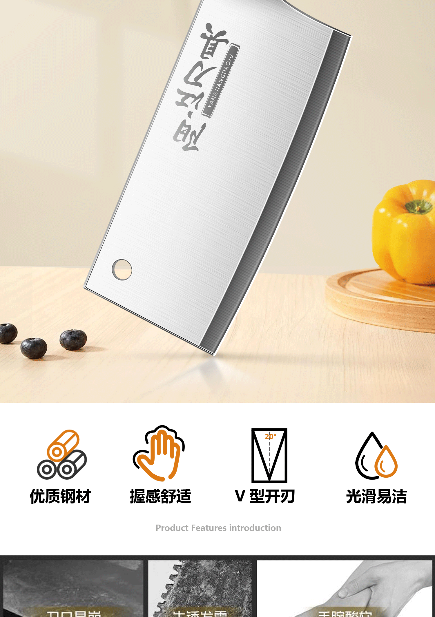 十八子作菜刀 新飞球厨师刀切肉刀酒店刀斩切刀两用刀手工锻打厨房刀具P01