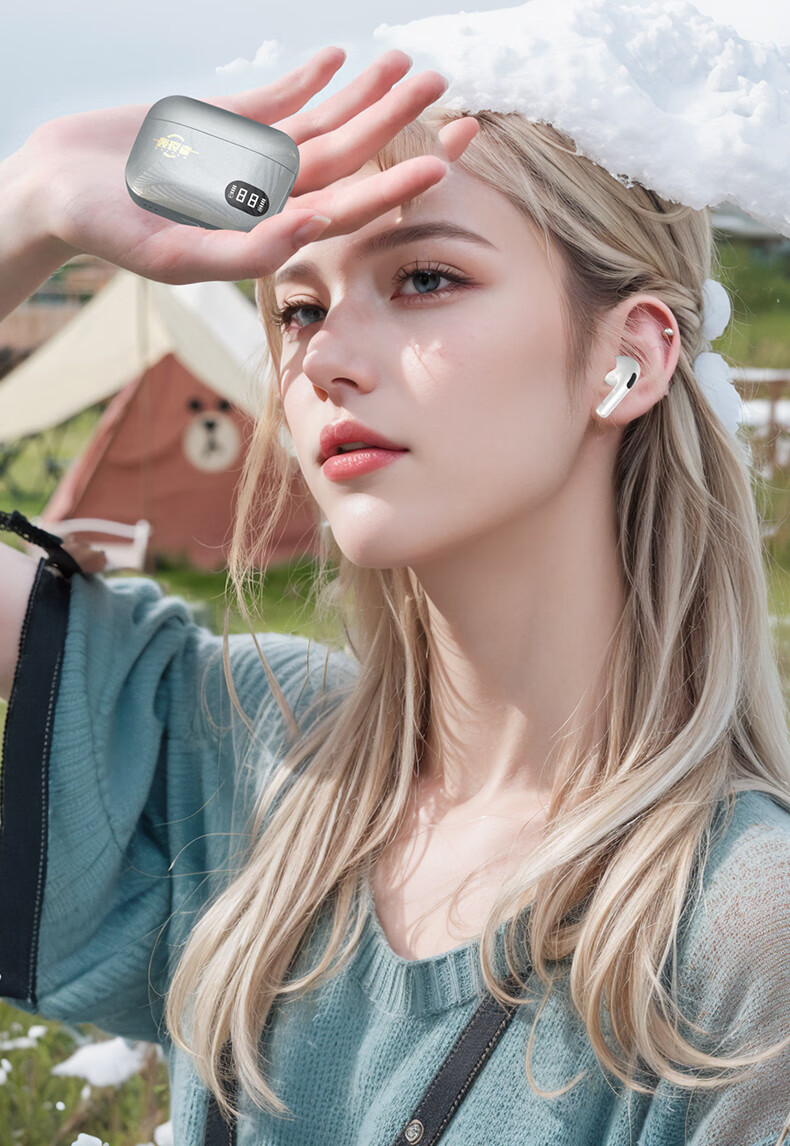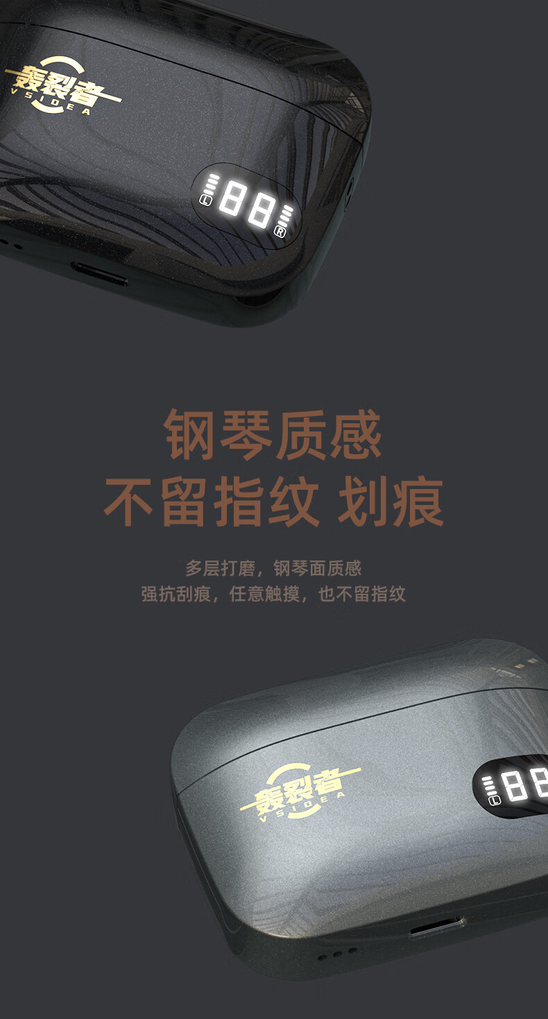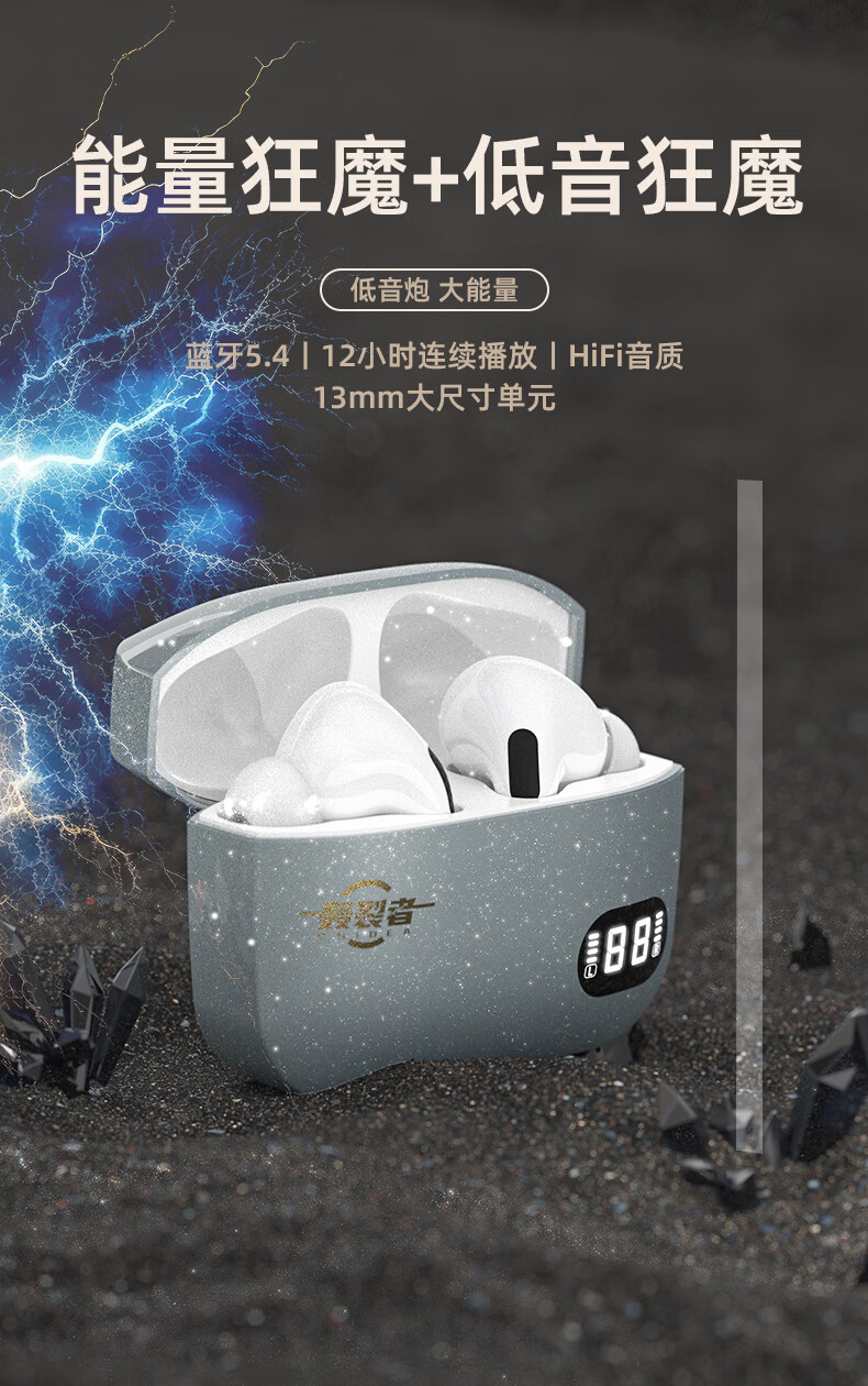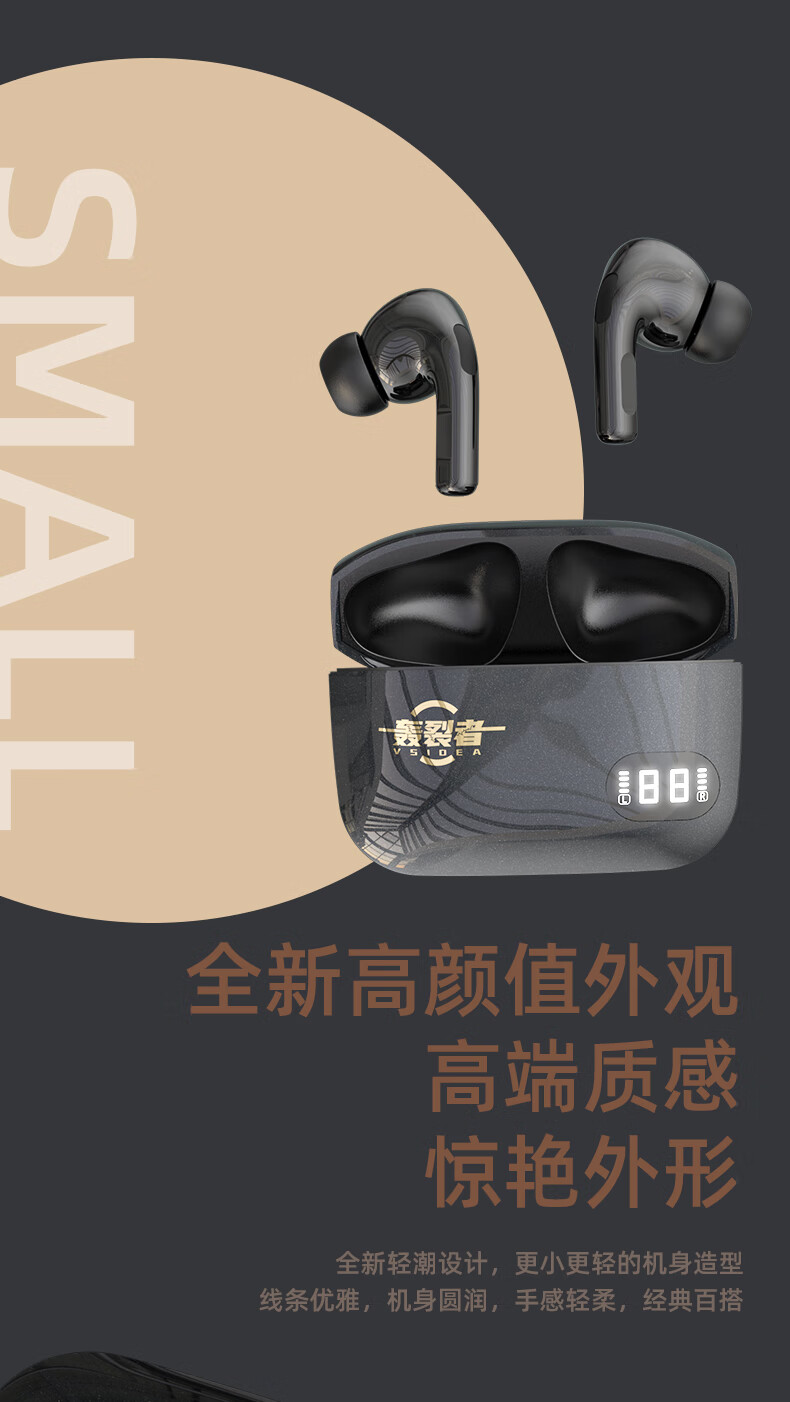 vsidea超重低音无线耳机全入耳蓝牙5.4超大电量单次播放12小时炫酷运动游戏降噪数字显示全手机通用 星空银 5.4不卡顿10小时播放