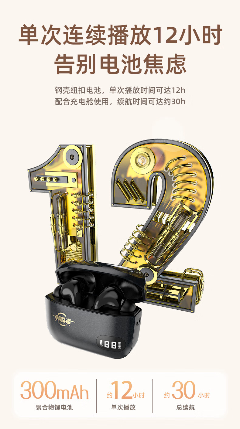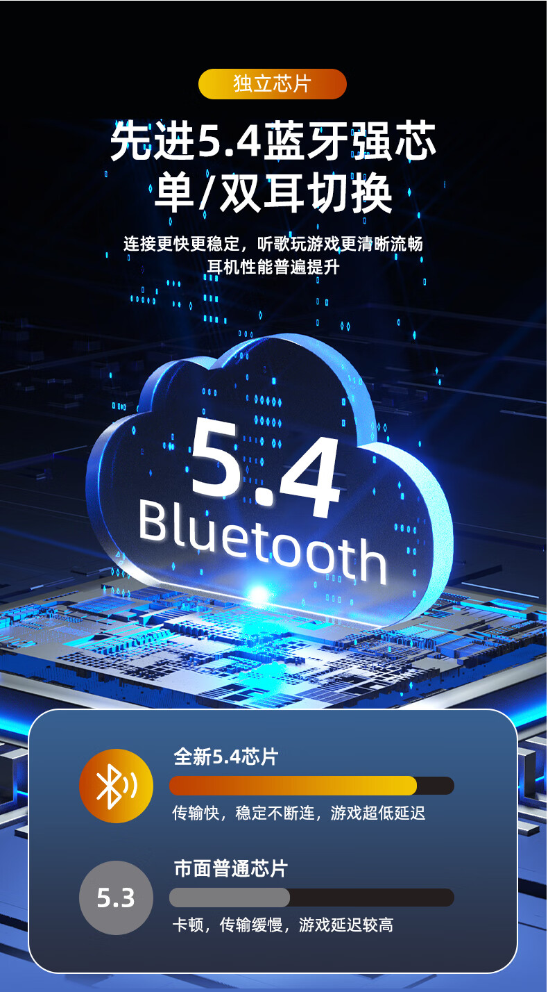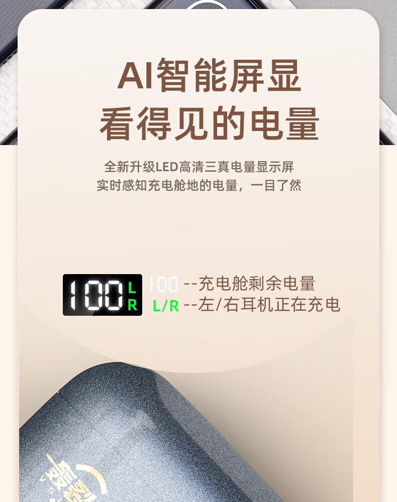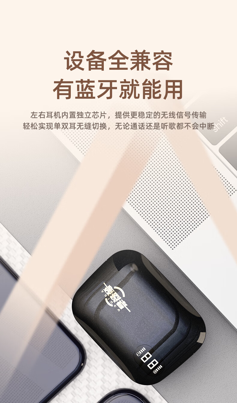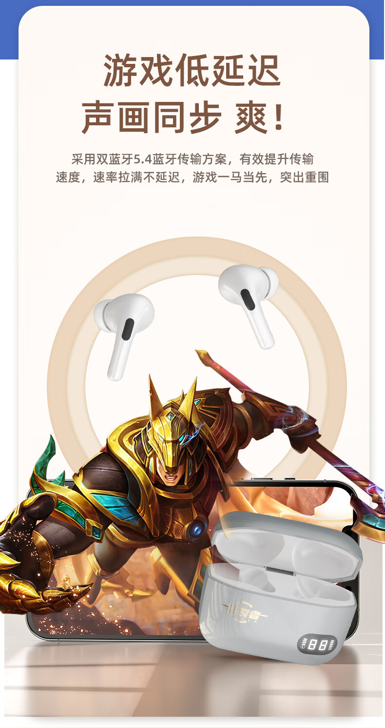 vsidea超重低音无线耳机全入耳蓝牙5.4超大电量单次播放12小时炫酷运动游戏降噪数字显示全手机通用 星空银 5.4不卡顿10小时播放