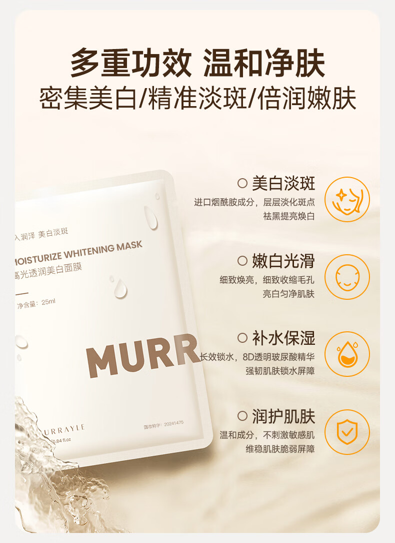 沫芮烟酰胺面膜玻尿酸美白精华 补水保湿提亮肤色护肤男女金榜第1名 美白面膜6盒/60片