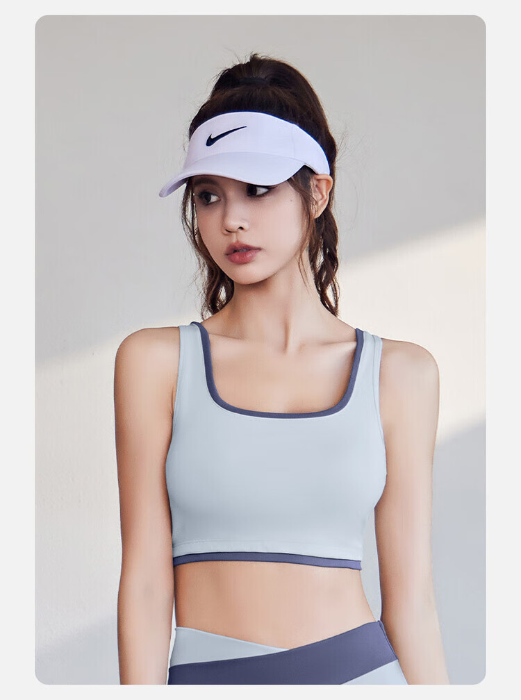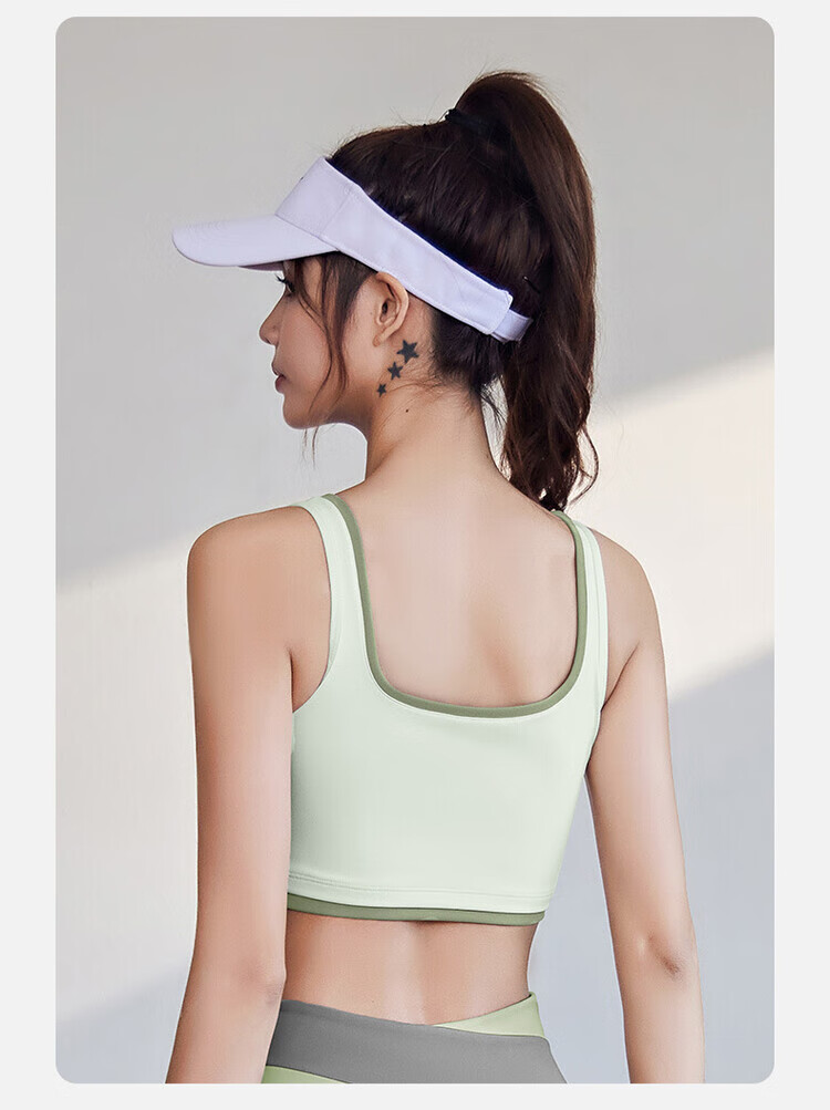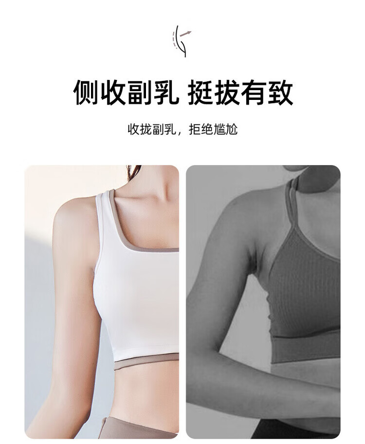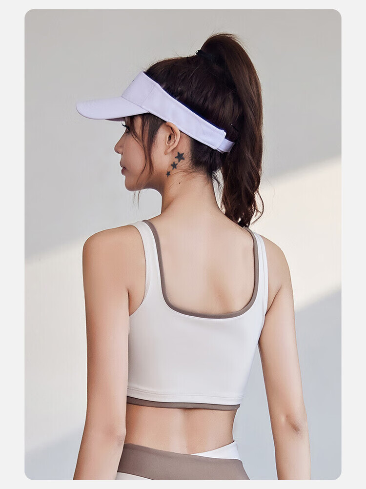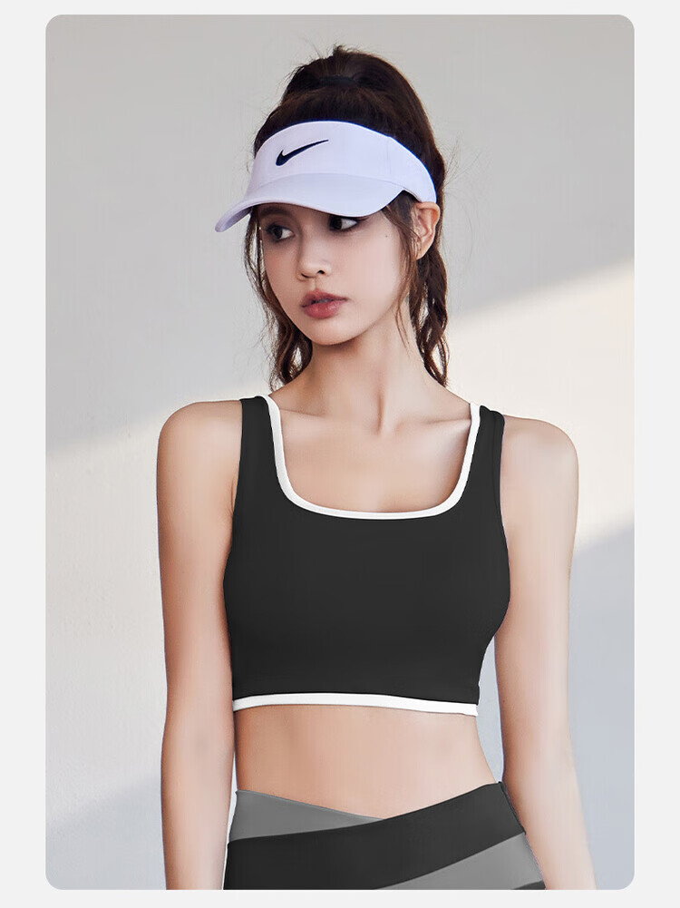 新款宽肩带包边运动内衣薄款一体式胸垫跑步瑜伽背心聚拢防震文胸 星耀黑+星耀黑 S