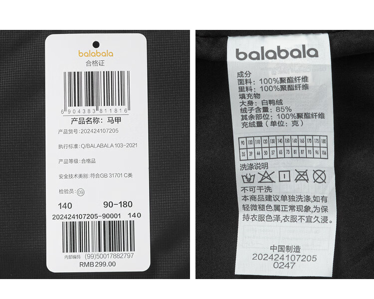 巴拉巴拉balaOne儿童羽绒服男童女童童装2025年冬季户外防护208425107233