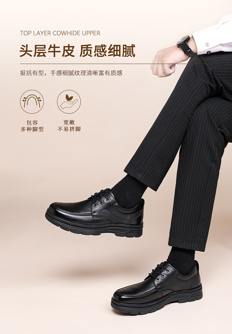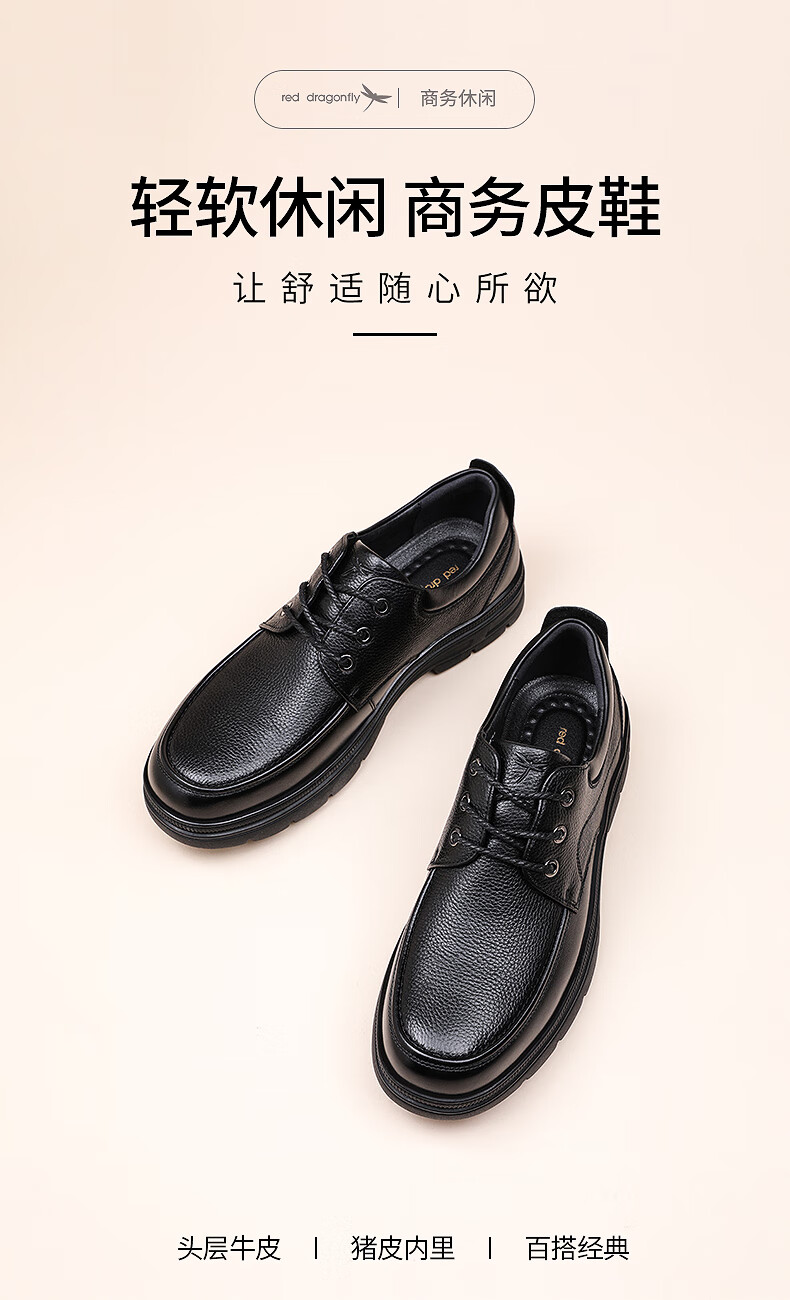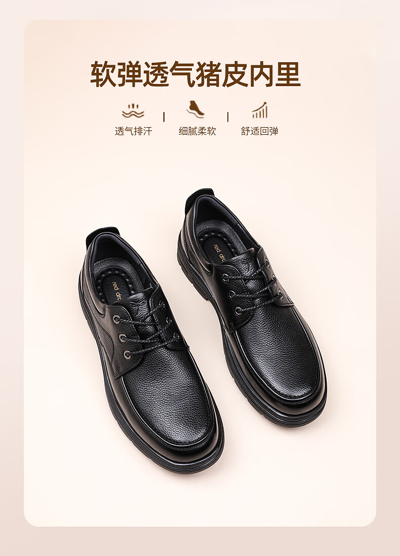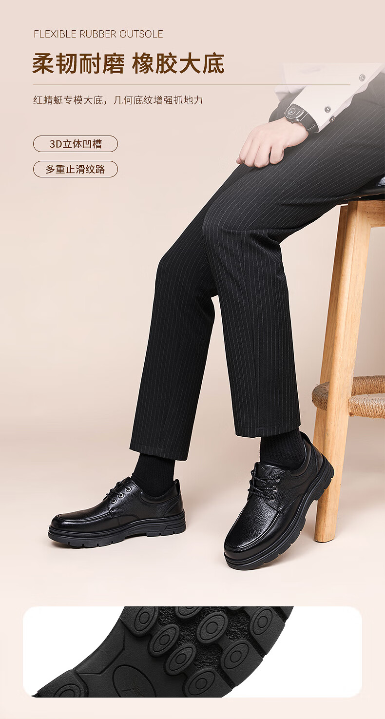 红蜻蜓牛皮男鞋系带皮鞋男爸爸鞋舒适厚底商务休闲鞋男WTA440741黑色42