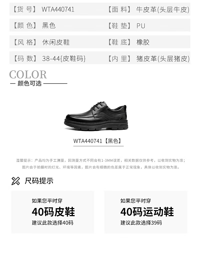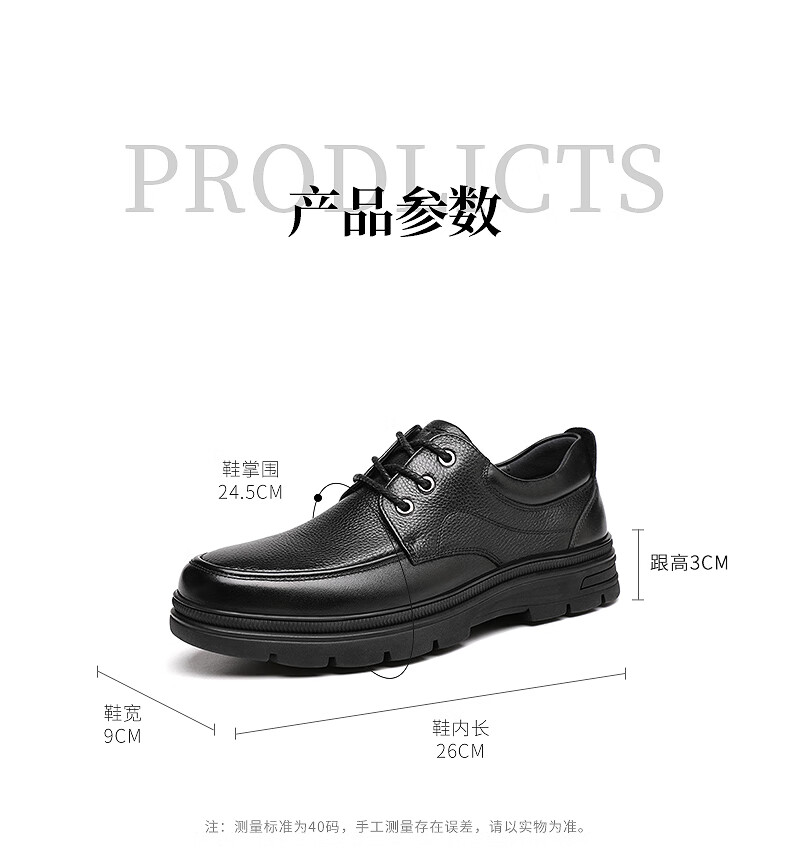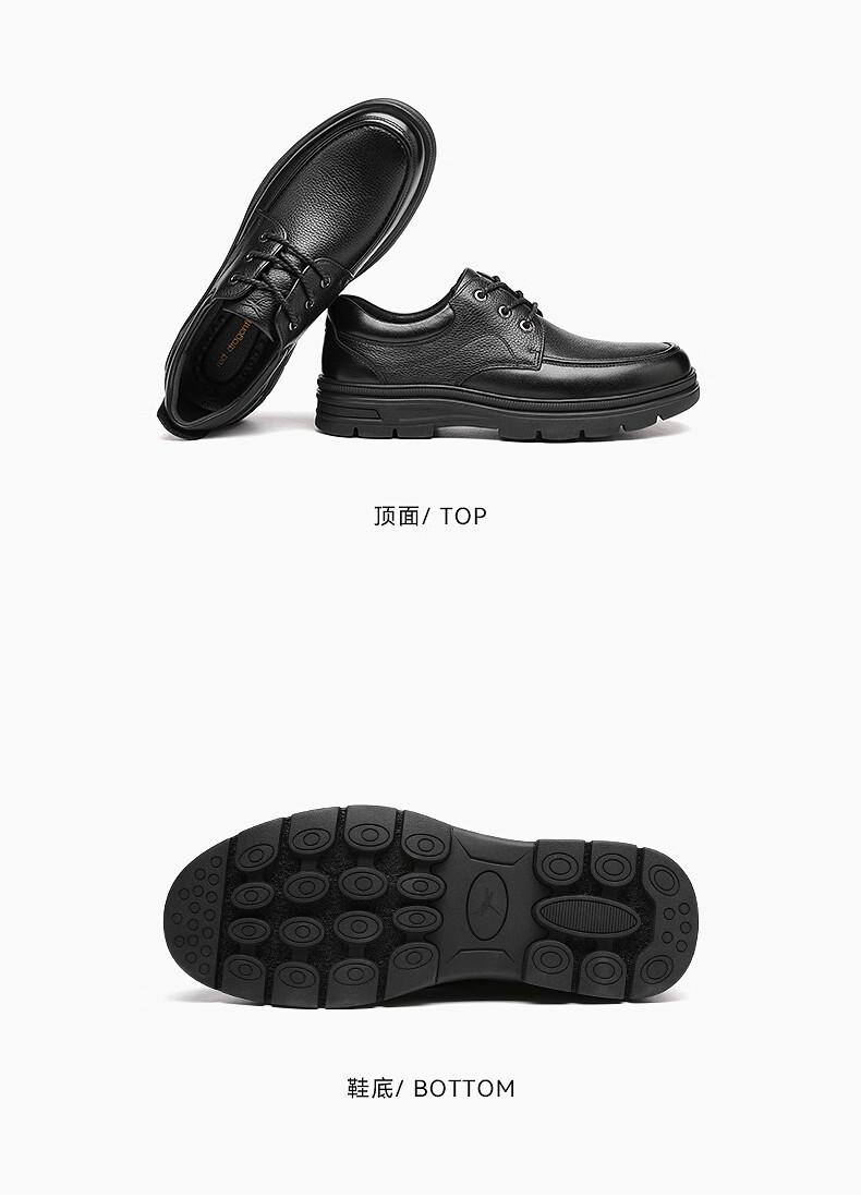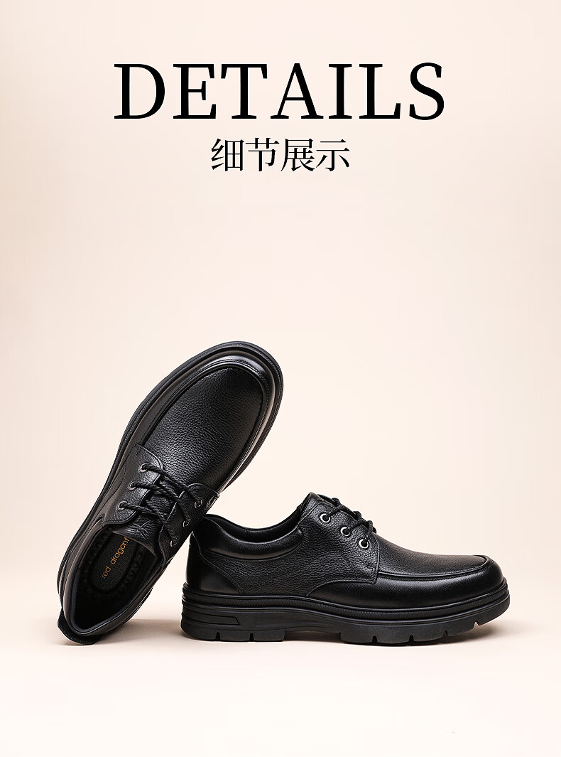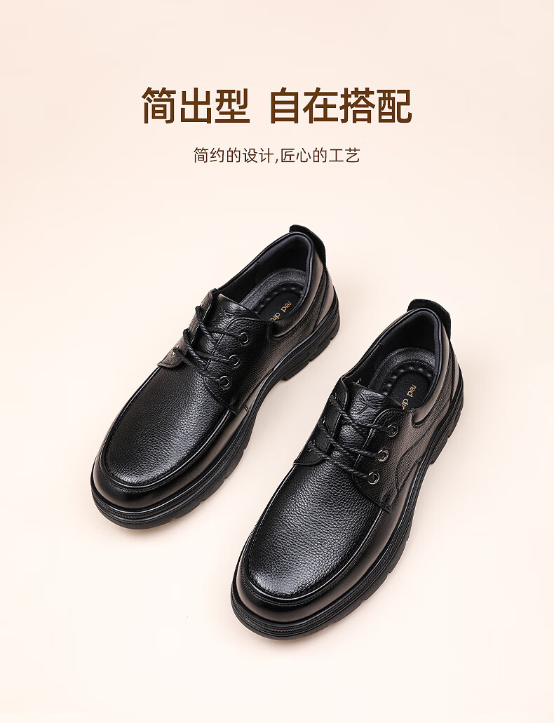 红蜻蜓牛皮男鞋系带皮鞋男爸爸鞋舒适厚底商务休闲鞋男WTA440741黑色42