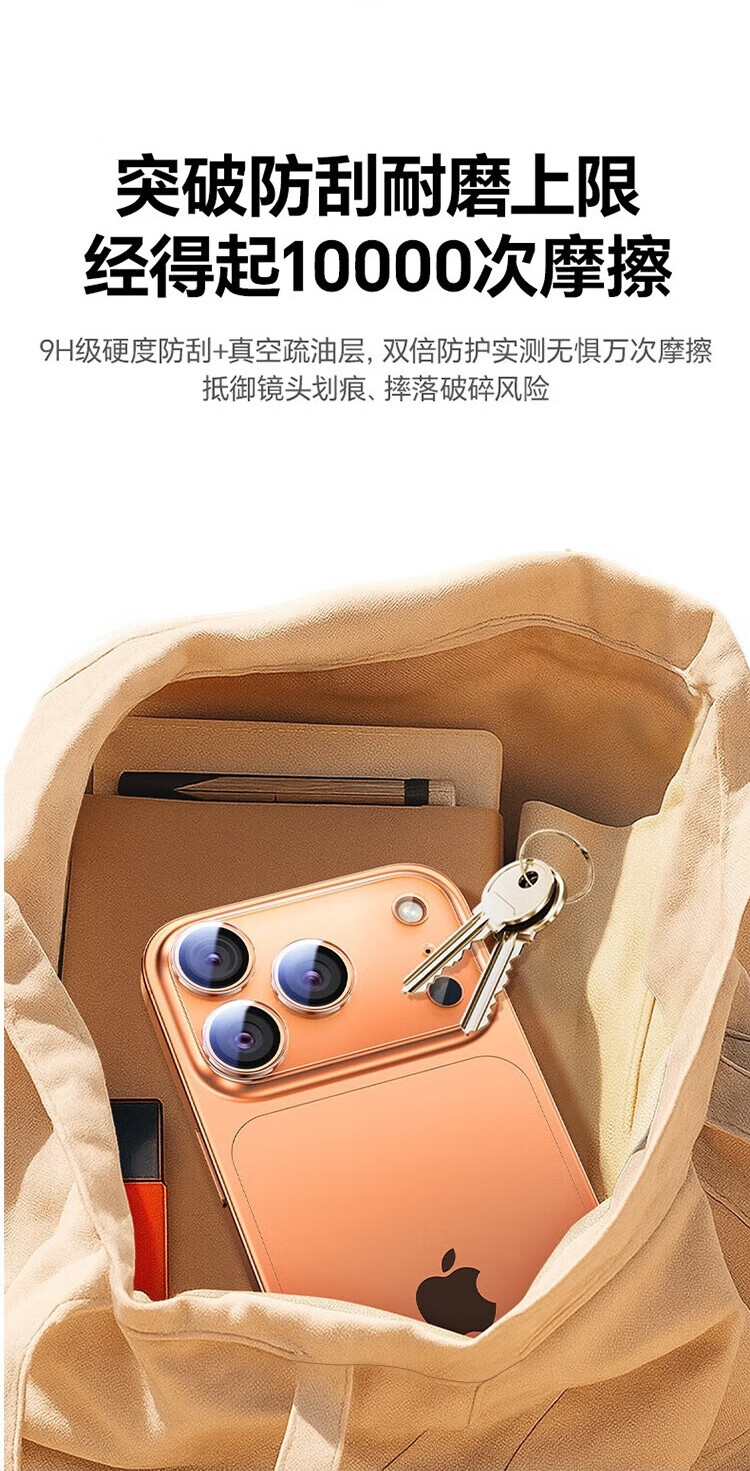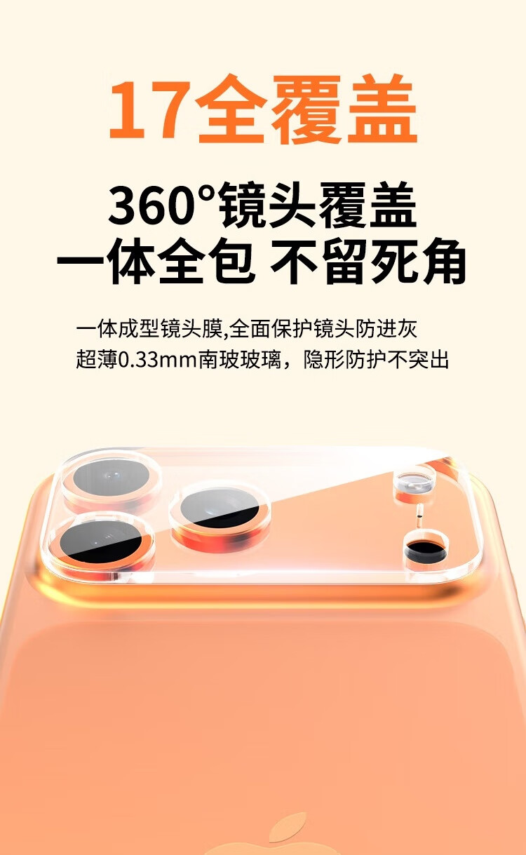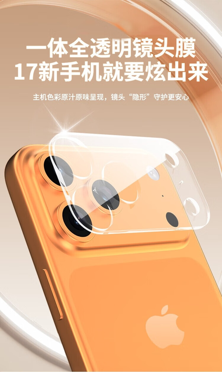 朗客【2片装】适用iphone17promax镜头膜苹果17ProMax无损超清摄像头钢化膜防刮耐磨防摔爆一体式全包