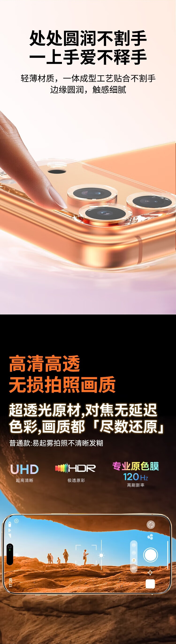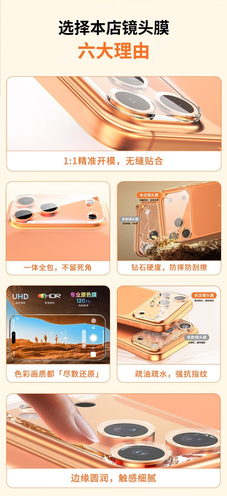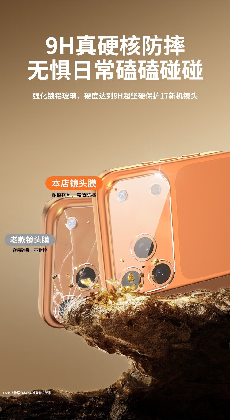 朗客【2片装】适用iphone17promax镜头膜苹果17ProMax无损超清摄像头钢化膜防刮耐磨防摔爆一体式全包