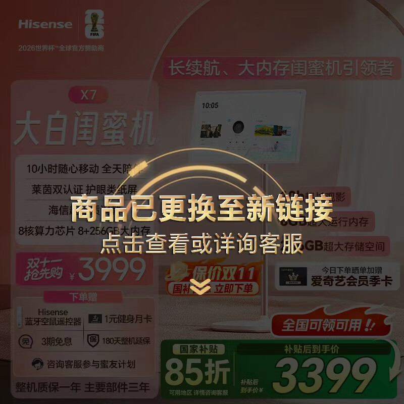 海信大白闺蜜机X7【国家补贴】10h长续航 护眼屏 27英寸8+256GB大平板 娱乐观影健身 移动电视女生礼物