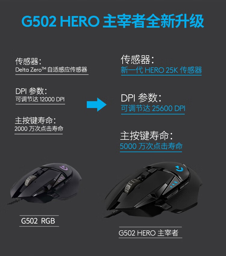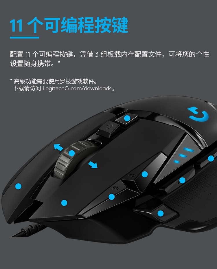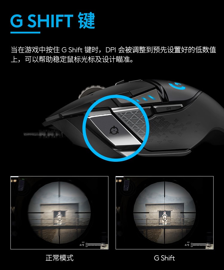 罗技(G) G502 HERO主宰者 有线鼠标 游戏鼠标 吃鸡鼠标 电竞鼠标宏编程可配重HERO引擎 礼盒送男友 G502H(阿卡丽贴纸)+鼠标垫