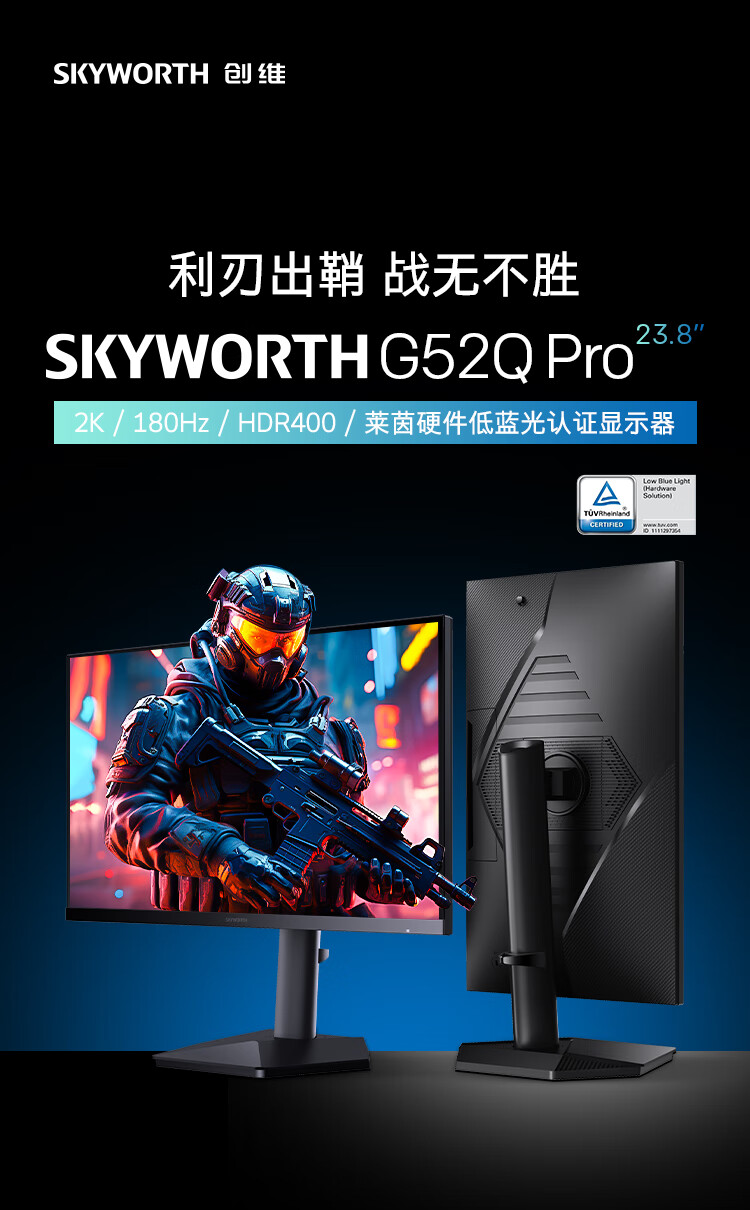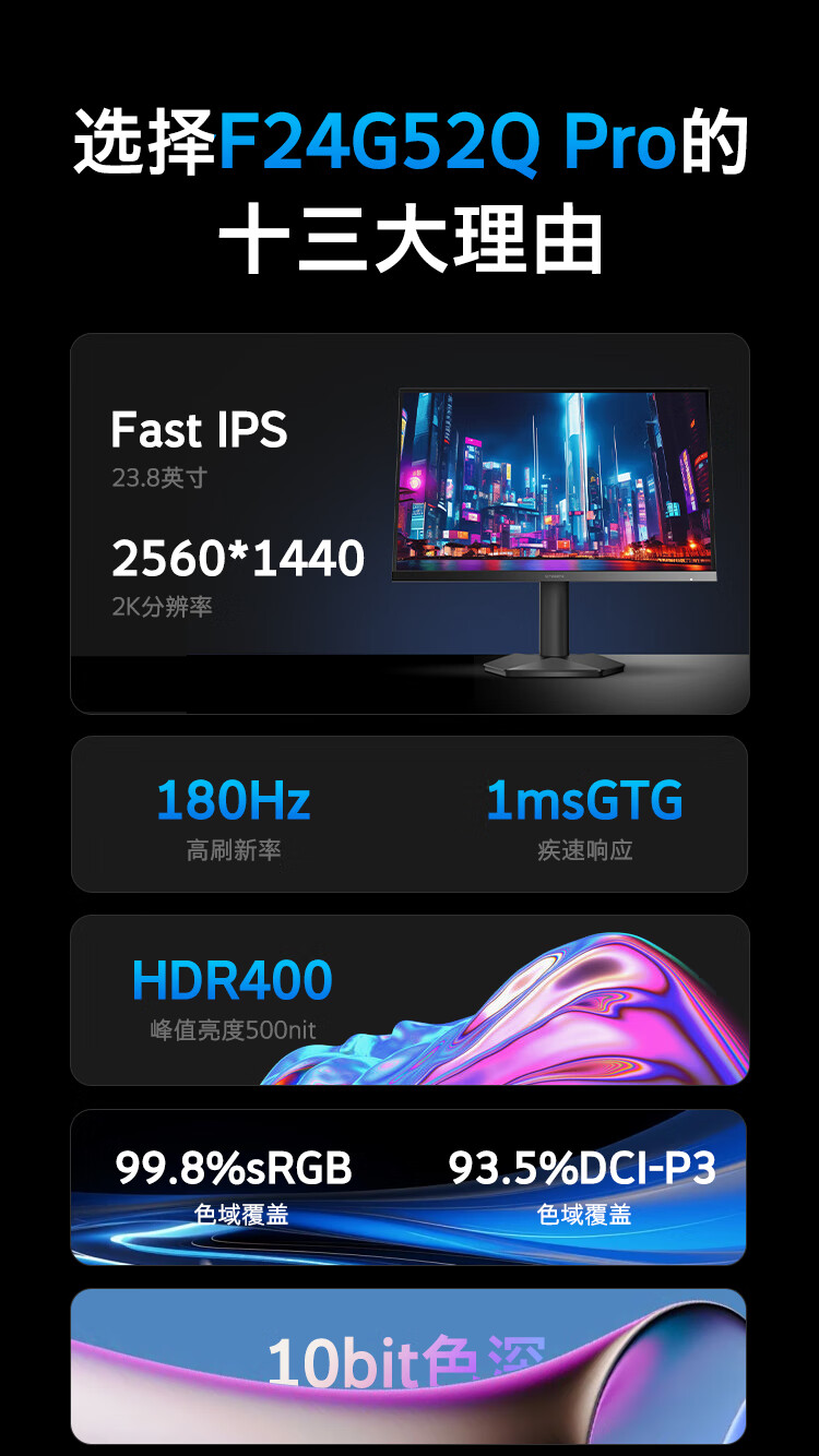 创维23.8英寸2K电竞显示器180Hz FastIPS 1ms HDR400 10bit 光感屏变 拓展接口 旋转升降 F24G52Q Pro