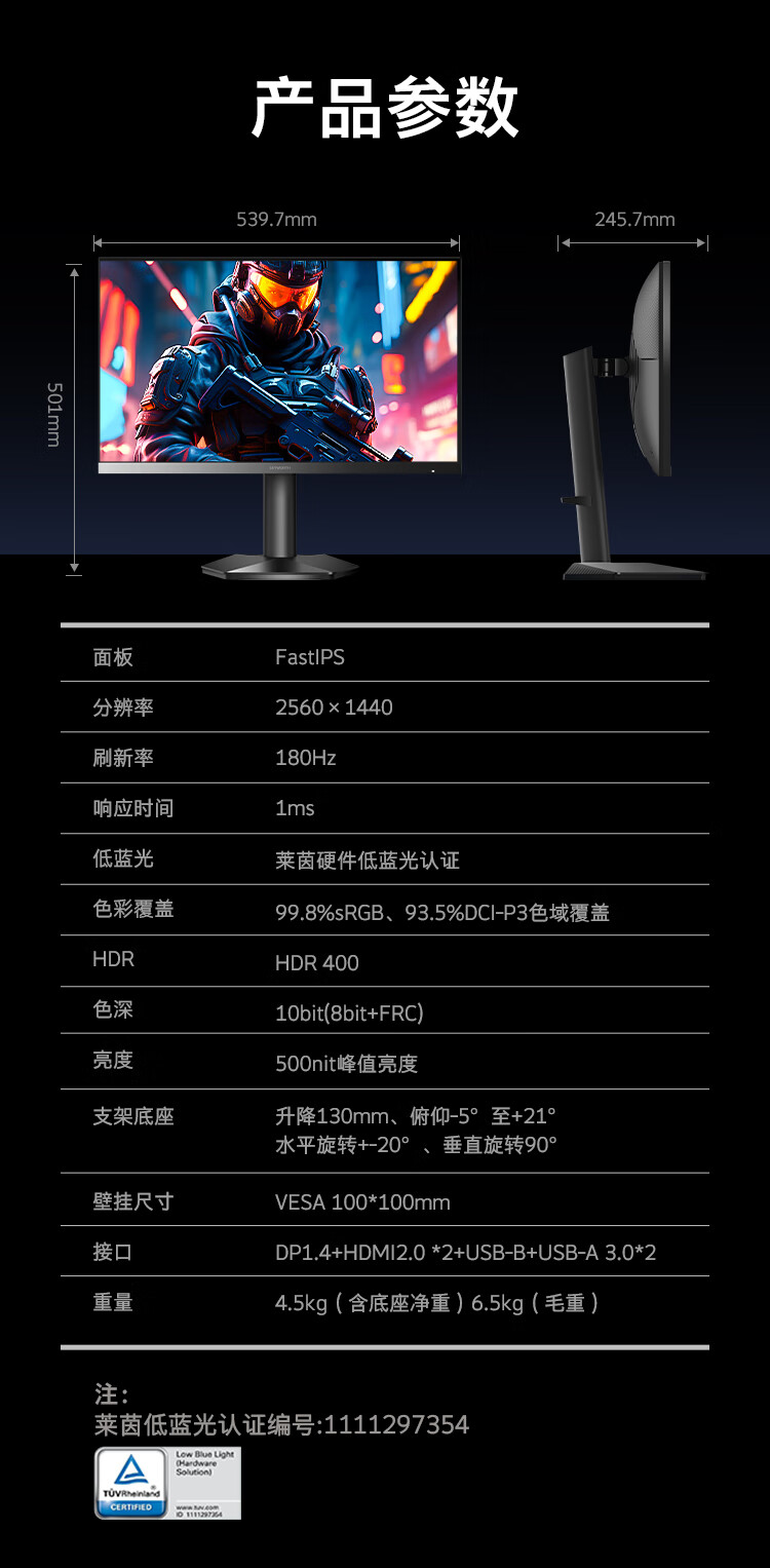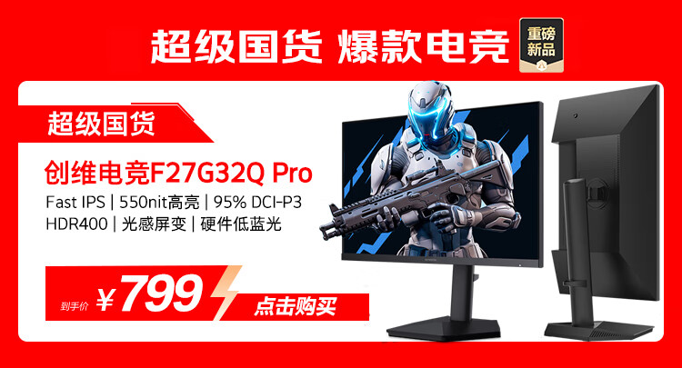联合创新27英寸2K 320Hz高刷Fast IPS屏1ms响应HDR400高亮 旋转升降底座 三角洲游戏电竞显示器27G2T