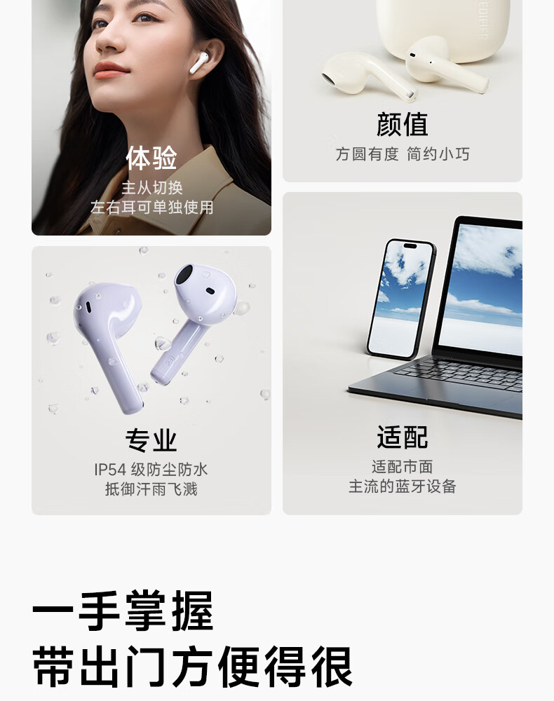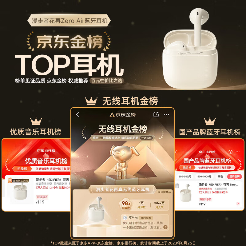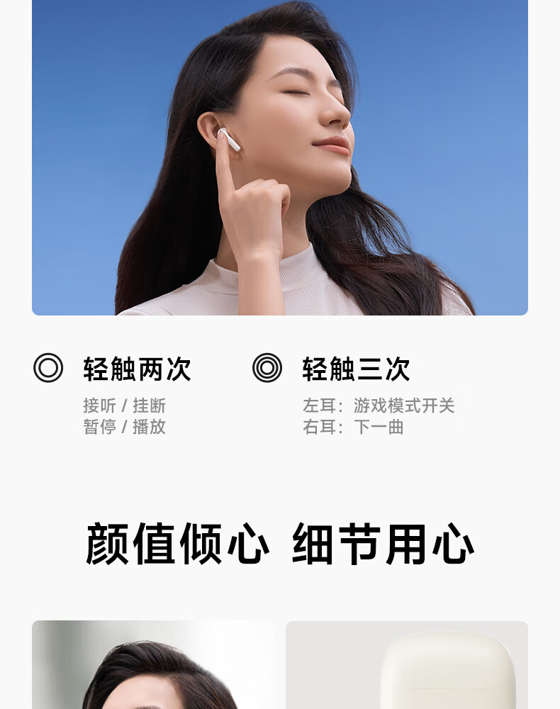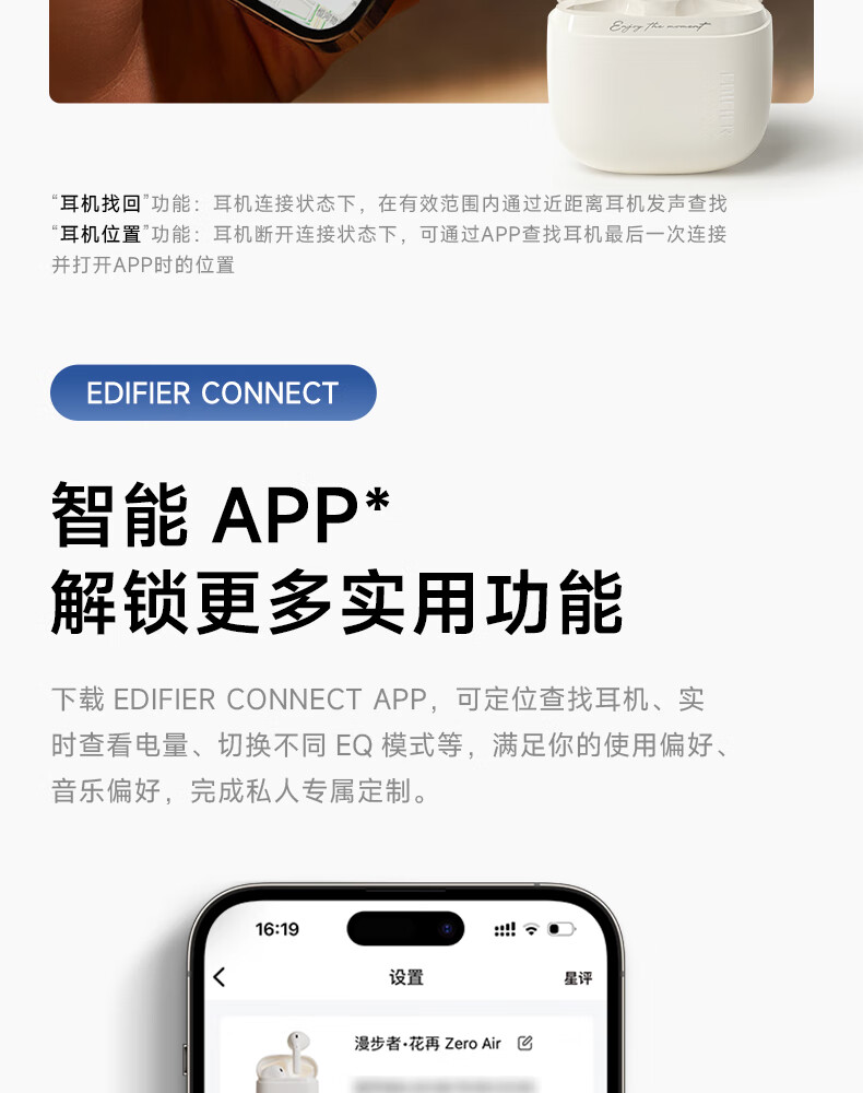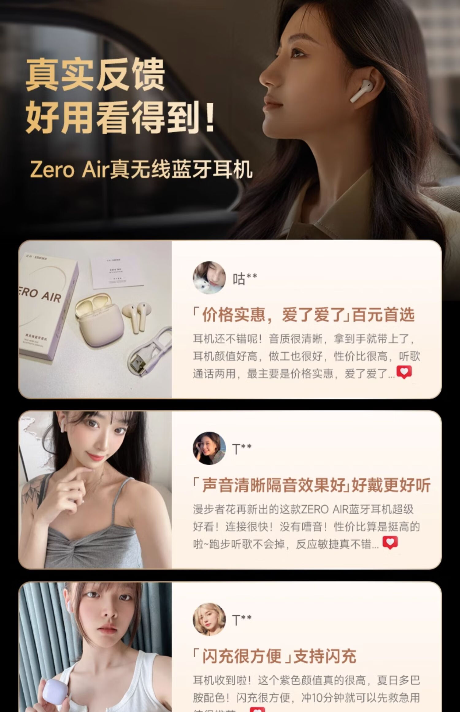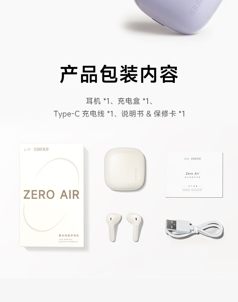 漫步者(EDIFIER)花再 Zero Air 真无线蓝牙耳机半入耳式耳麦降噪游戏新款适用于苹果Pro安卓小米红米荣耀漫游花在 月白+入会享5元