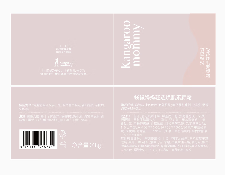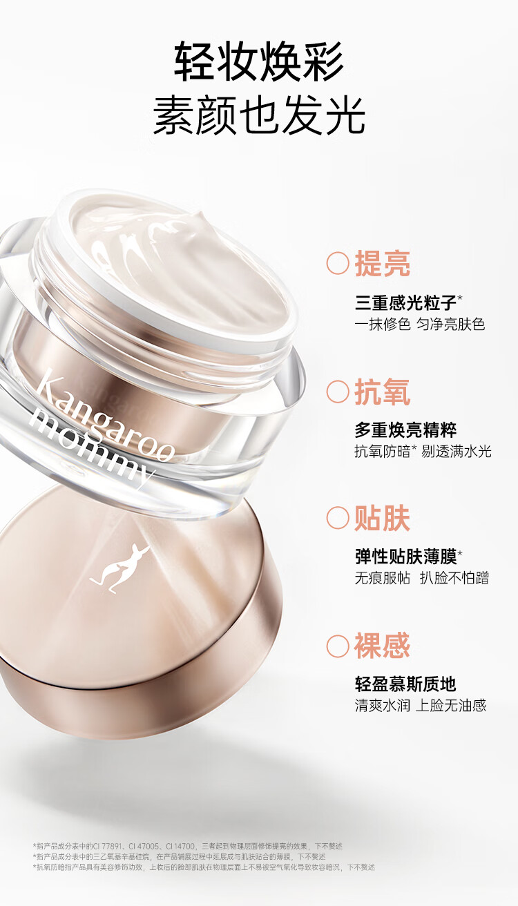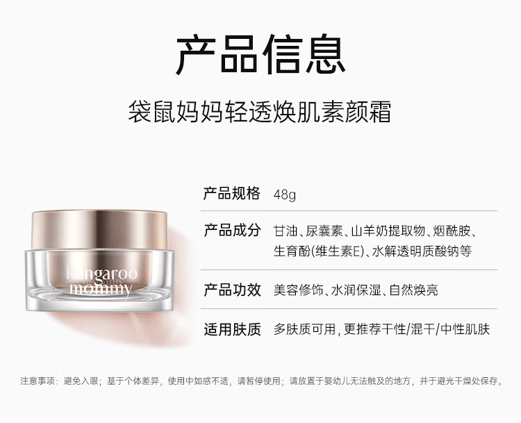 袋鼠妈妈 羊初乳轻透焕肌素颜霜准孕妇护肤孕期素颜霜提气色专用护肤品48g