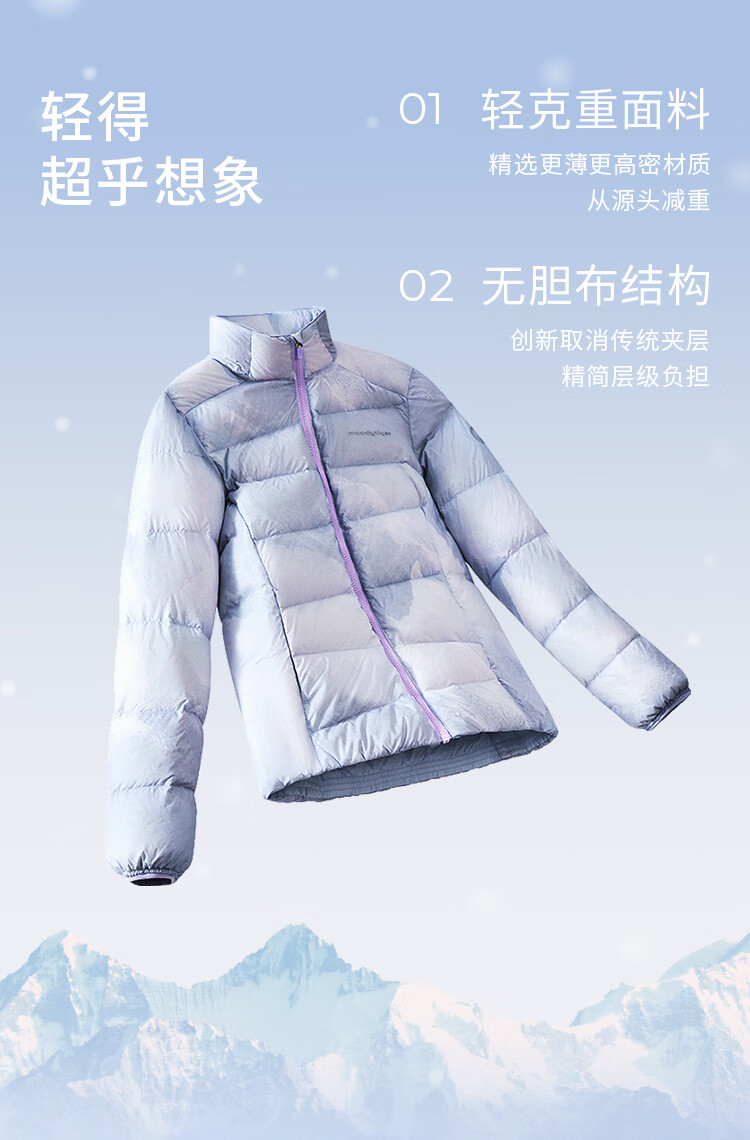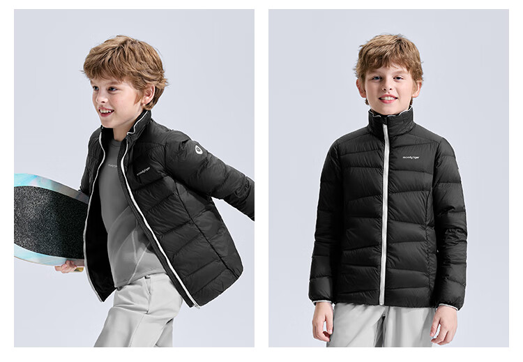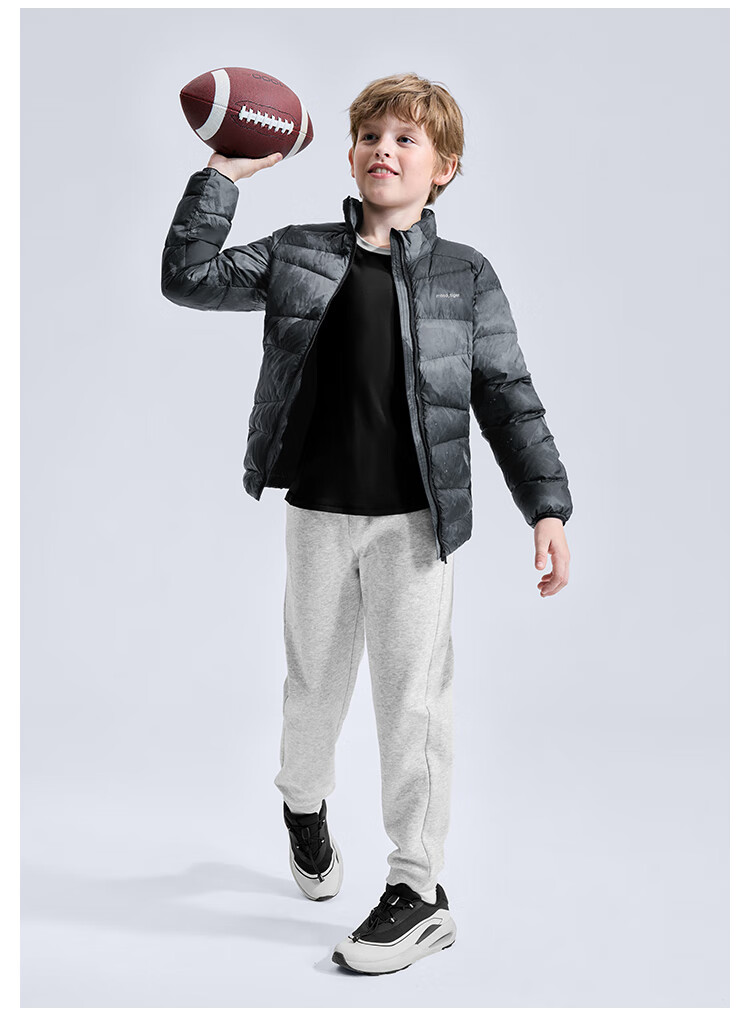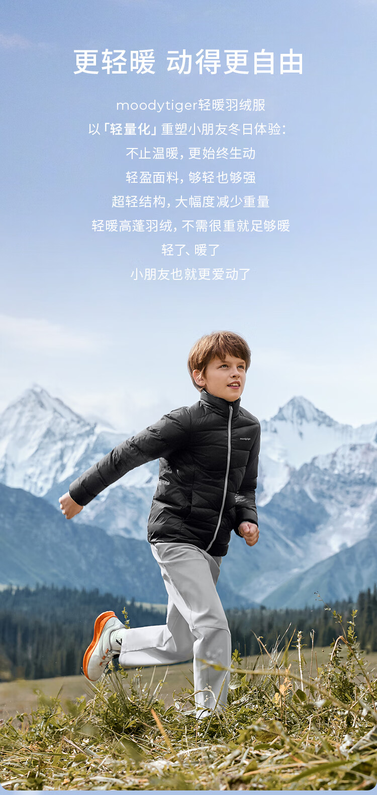 moodytiger儿童轻薄羽绒服保暖拒水25年秋冬新品男童运动外套便携女童鸭绒服
