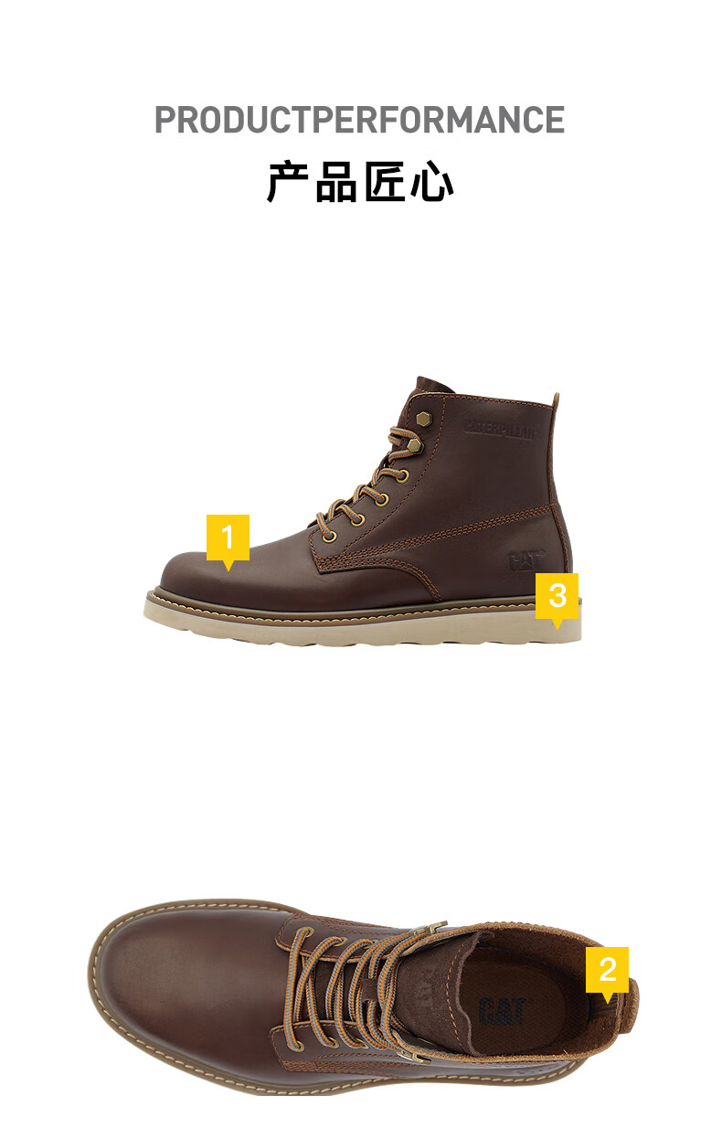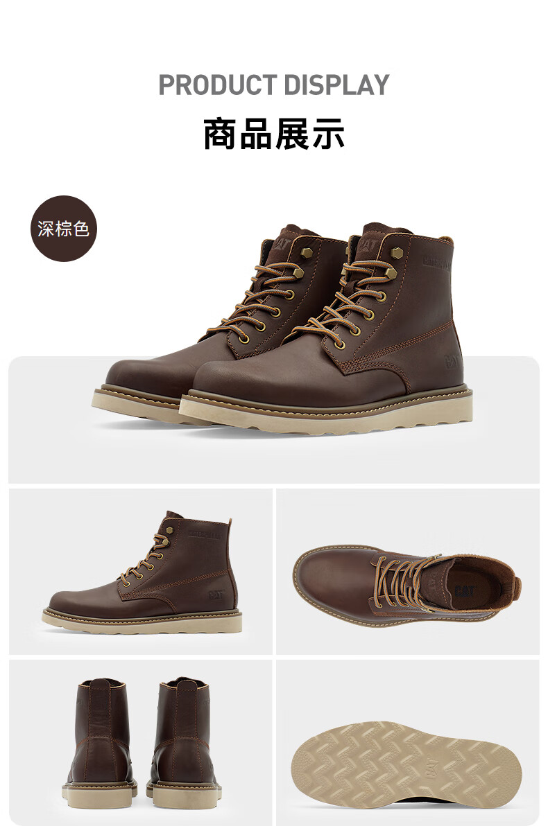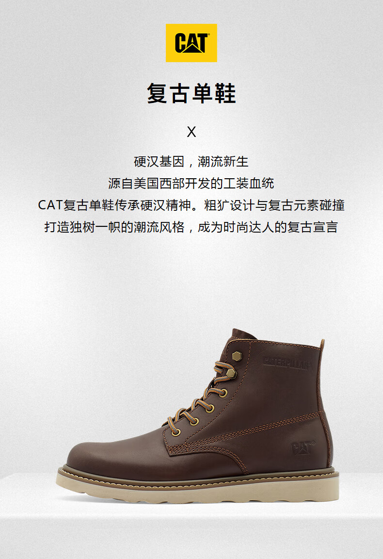 CAT卡特25秋季新品男士户外高帮经典休闲牛皮复古单鞋