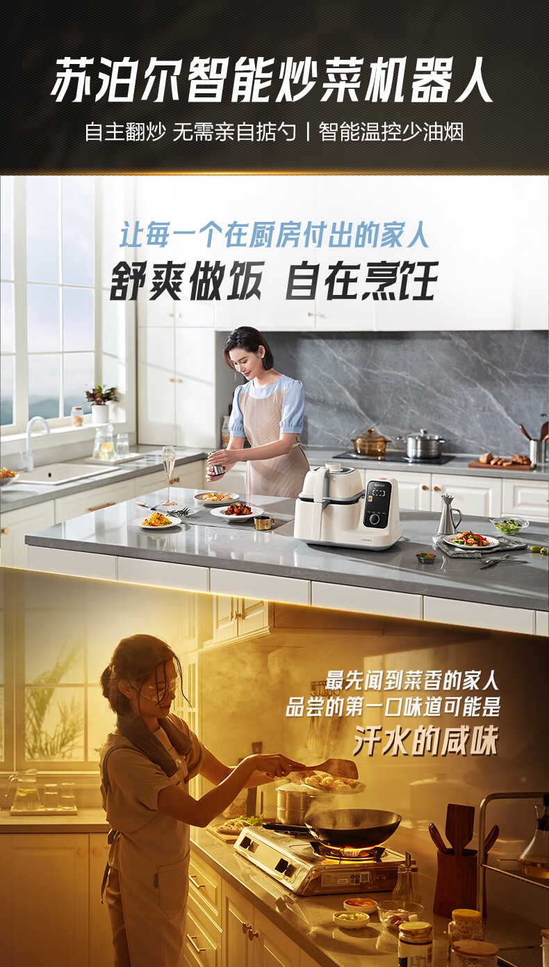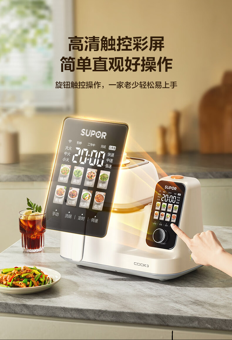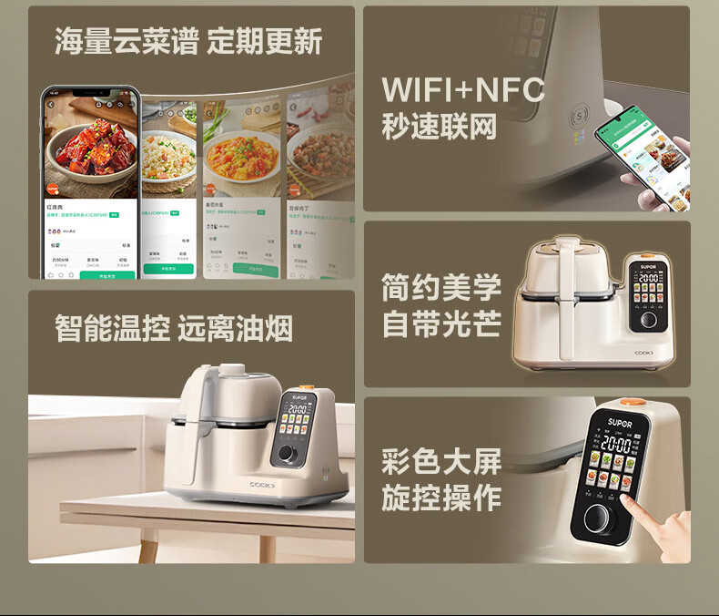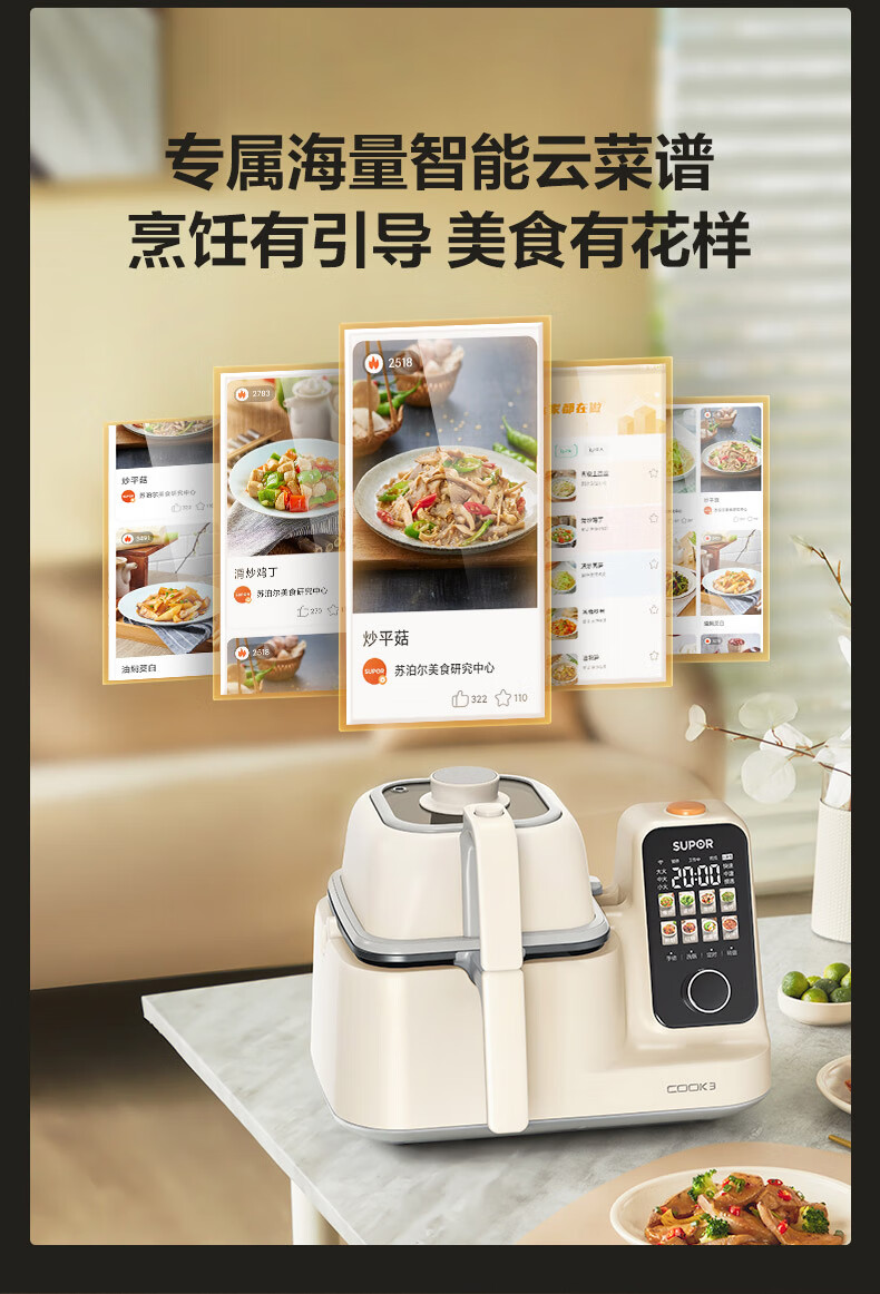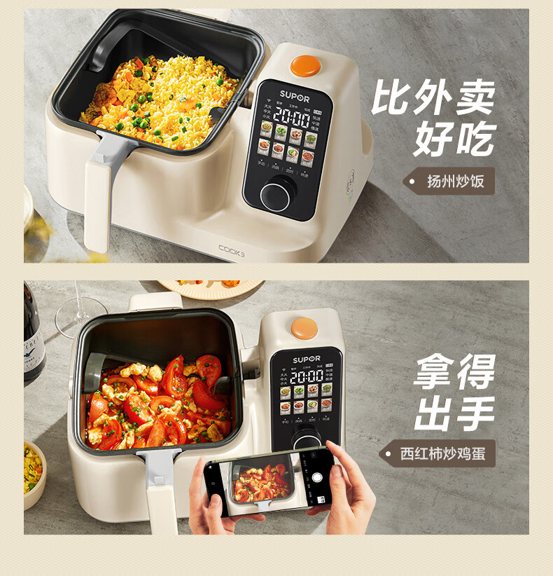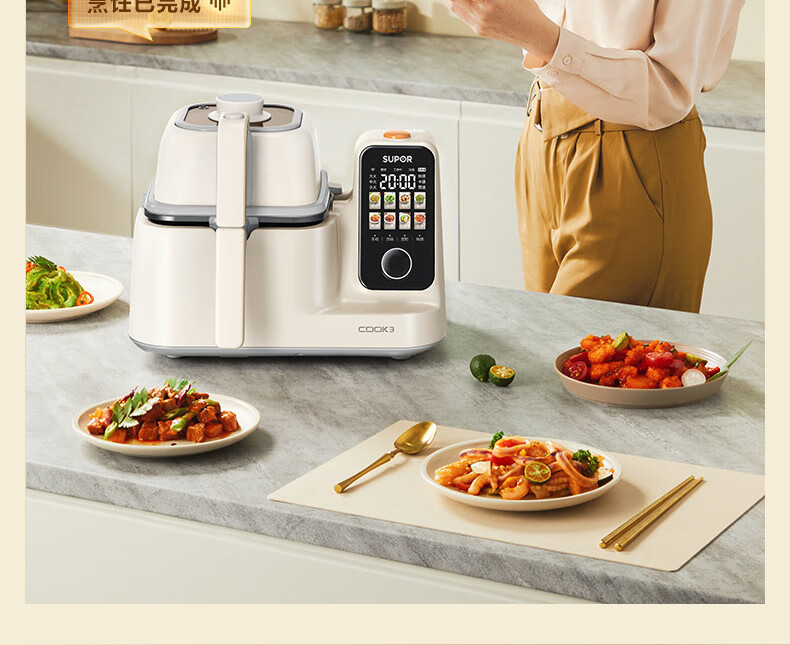 苏泊尔(SUPOR)家用智能炒菜机器人Cook3如明火爆炒少油烟热水自清洗多用途锅电炒锅料理机C30FS10