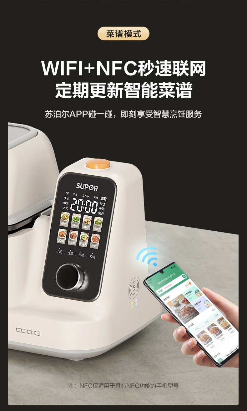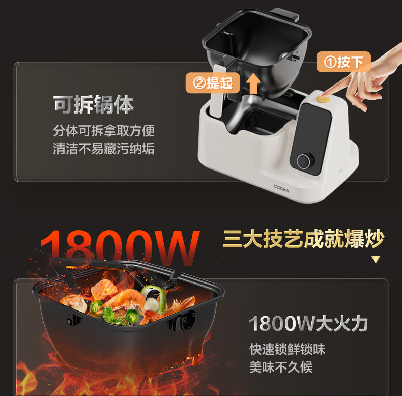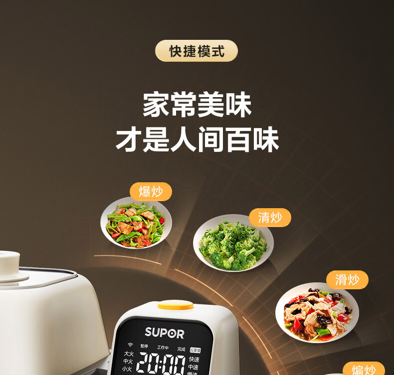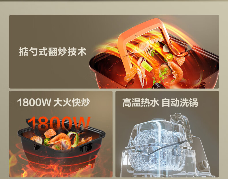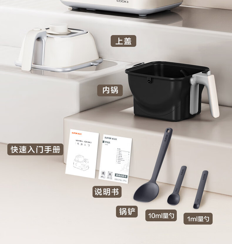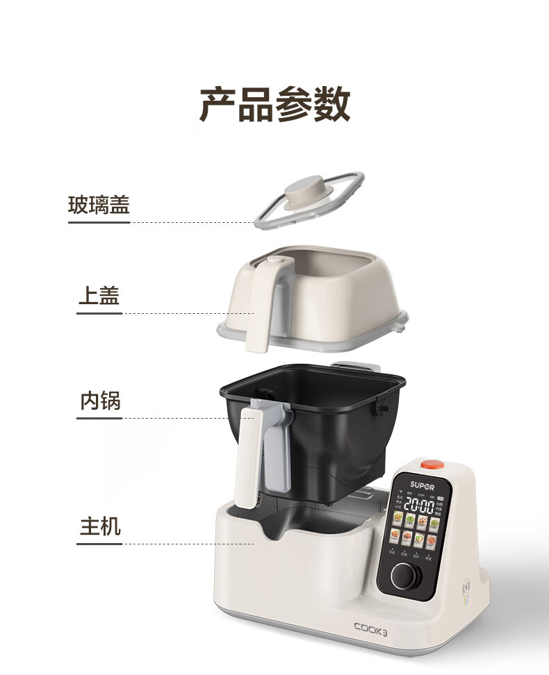 苏泊尔(SUPOR)家用智能炒菜机器人Cook3如明火爆炒少油烟热水自清洗多用途锅电炒锅料理机C30FS10