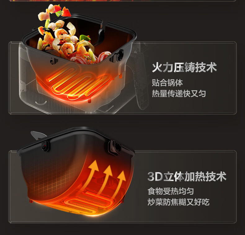 美的(Midea)空气炸锅大容量不用翻面家用多功能电炸锅智能定时无油低脂煎炸锅温控炸鸡薯机条空气烤箱 KZE5004【双旋钮控温控时】免翻面 5L