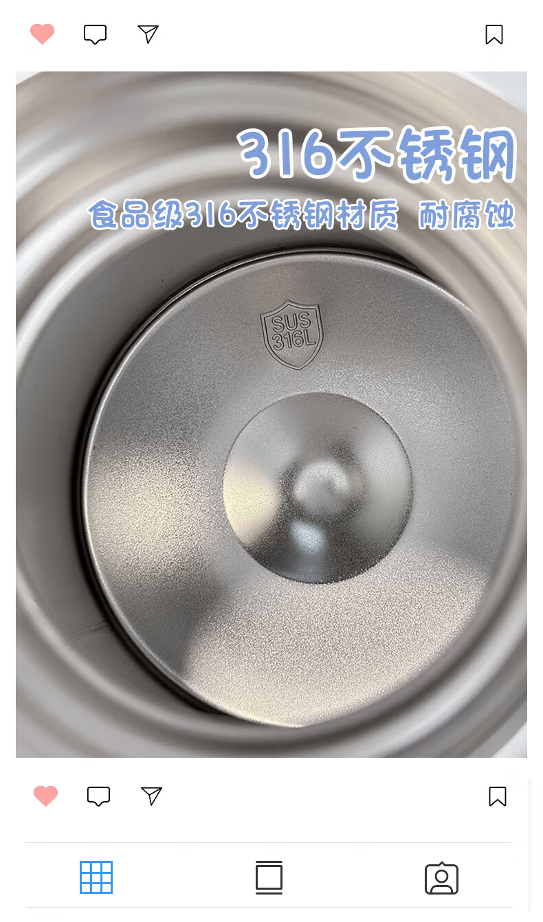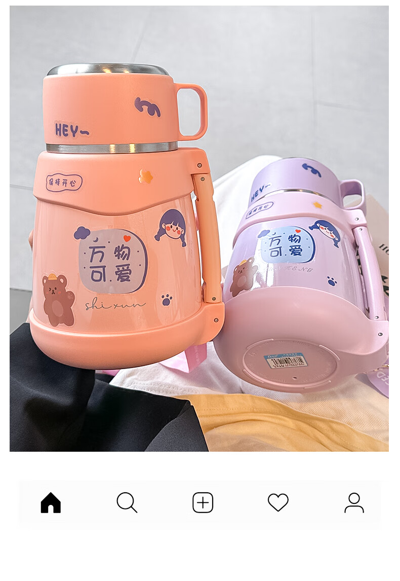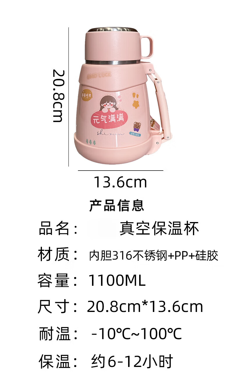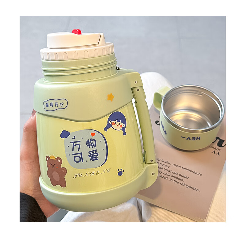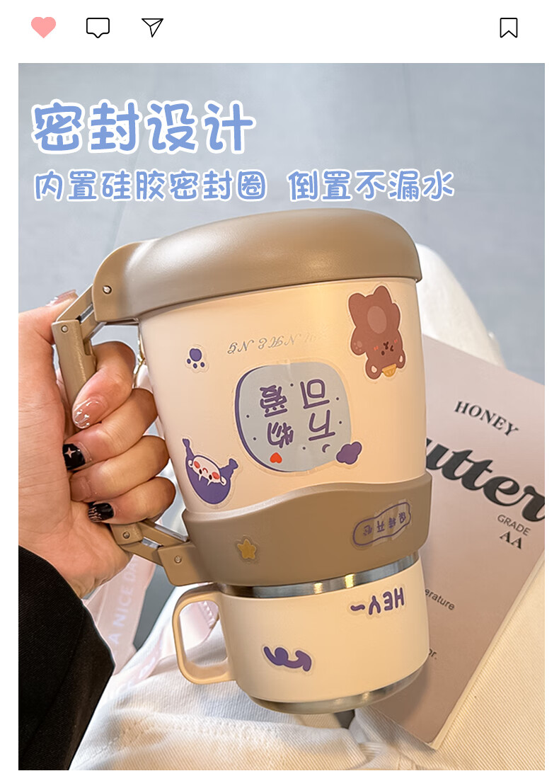 DEATKN德国大容量保温杯女生高颜值大肚杯子带盖便携可爱儿童316不锈钢 【一盖两用_带茶隔】粉色+3D立体贴* 1100ml