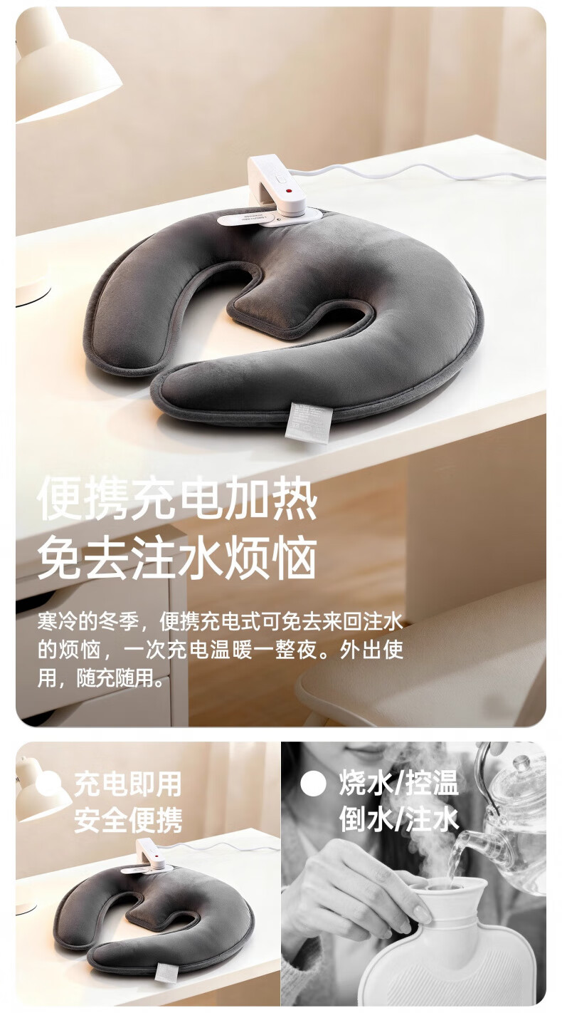 DEATKN德国高端热水袋U型防爆充电暖宝宝肩颈椎理疗热敷暖水袋被窝专用 5件套(加厚加硬)