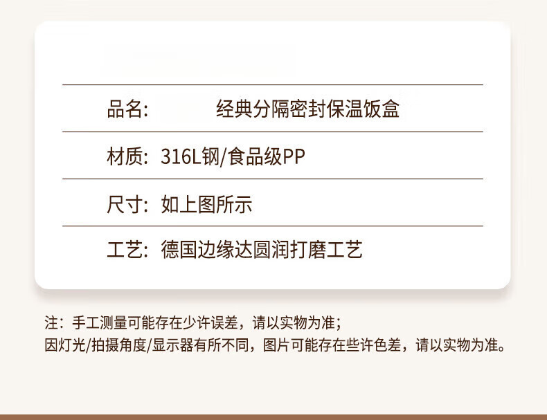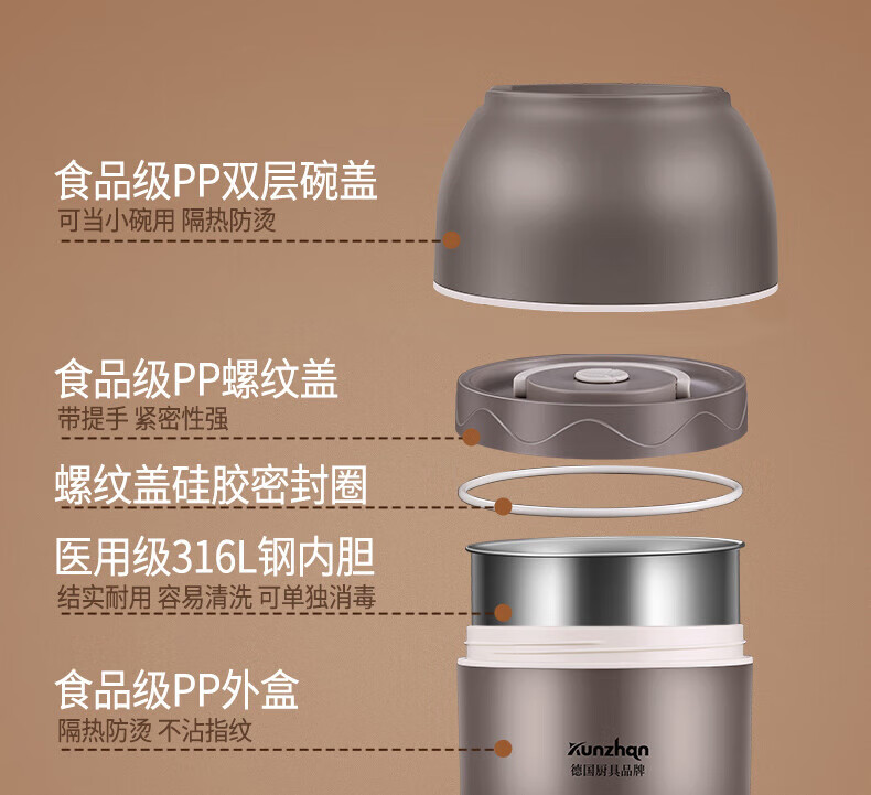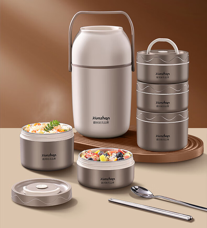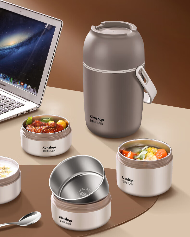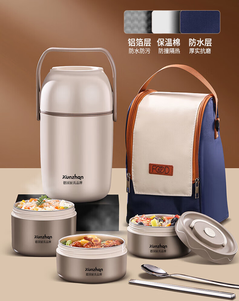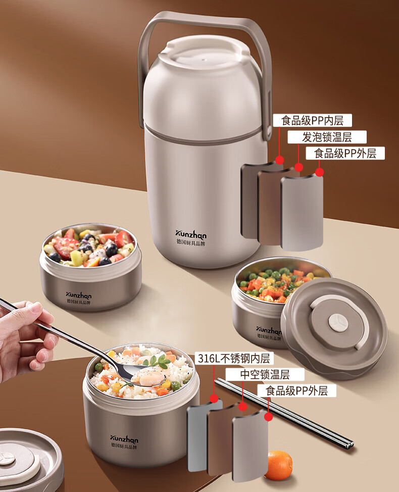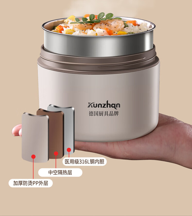 户璃德国高端316不锈钢保温饭盒上班族专用超长保温饭盒桶三层304学生 L姓 经典白(杯+陶瓷盖+陶瓷勺)
