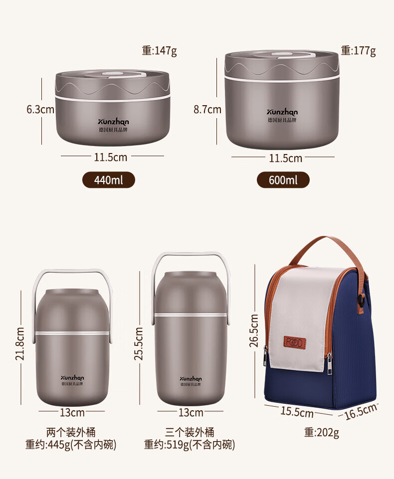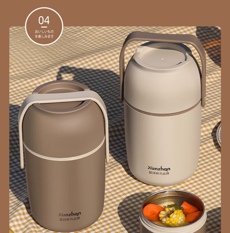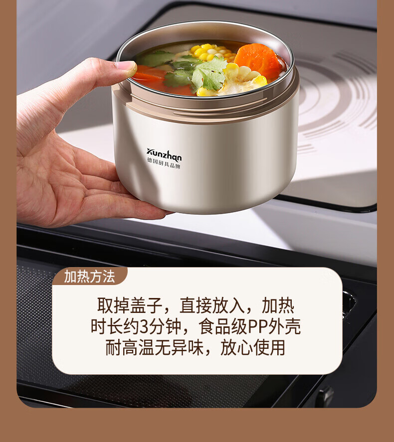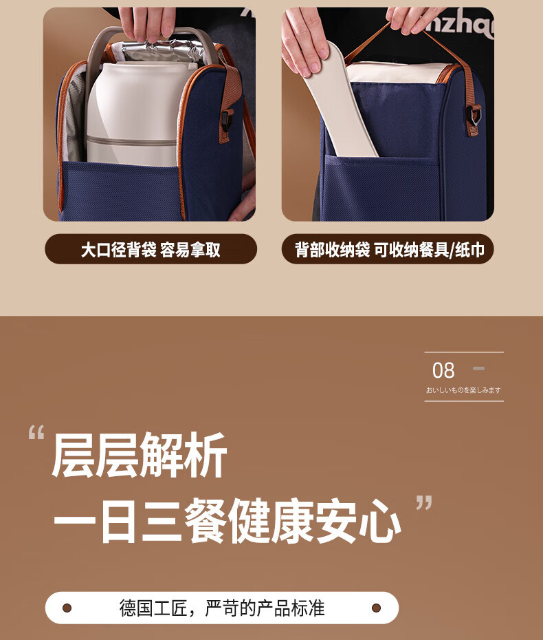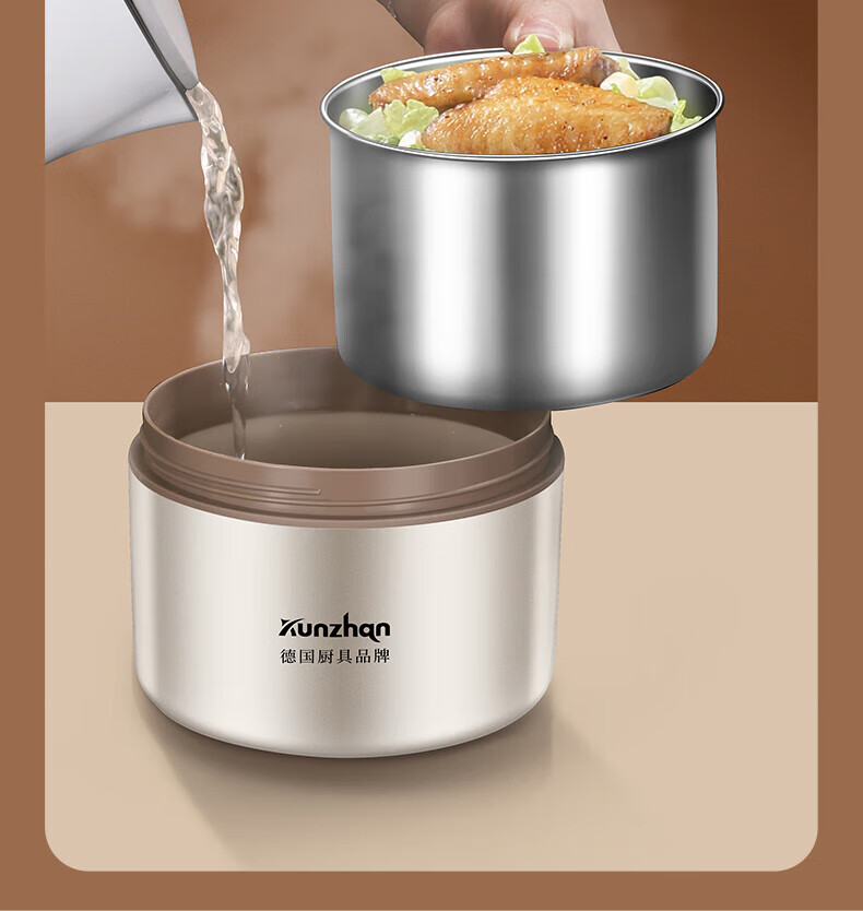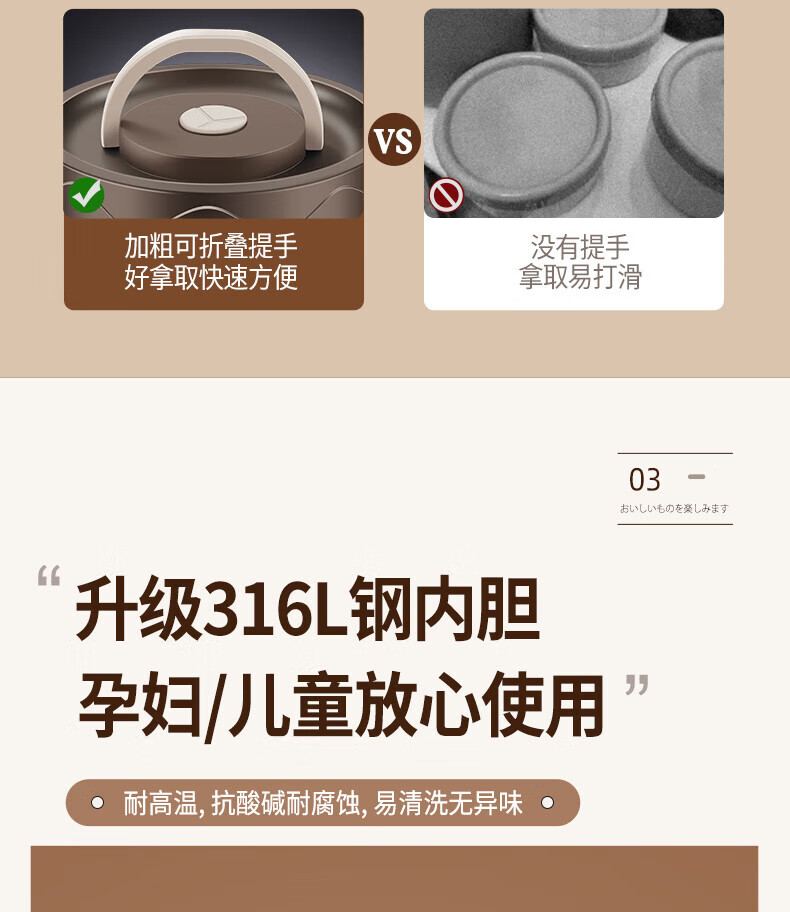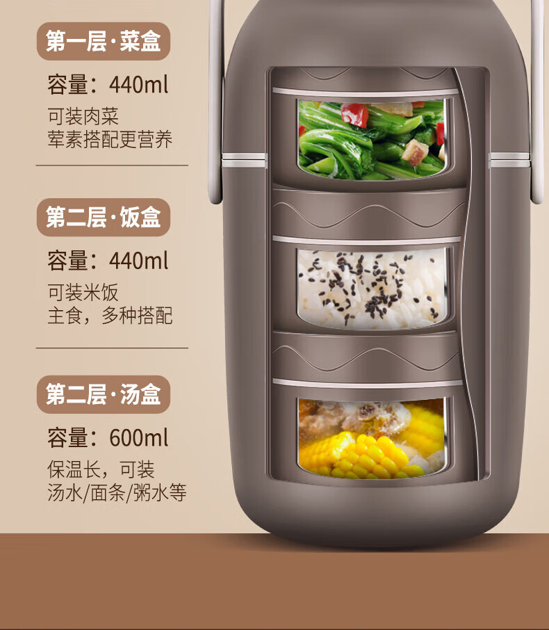户璃德国高端316不锈钢保温饭盒上班族专用超长保温饭盒桶三层304学生 L姓 经典白(杯+陶瓷盖+陶瓷勺)