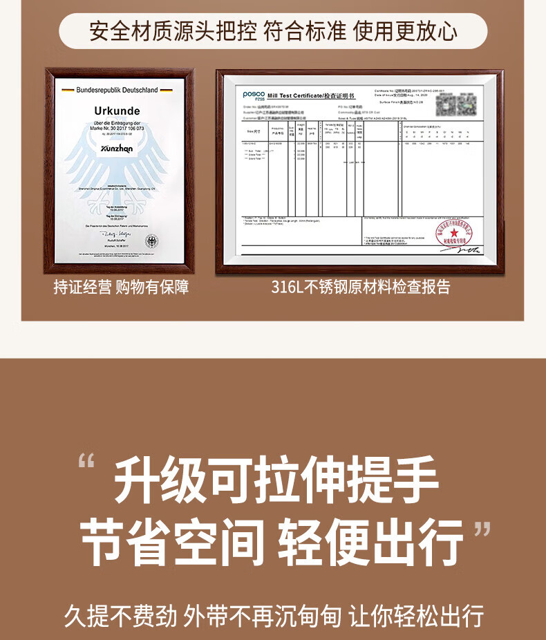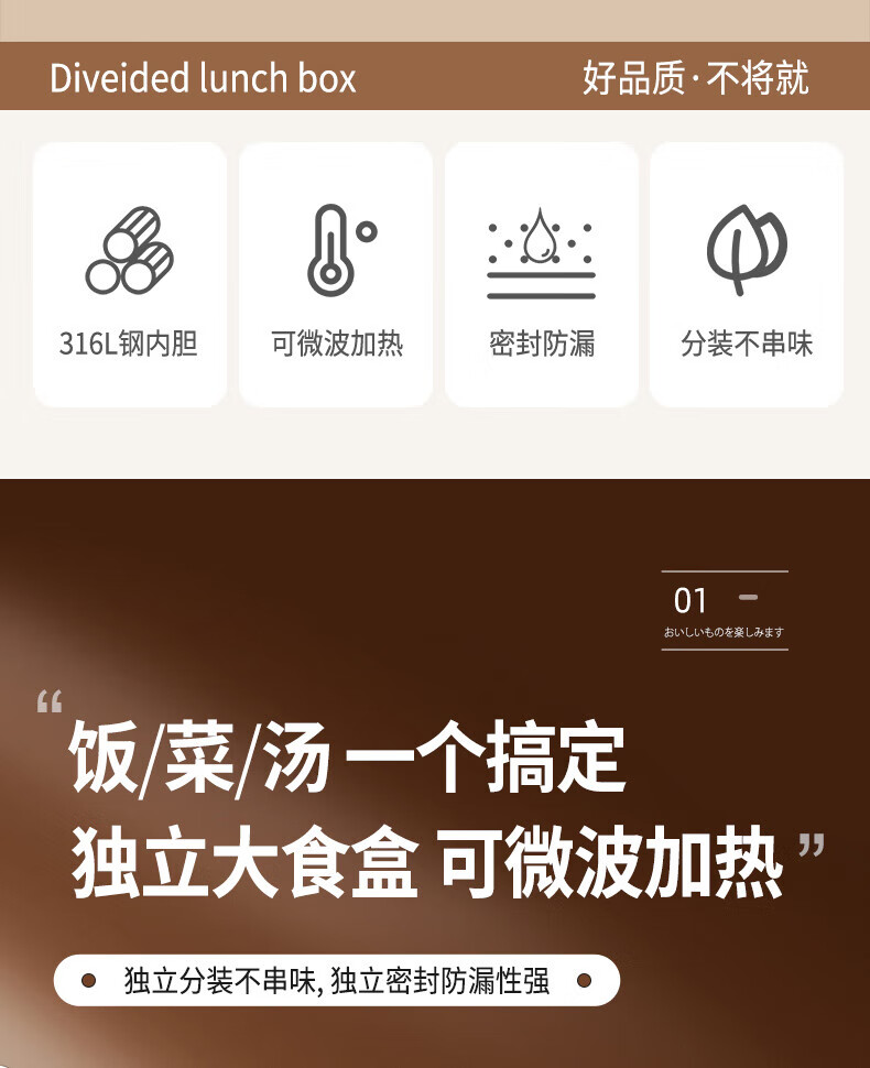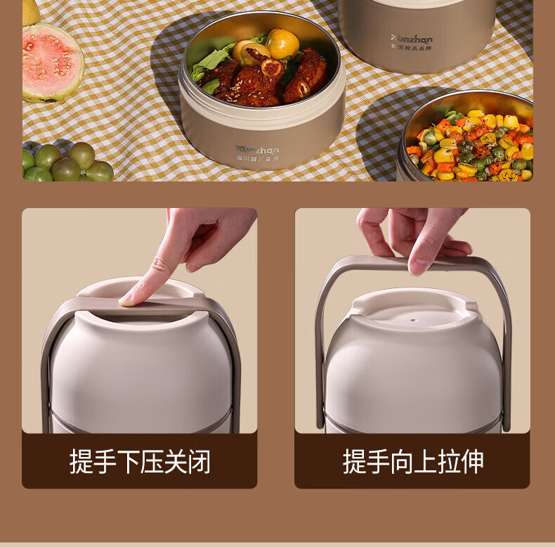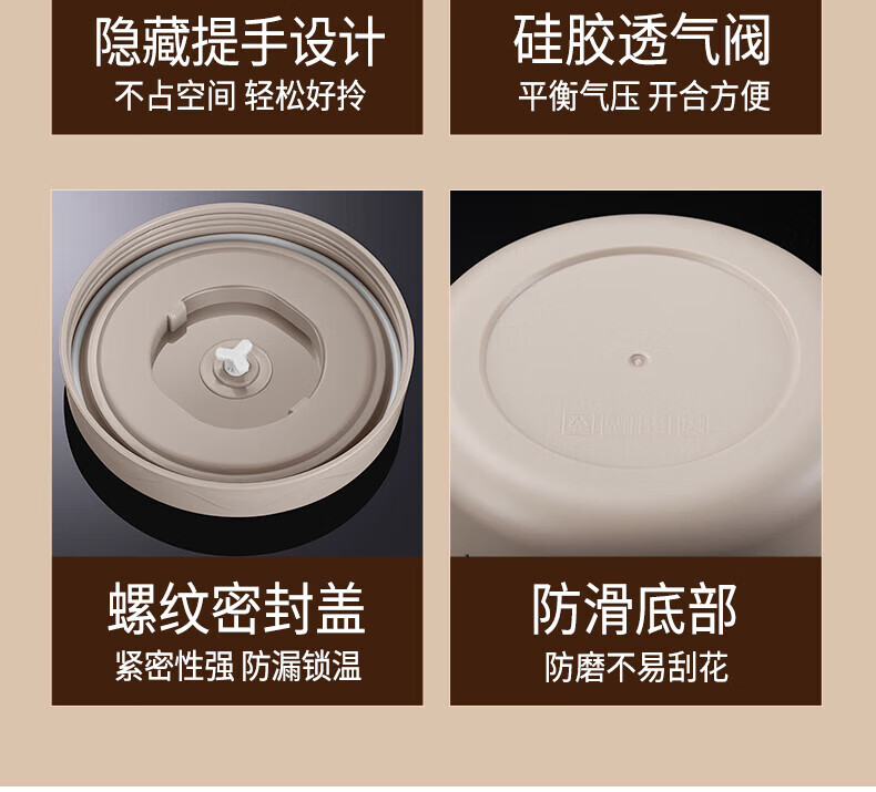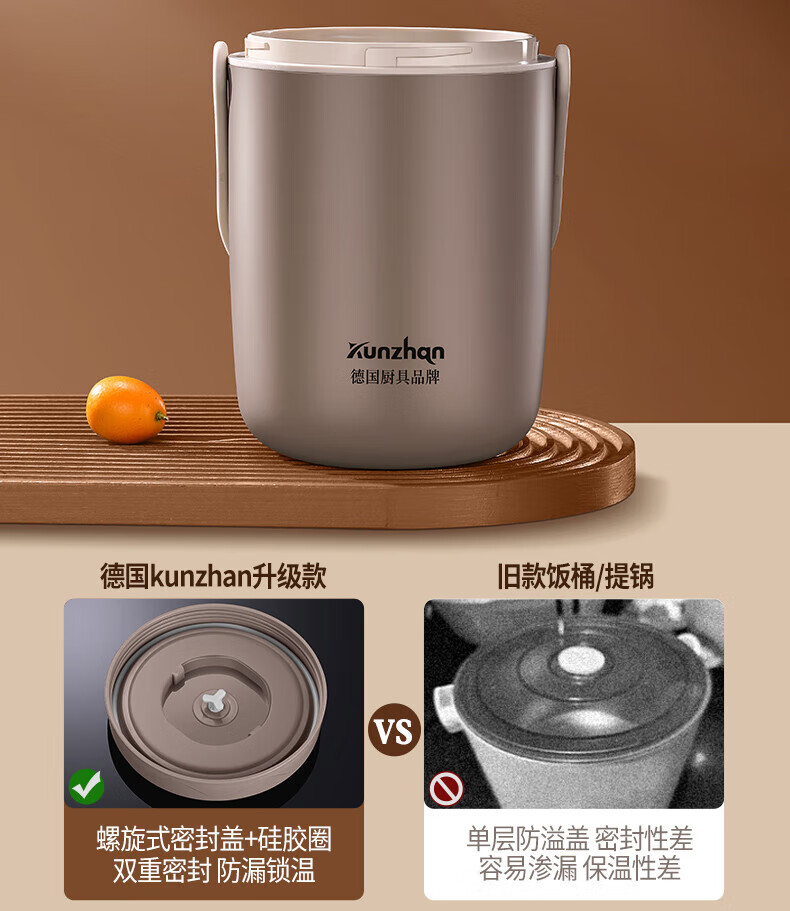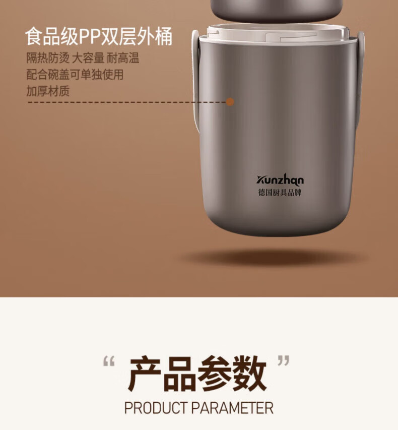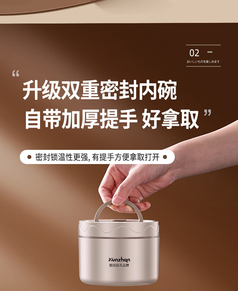 户璃德国高端316不锈钢保温饭盒上班族专用超长保温饭盒桶三层304学生 L姓 经典白(杯+陶瓷盖+陶瓷勺)