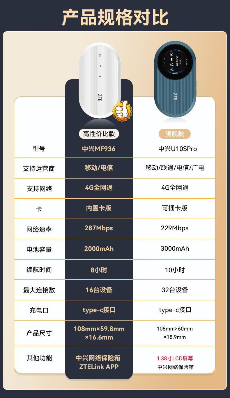 中兴随身wifi6免插卡移动wifi路由器U10S支持4g/5g设备全网通用YM25租房刷视频打游戏2025款 U10S-升级版 300G