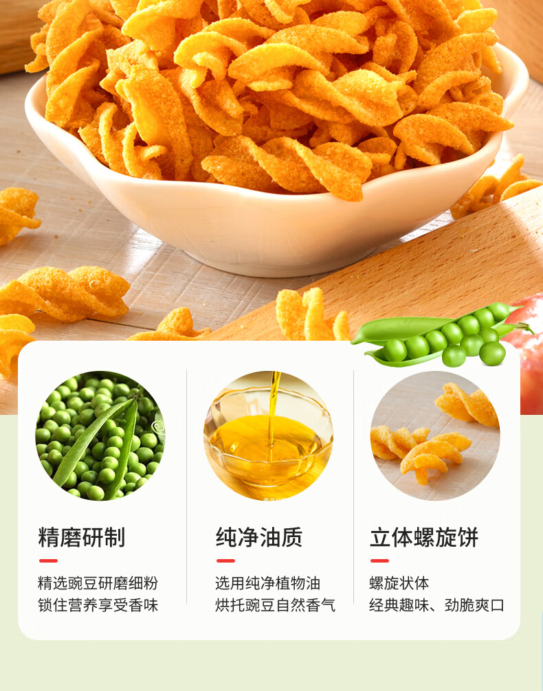 卡迪那(cadina)豌豆脆 (原味2袋+辣味1袋)52g*3袋 组合包 休闲零食 膨化食品