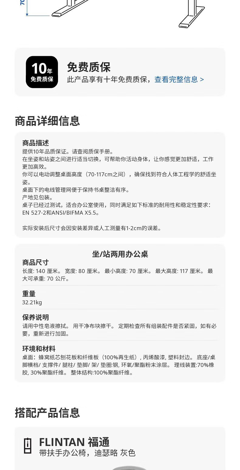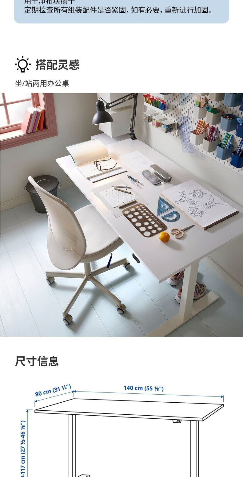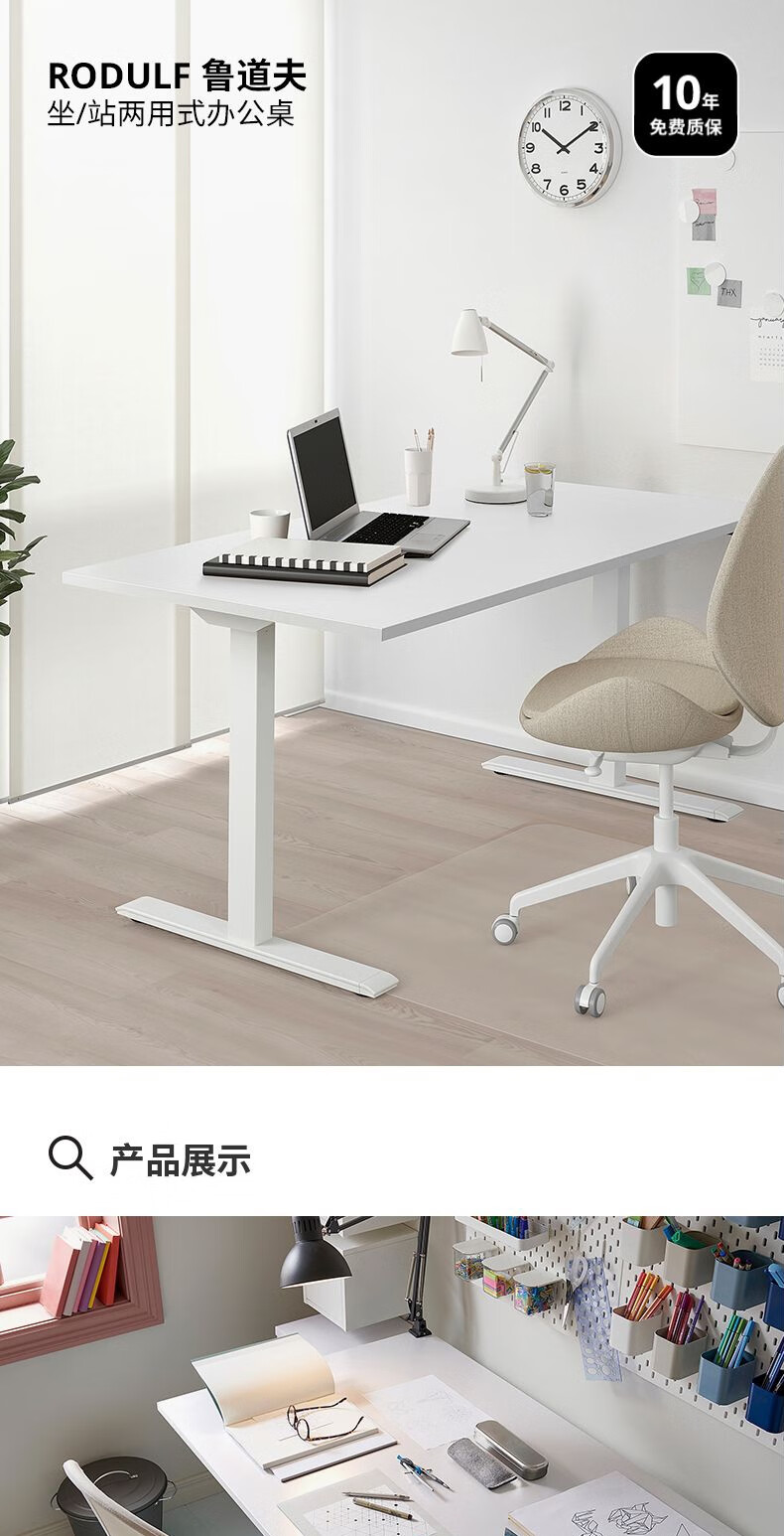 宜家(IKEA)RODULF鲁道夫电动桌坐站两用办公桌电竞桌学习桌书房 坐/站两用办公桌白色