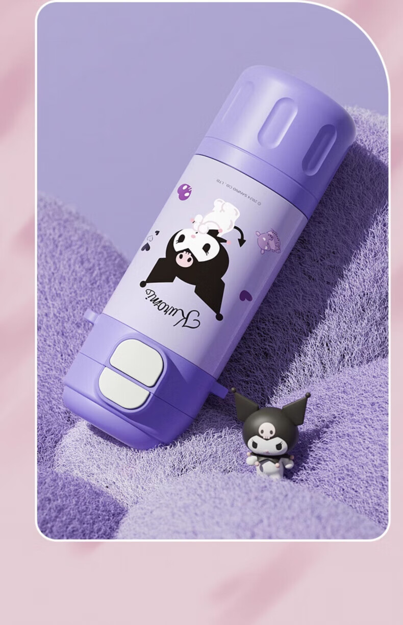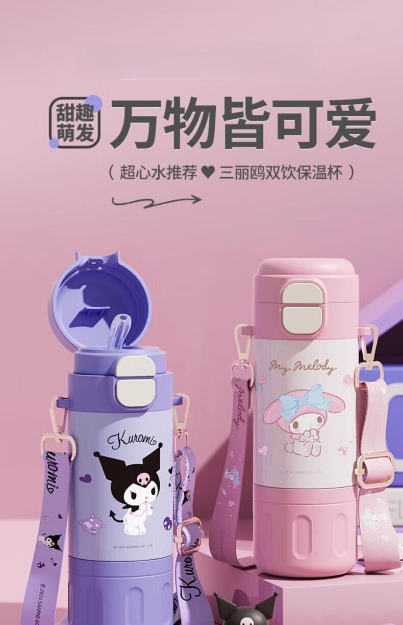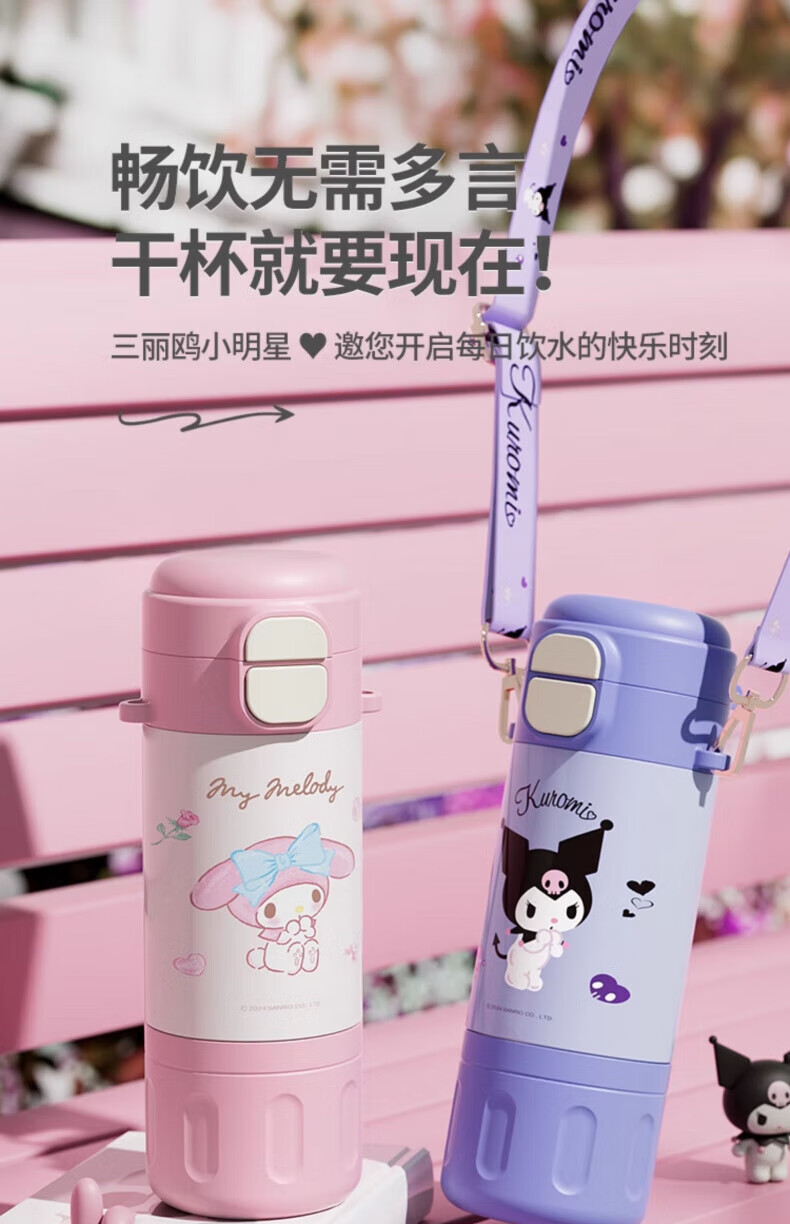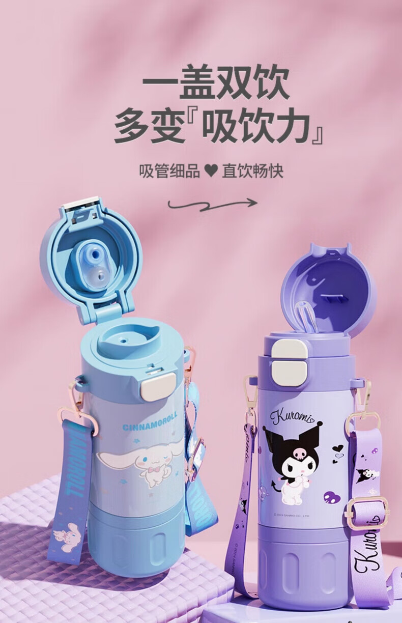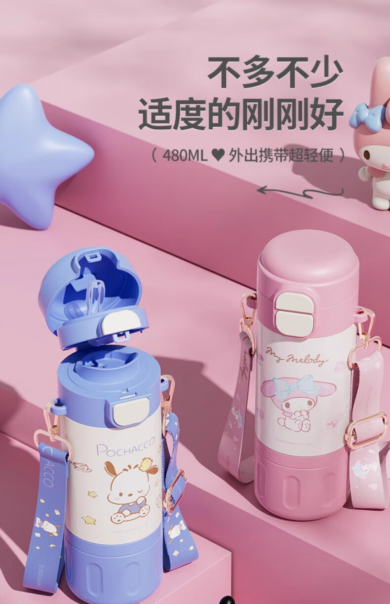 AILUKI日本儿童保温杯女孩高颜值小学生上学专用双饮吸管水杯 库洛米480ml【316不锈钢+免费刻