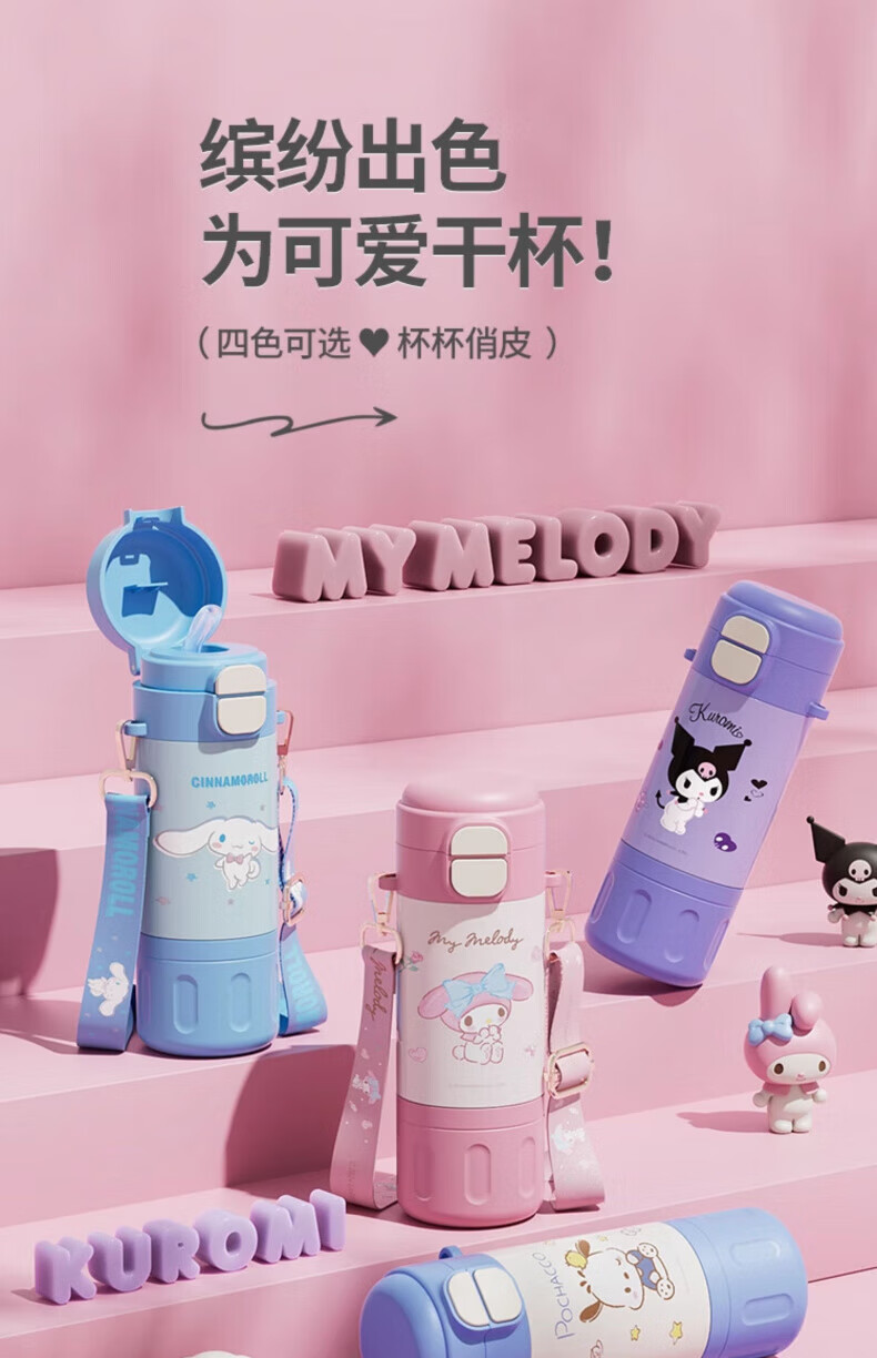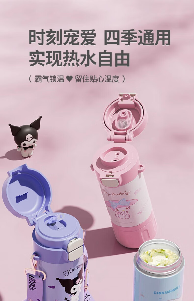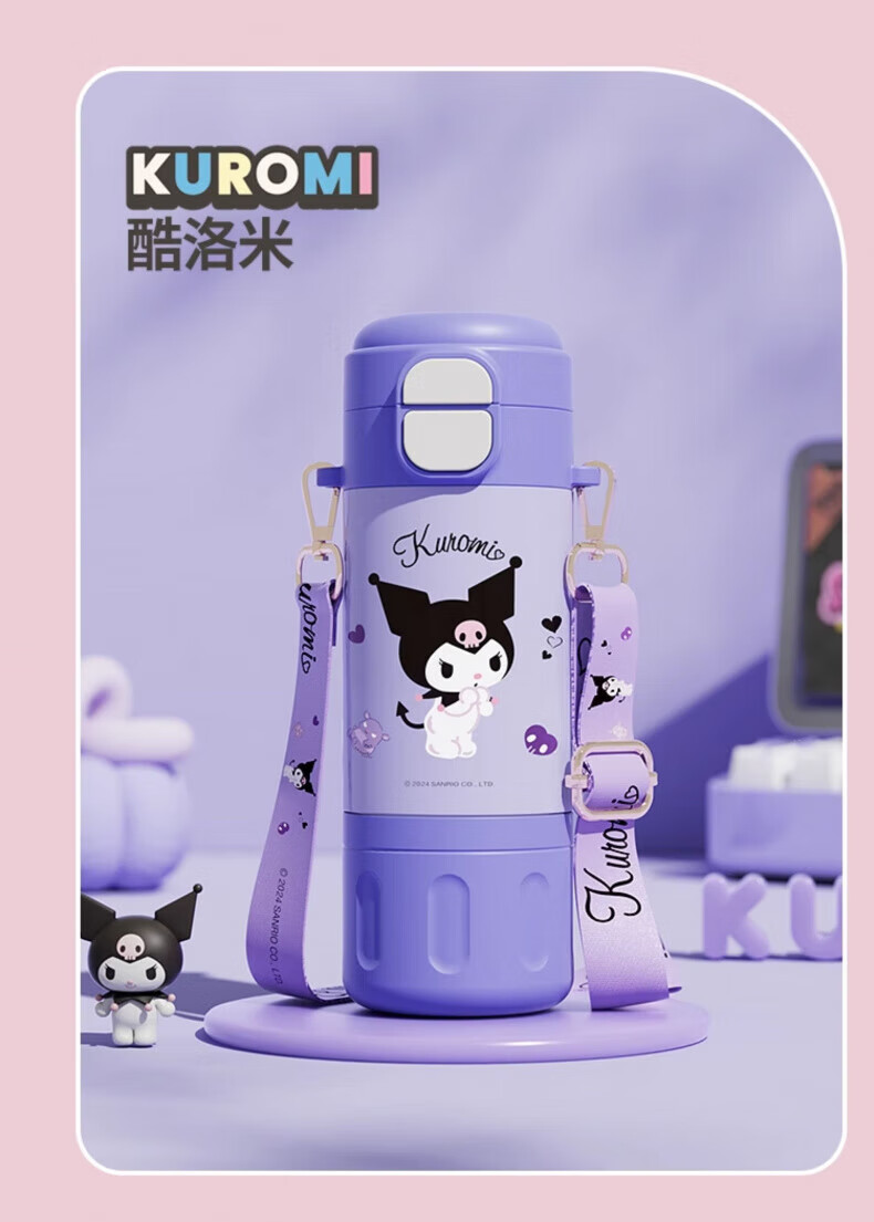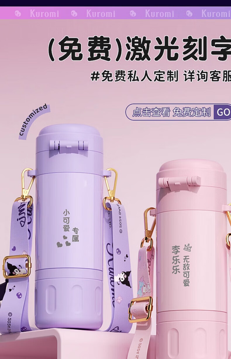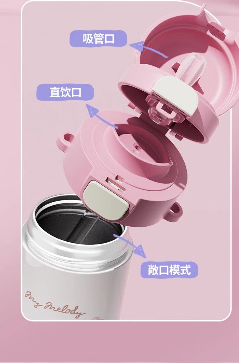 AILUKI日本儿童保温杯女孩高颜值小学生上学专用双饮吸管水杯 库洛米480ml【316不锈钢+免费刻