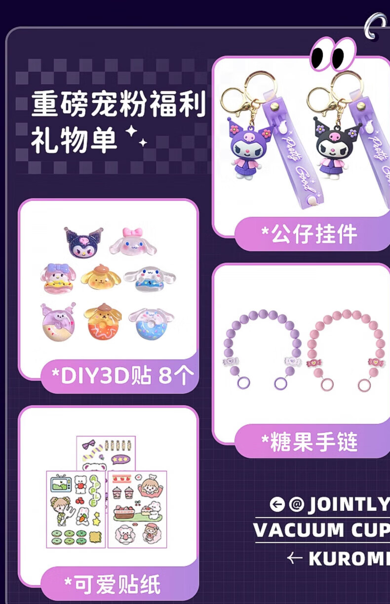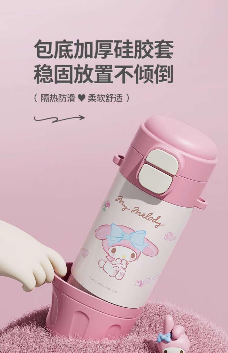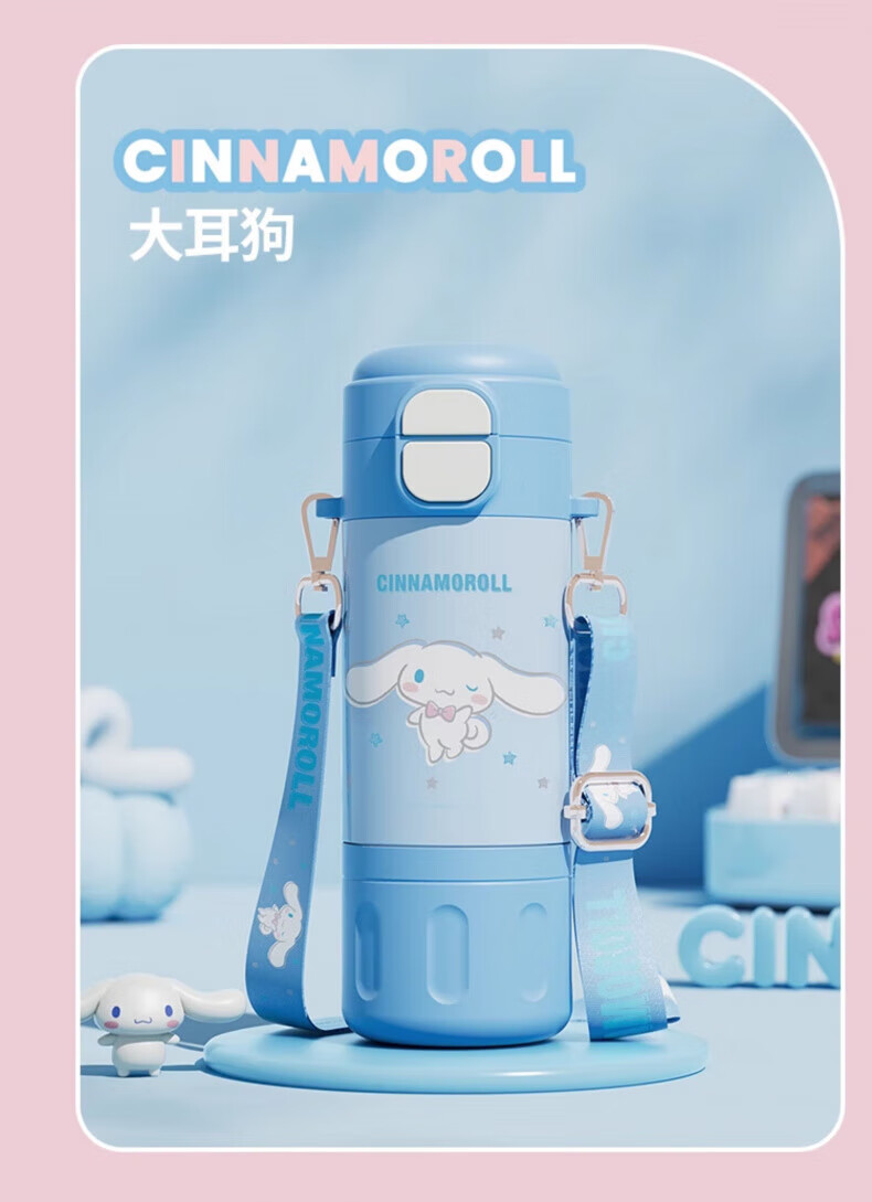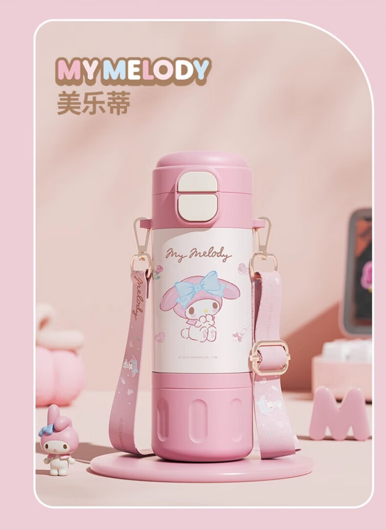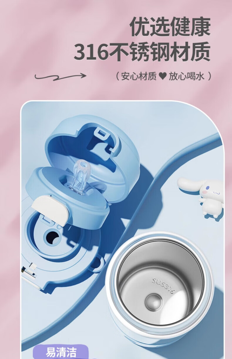 AILUKI日本儿童保温杯女孩高颜值小学生上学专用双饮吸管水杯 库洛米480ml【316不锈钢+免费刻