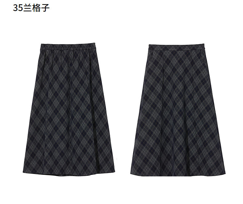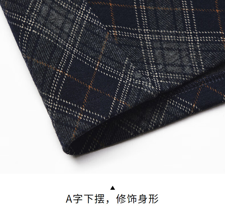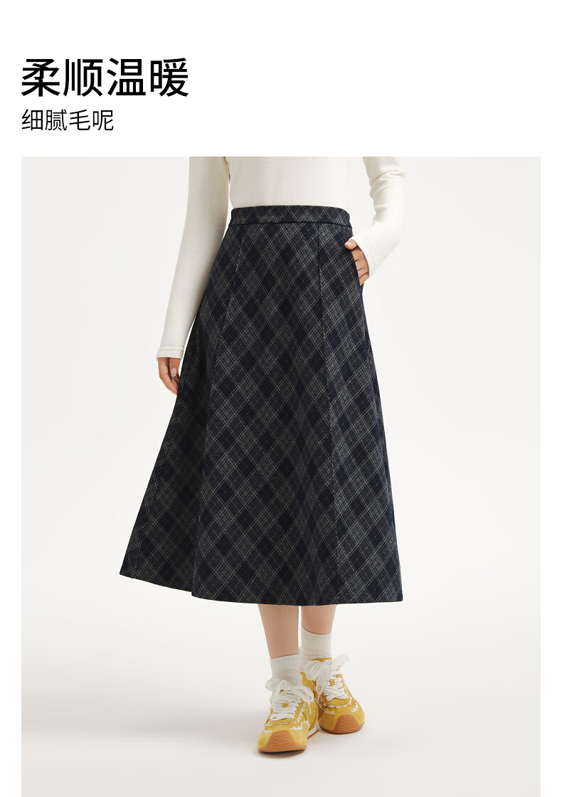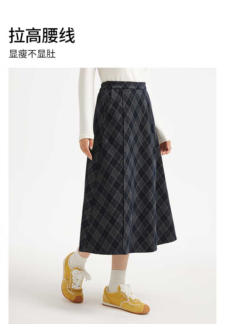 热风女士格纹半身裙2025年冬季新款松紧腰高腰文艺复古显瘦半裙 35兰格子 M