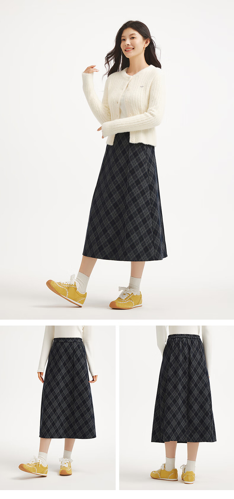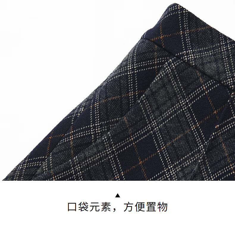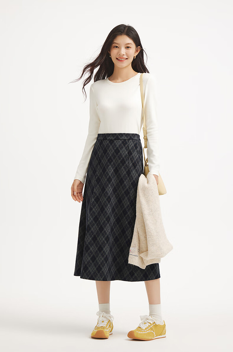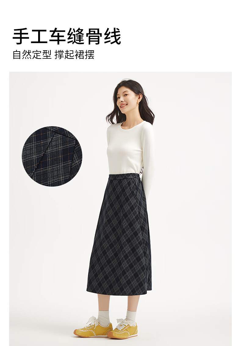 热风女士格纹半身裙2025年冬季新款松紧腰高腰文艺复古显瘦半裙 35兰格子 M