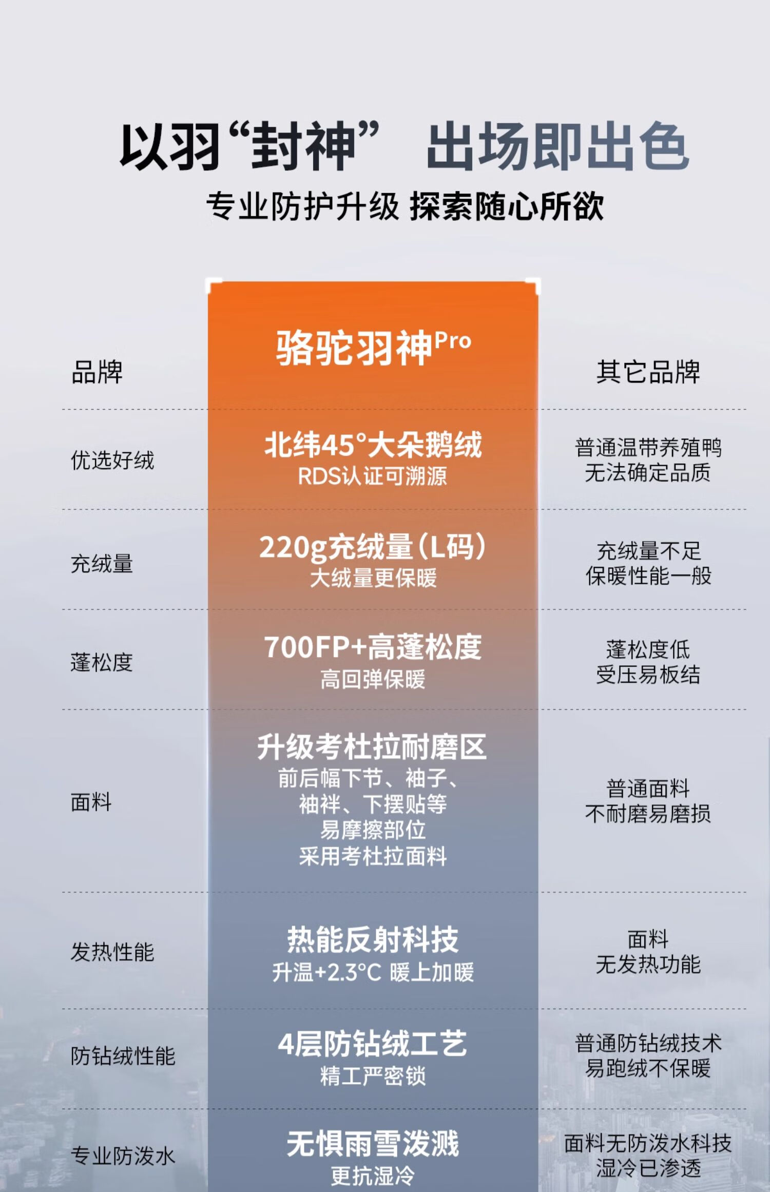 骆驼【迪丽热巴 明星同款】骆驼户外冬女男防风羽神PRO鹅绒面包羽绒服