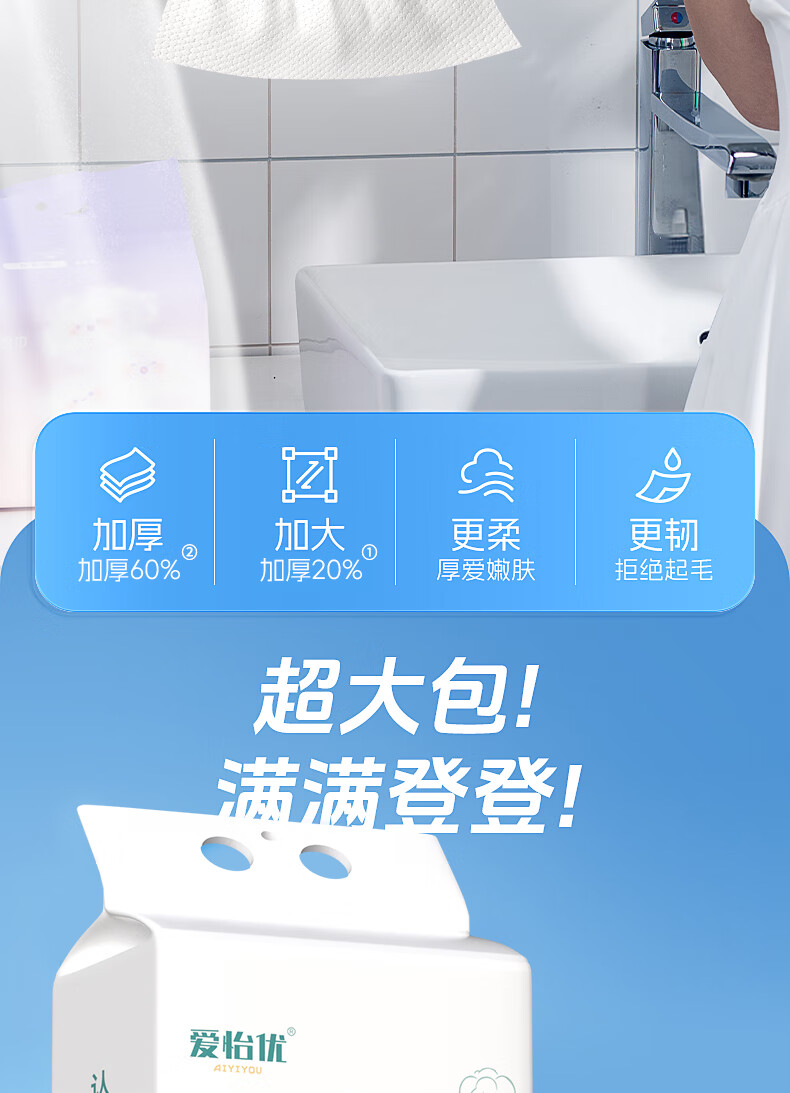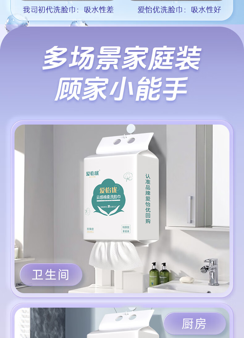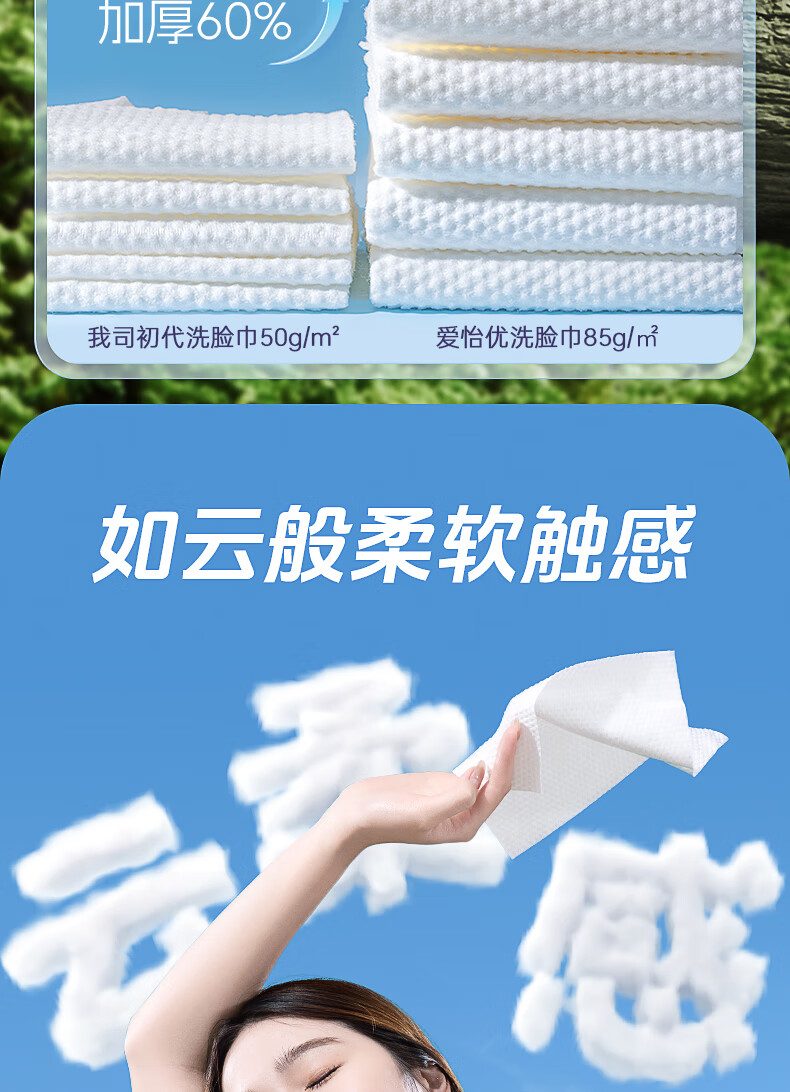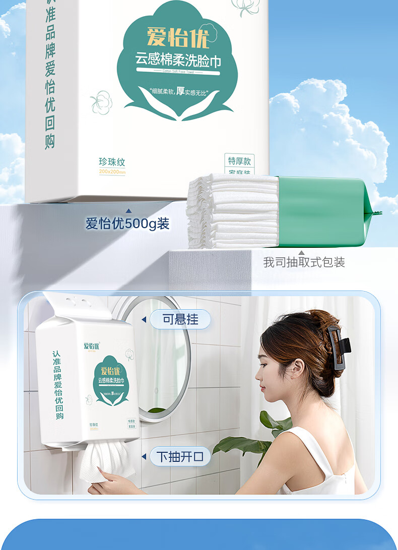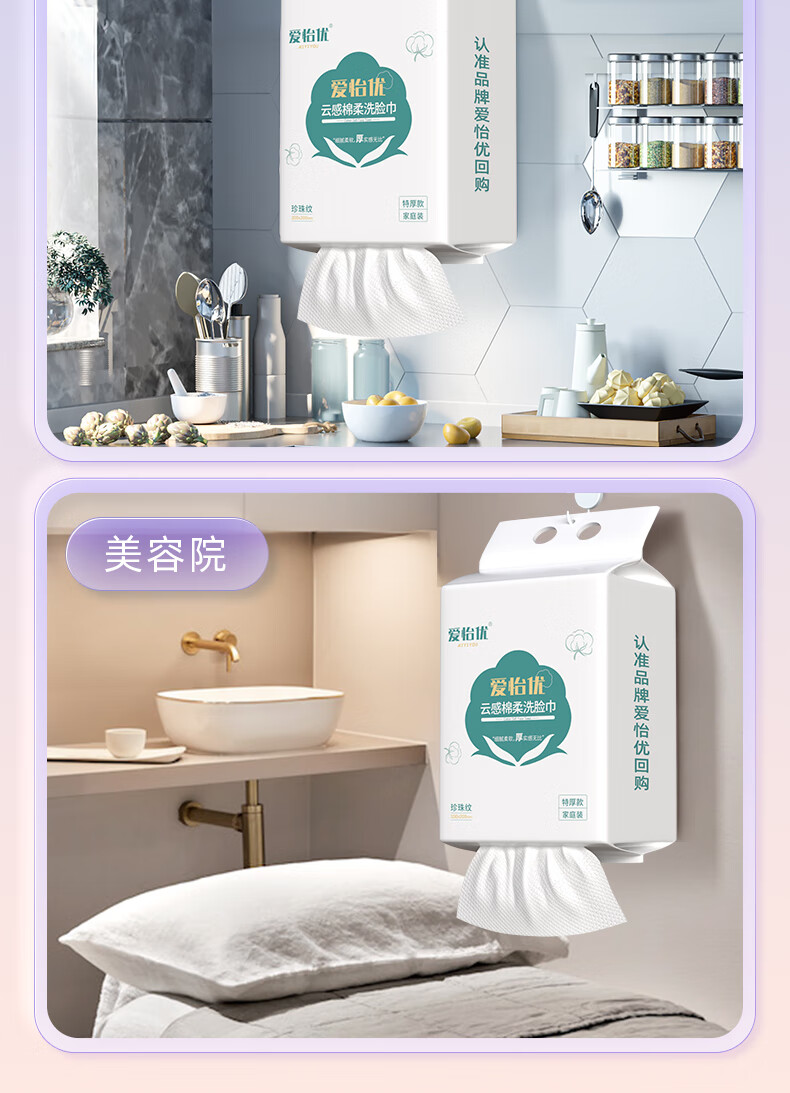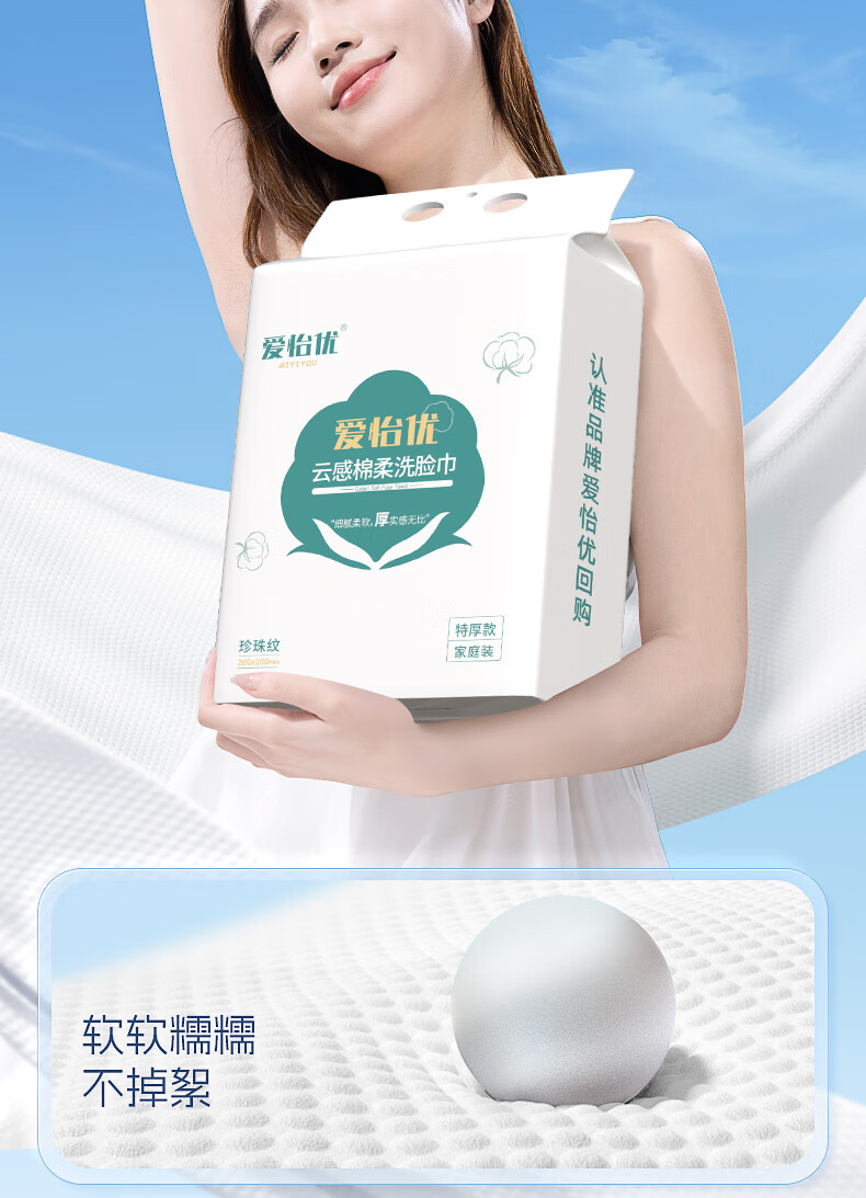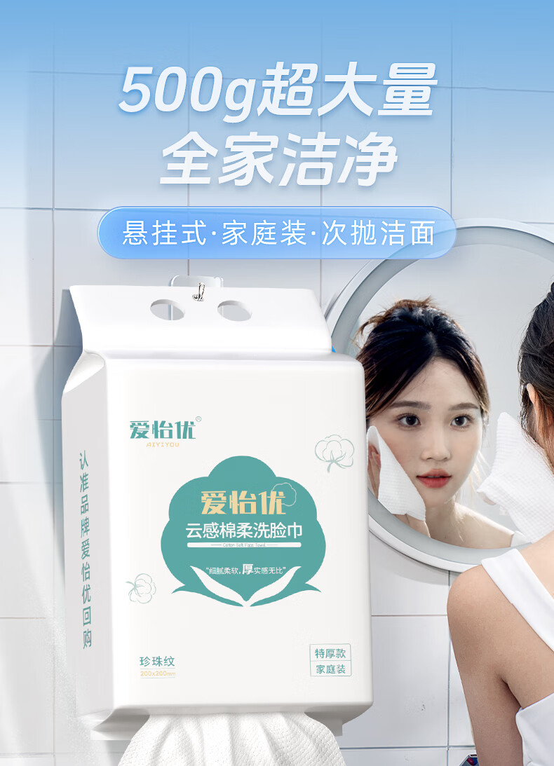 爱怡优 洗脸巾 150抽*2提一次性毛巾洁面擦脸巾加大加厚干湿两用绵柔巾