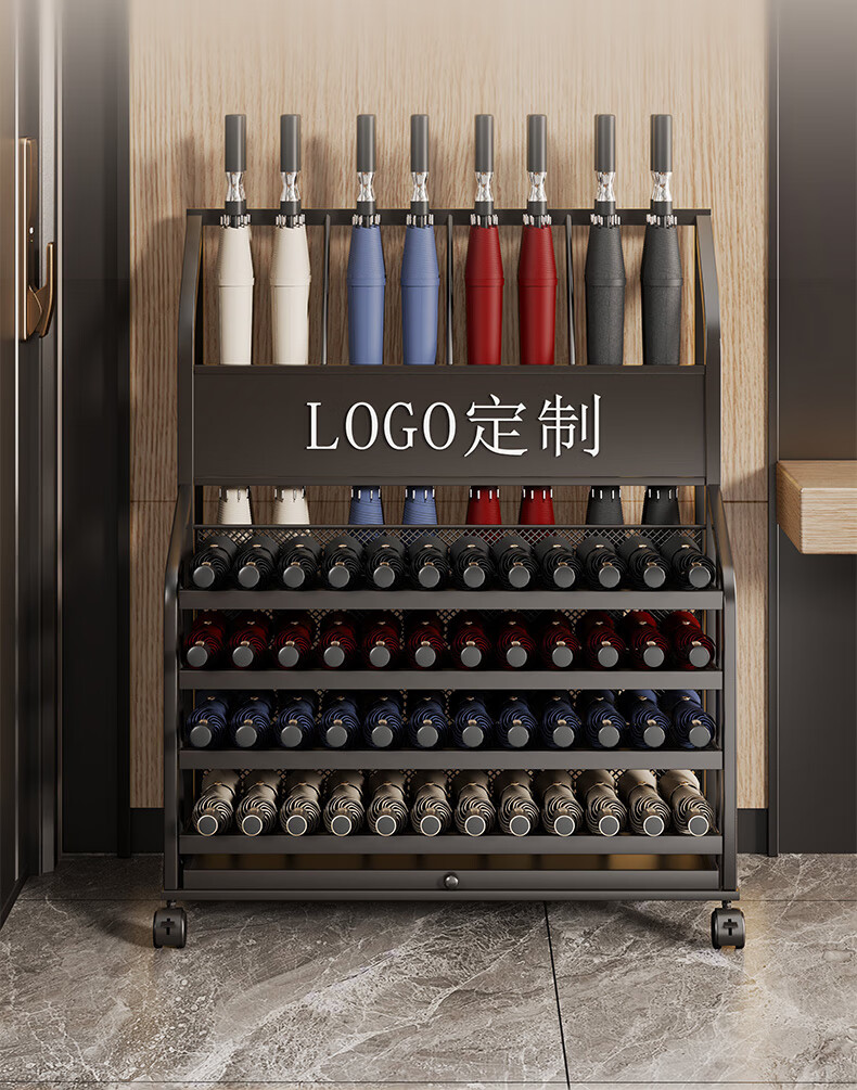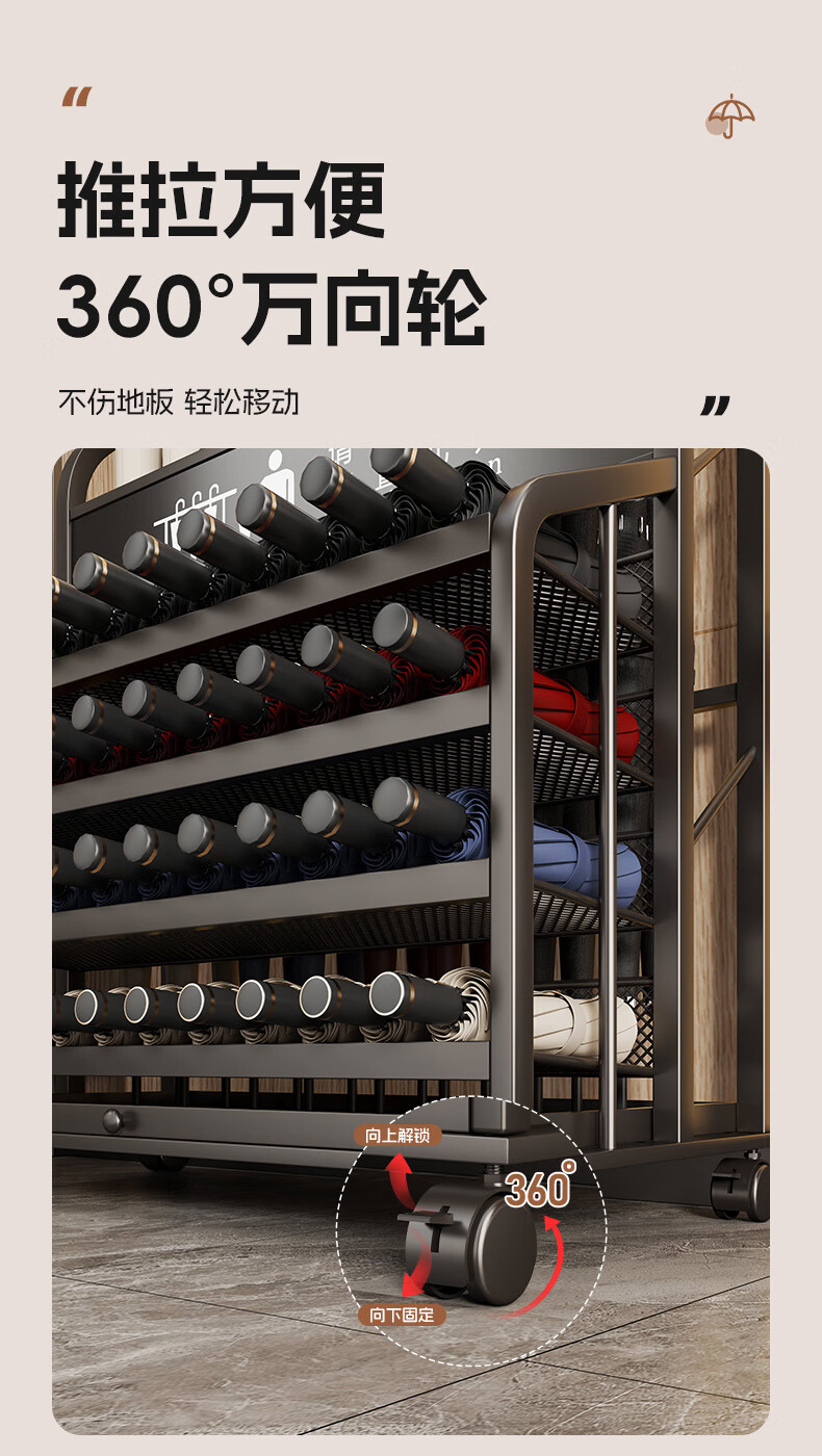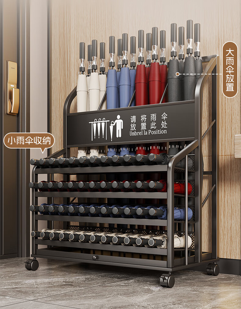 木格格雨伞架公司酒店大堂雨伞收纳架滑轮落地大容量商用门口多层置物架 黑色